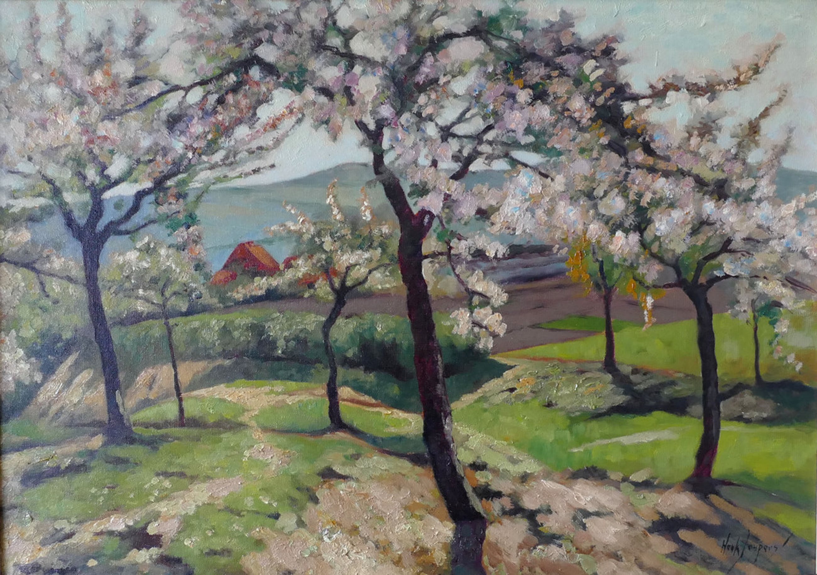 Subliem werk van Henk Jaspers die de lente in de Ooijpolder verbeeld heeft . De Ooijpolder (ook wel Ooypolder) ligt nabij Nijmegen in de gemeente Groesbeek. Het is een belangrijk deel van natuurgebied de Gelderse Poort.