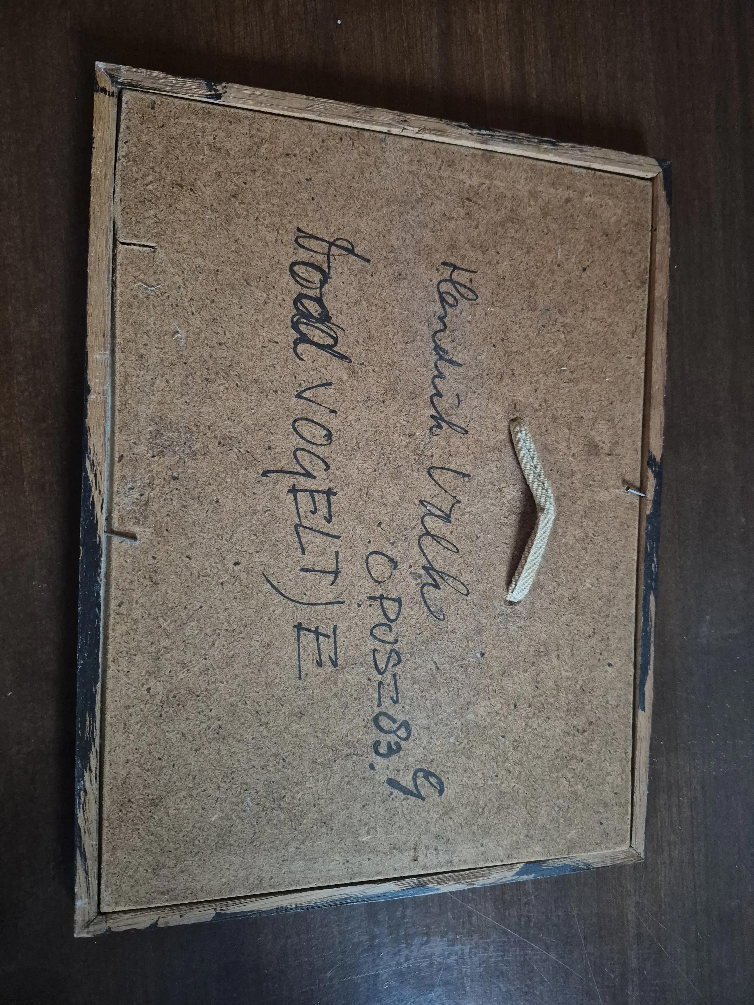Op glas geschilderd hand met dood vogeltje. Geen signeren op het werk wel een code opus z83G en handtekening achterop afdekplaat. Navraag gedaan bij stichting hendrik valk en is een origineel bekend op de lijst