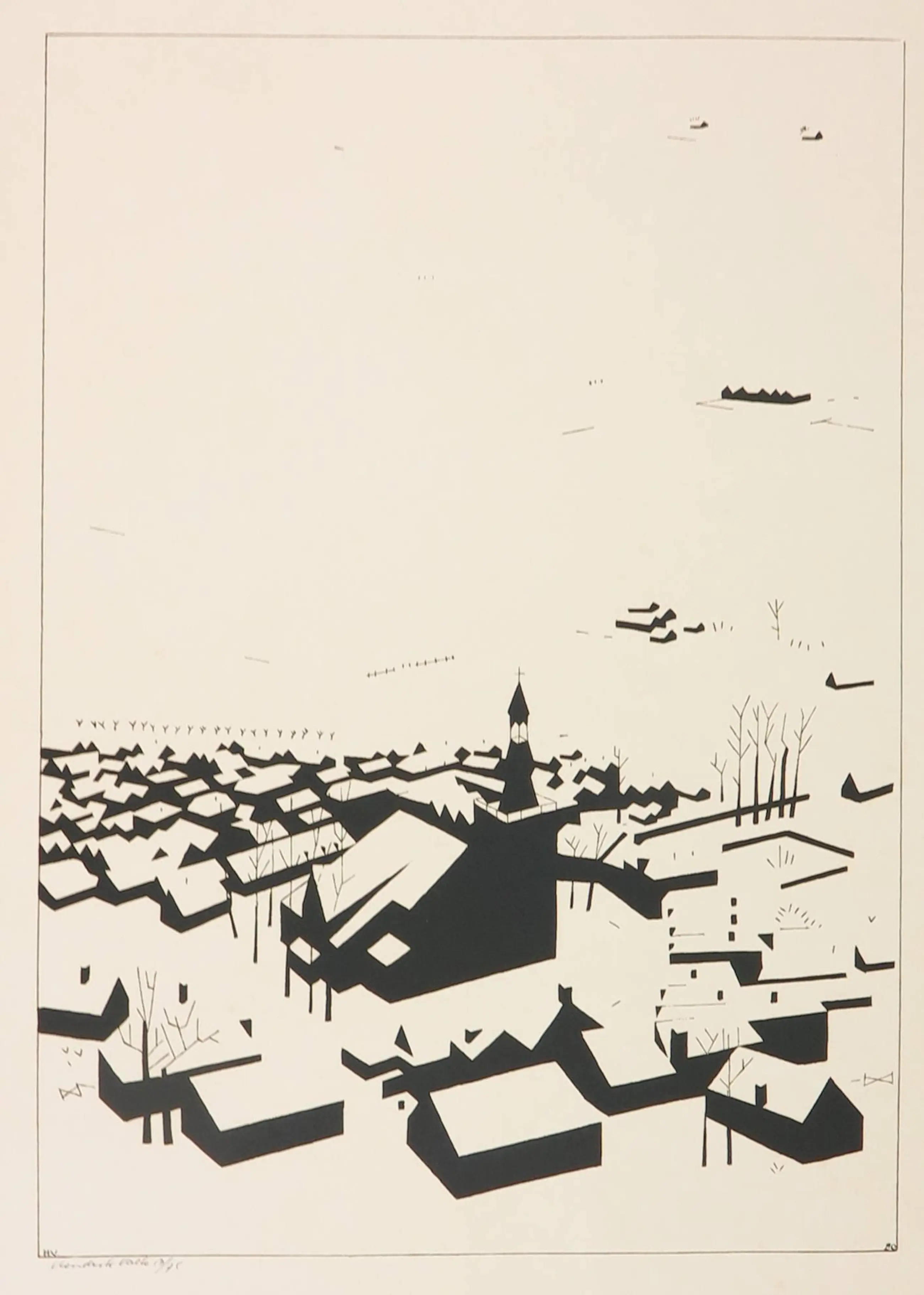 Hendrik Valk - Litho, Winters stadsgezicht - Verkocht