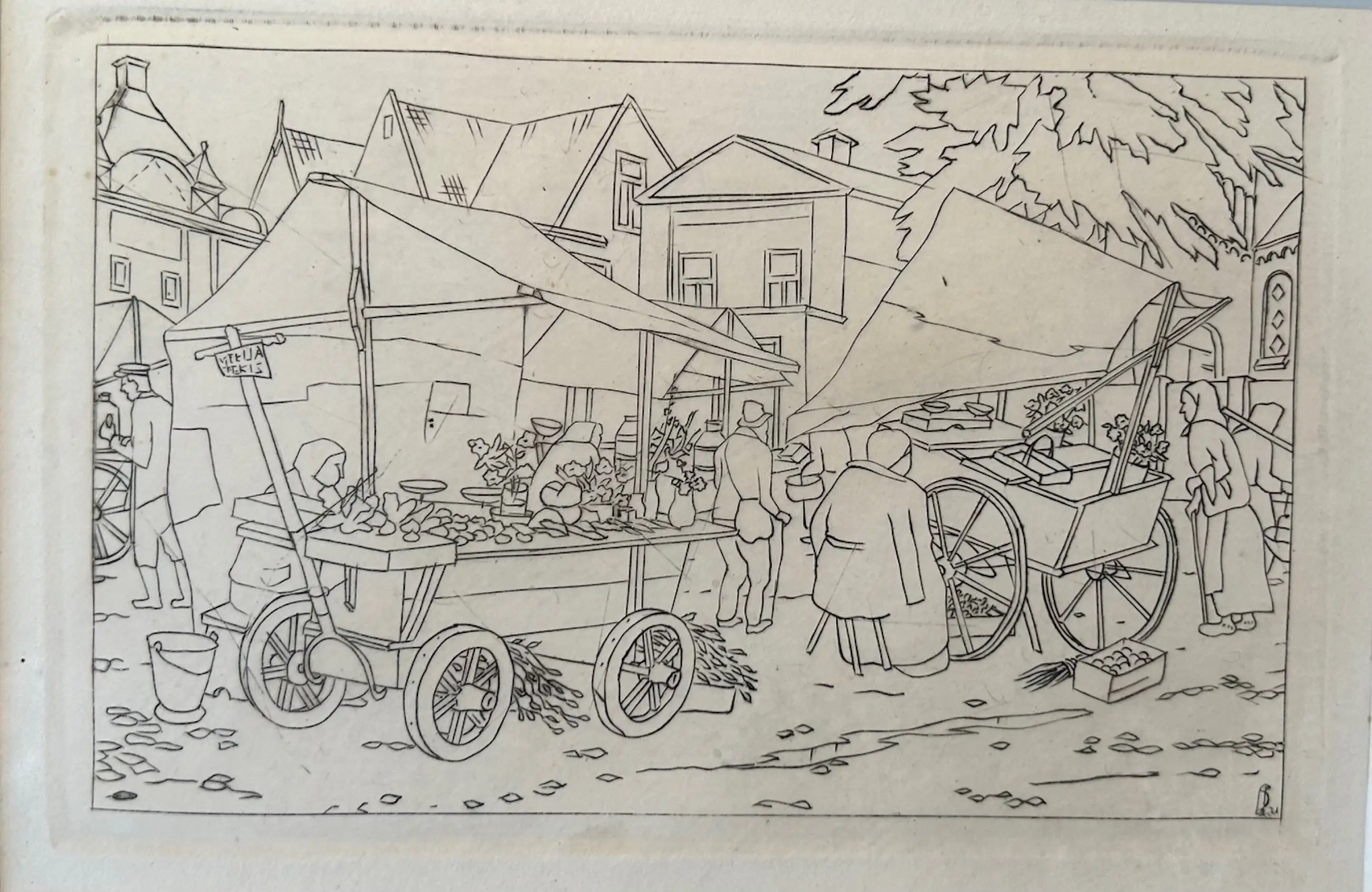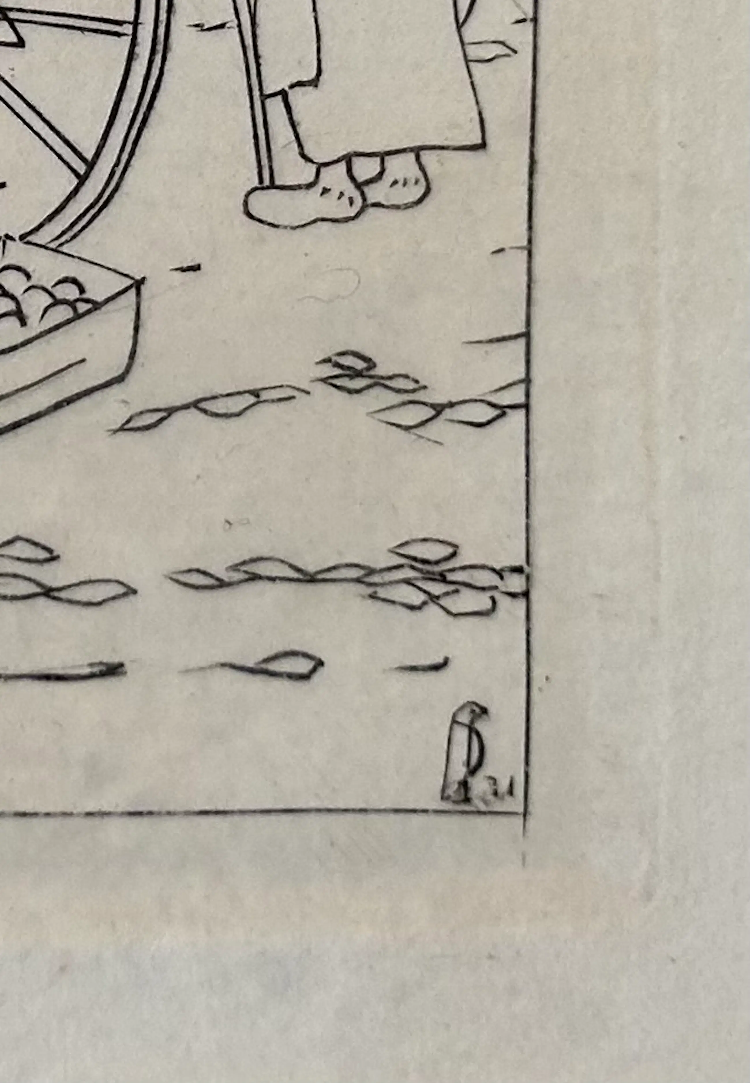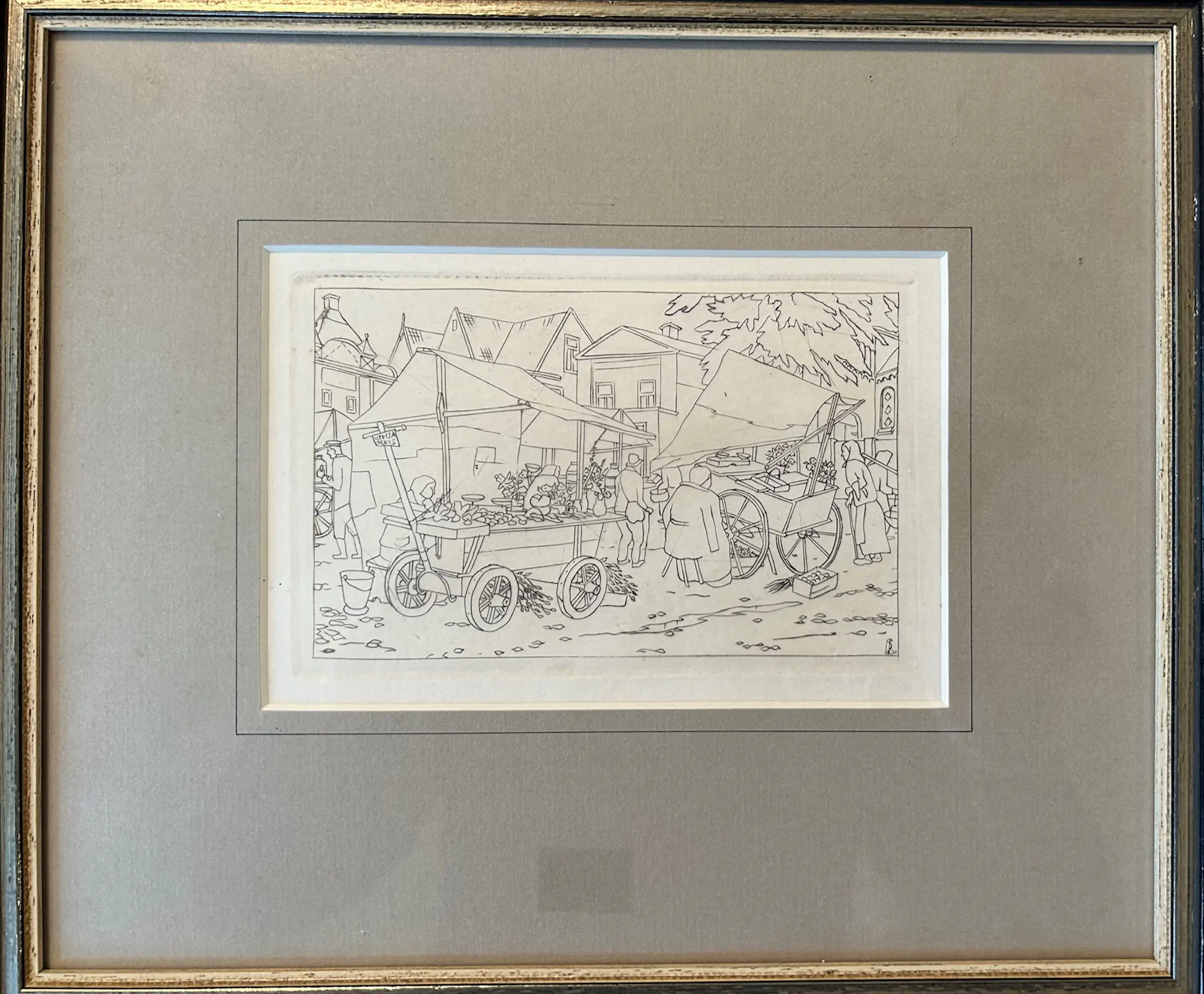 Gemonogrammmeerd in de plaat met een piepklein valkje rechtsonder. Op de achterzijde in een toelichting gedateerd op 1931 - wat strookt met de datering van een vergelijkbare gravure, die ik ook aanbied