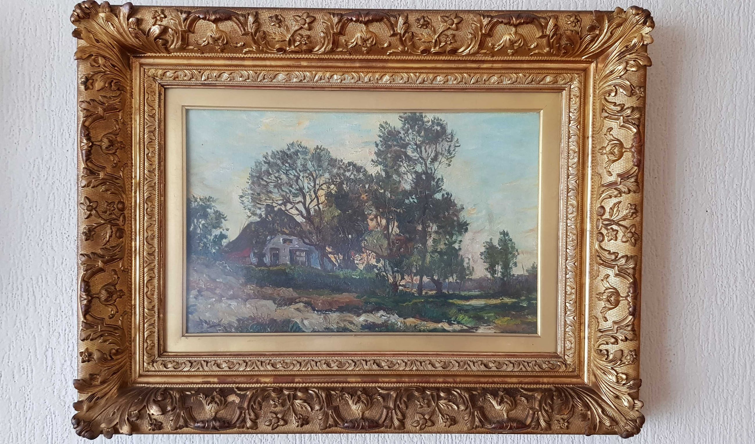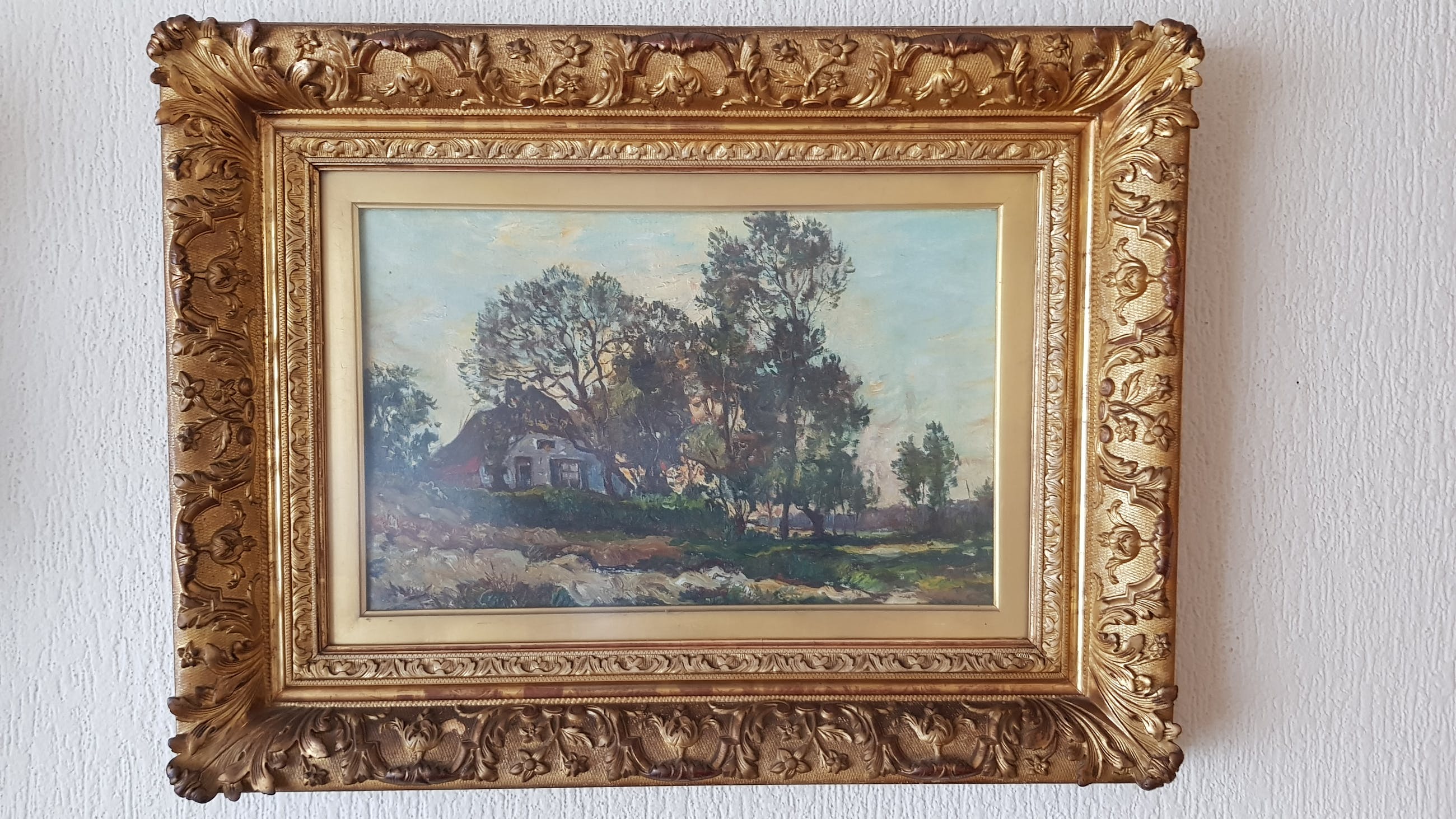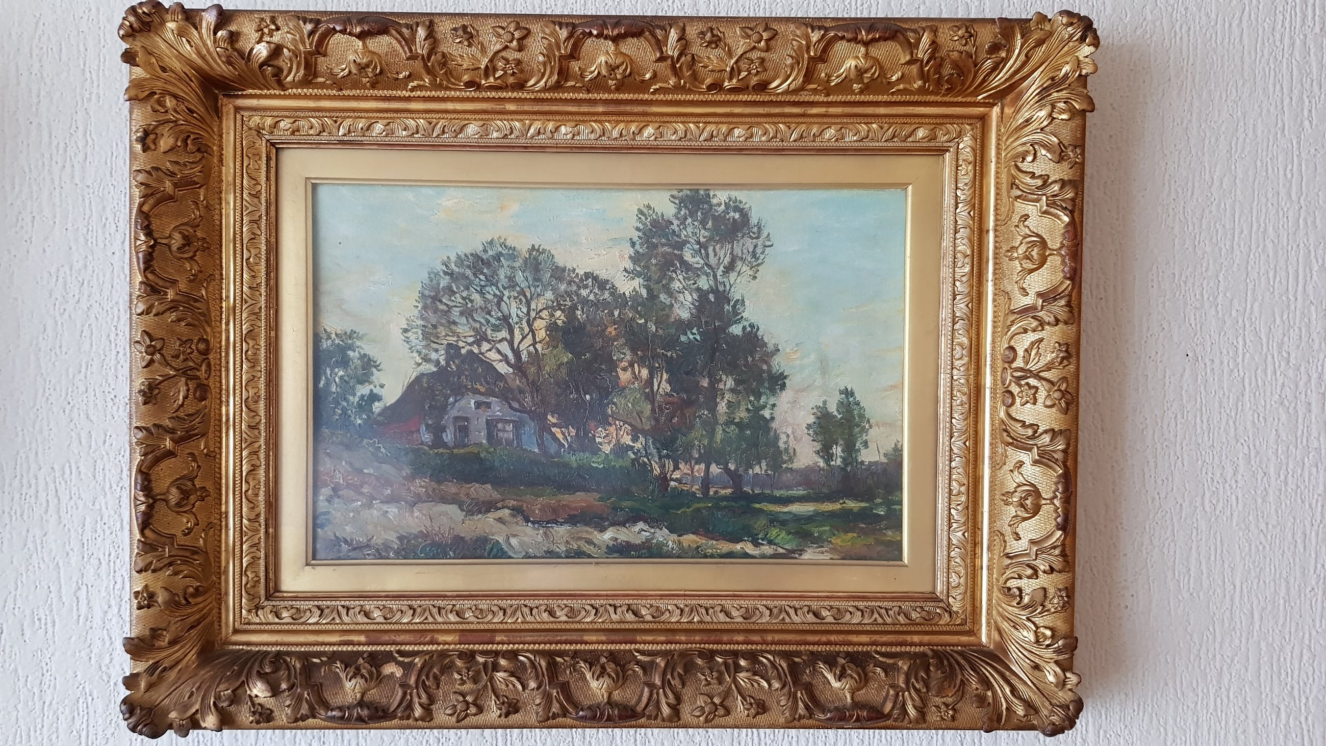 Mooi schilderij wat al ruim 50 jaar achter ontspiegeld glas hangt, nooit in direct zonlicht.