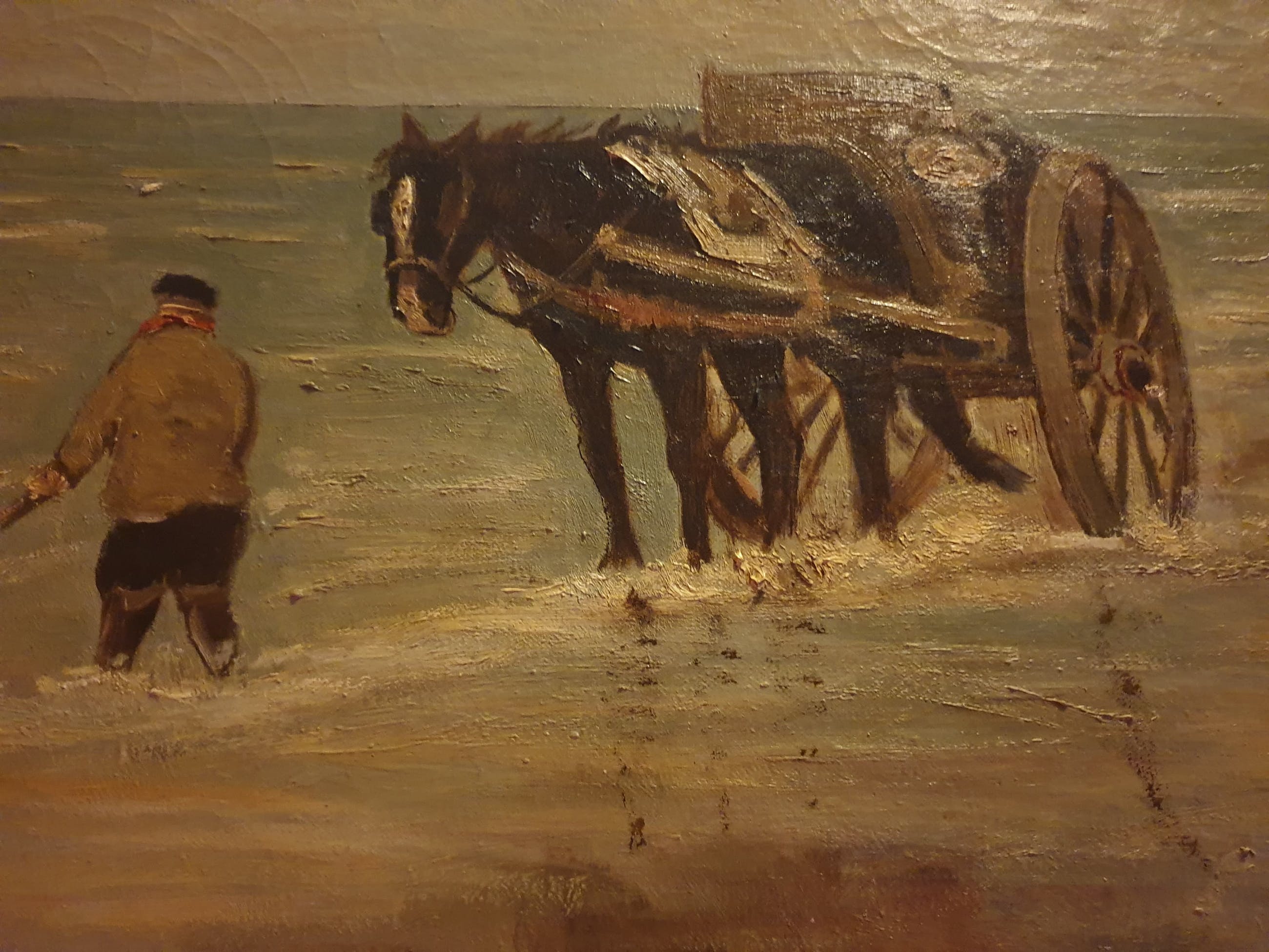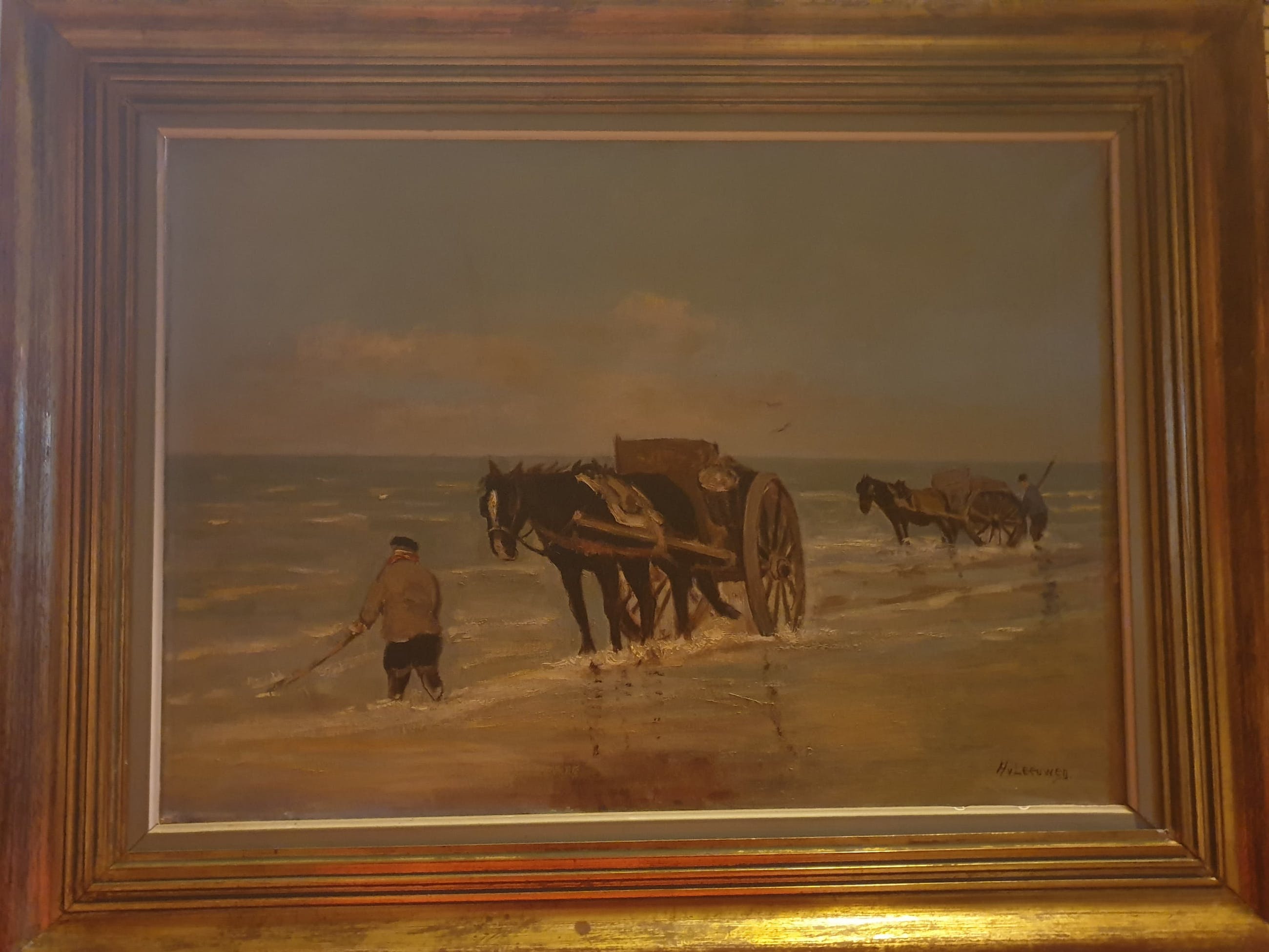 Kunstenaar: Henk van Leeuwen (1890 - 1972)Titel van het kunstwerk: Schelpen vissen met wagen! Jaar: 1950? Techniek: olieverf op doek Handtekening: getekend Voorwaarde: in goede staat Gewicht: 7 kg Afbeeldingsgrootte: 50 × 70 cm Totale afmetingen: 68 × 88 × 8 cm Henk van Leeuwen won hij de publieksprijs van de Haagsche Salon in 1959,Is lid geweest van de "Haagsche Kunstkring"en van "Pulchri Studio" in Den Haag voor vele jaren!Dit is een mooie grote foto van vissen aan de kust!Het schilderij is in goede staat maar de tekenen van veroudering zijn er al zichtbaar op!Zie de foto!Gemerkt rechtsonder, mooi groot antiek houten frame!Levering met trackingcode in professionele verpakking!