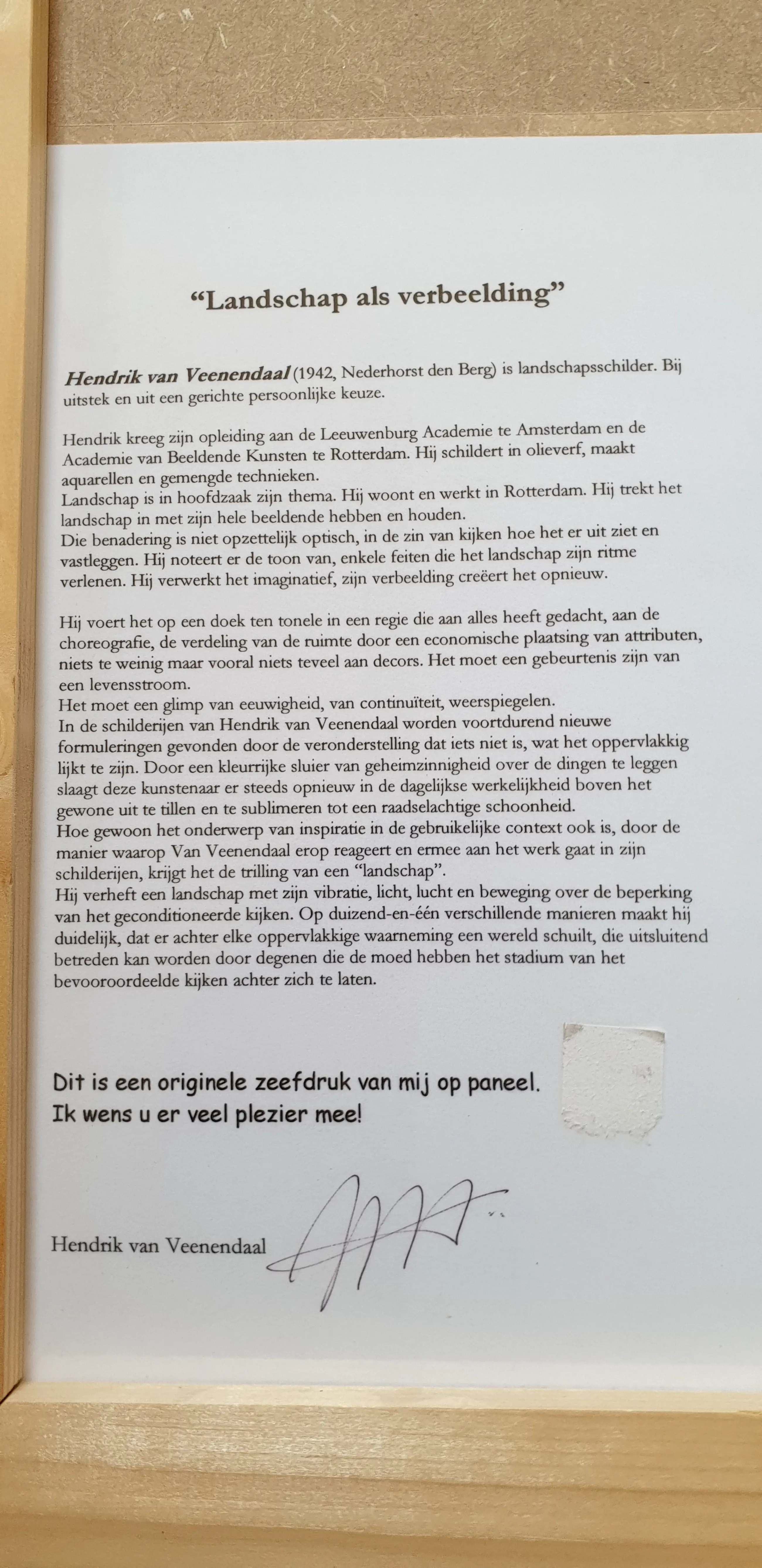 Het werk is af te halen op locatie. Als koper dient u zelf verpakkingsmateriaal mee te nemen. De locatie is: Breda, Nederland