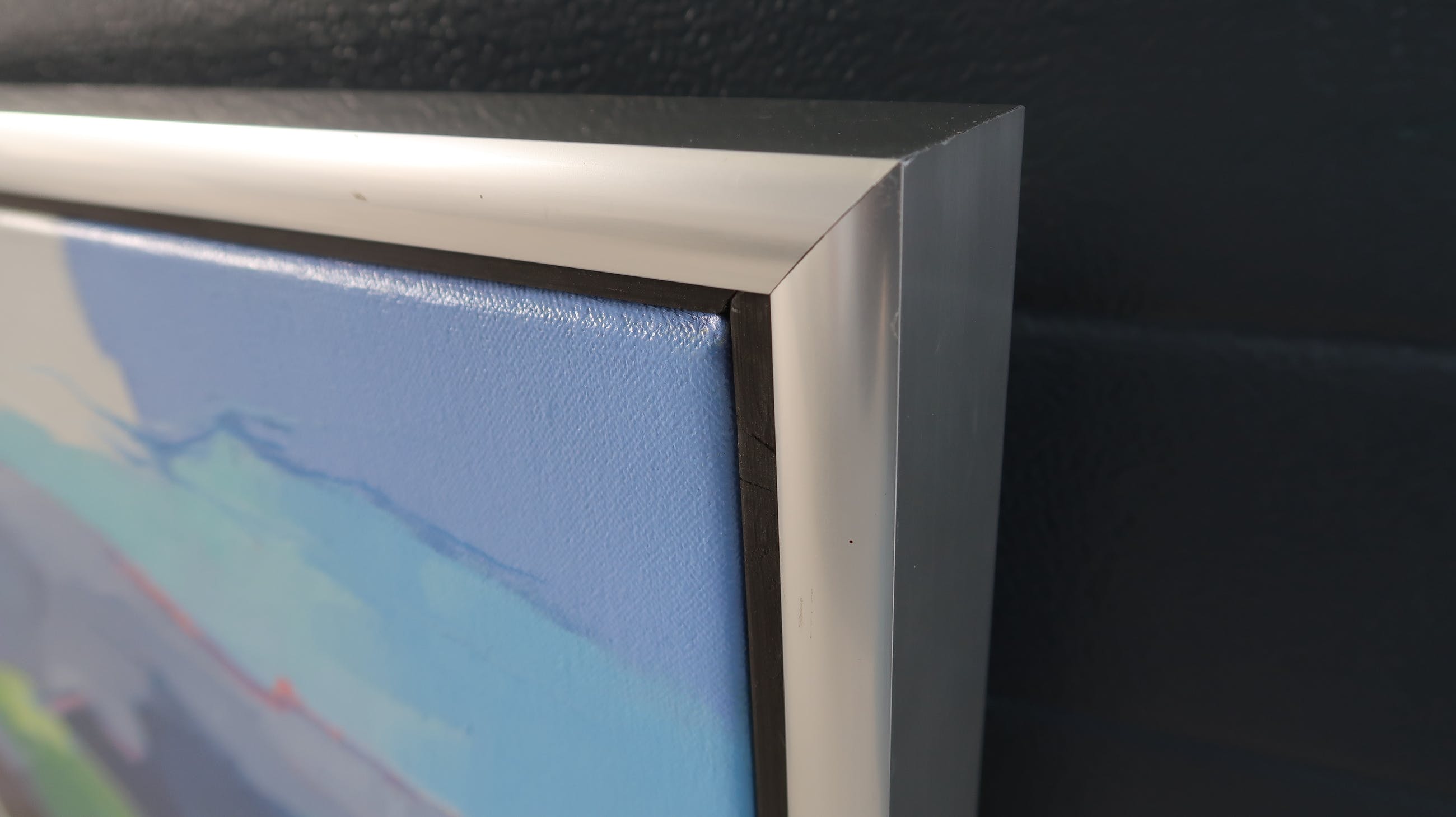 Lijst: zilverkleurige satijnglans 12 mm met zwart houten randje.
