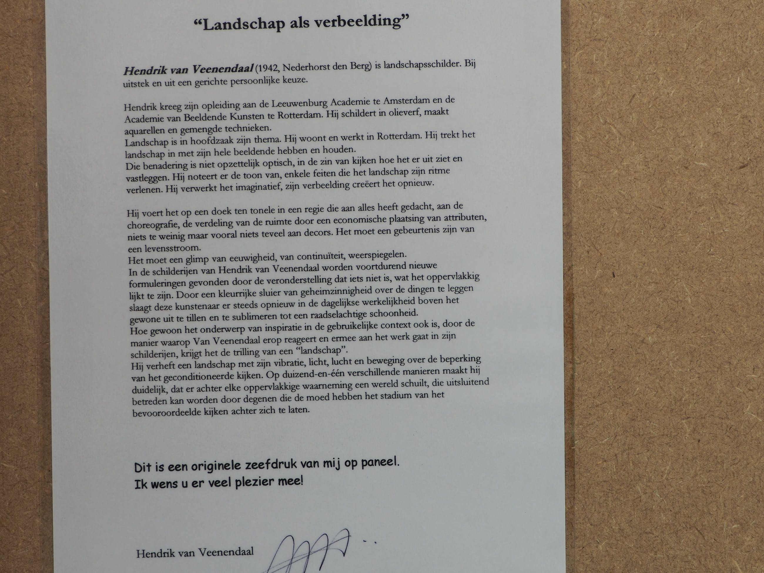 Zeefdruk op paneel. Met cv van de kunstenaar op achterzijde.