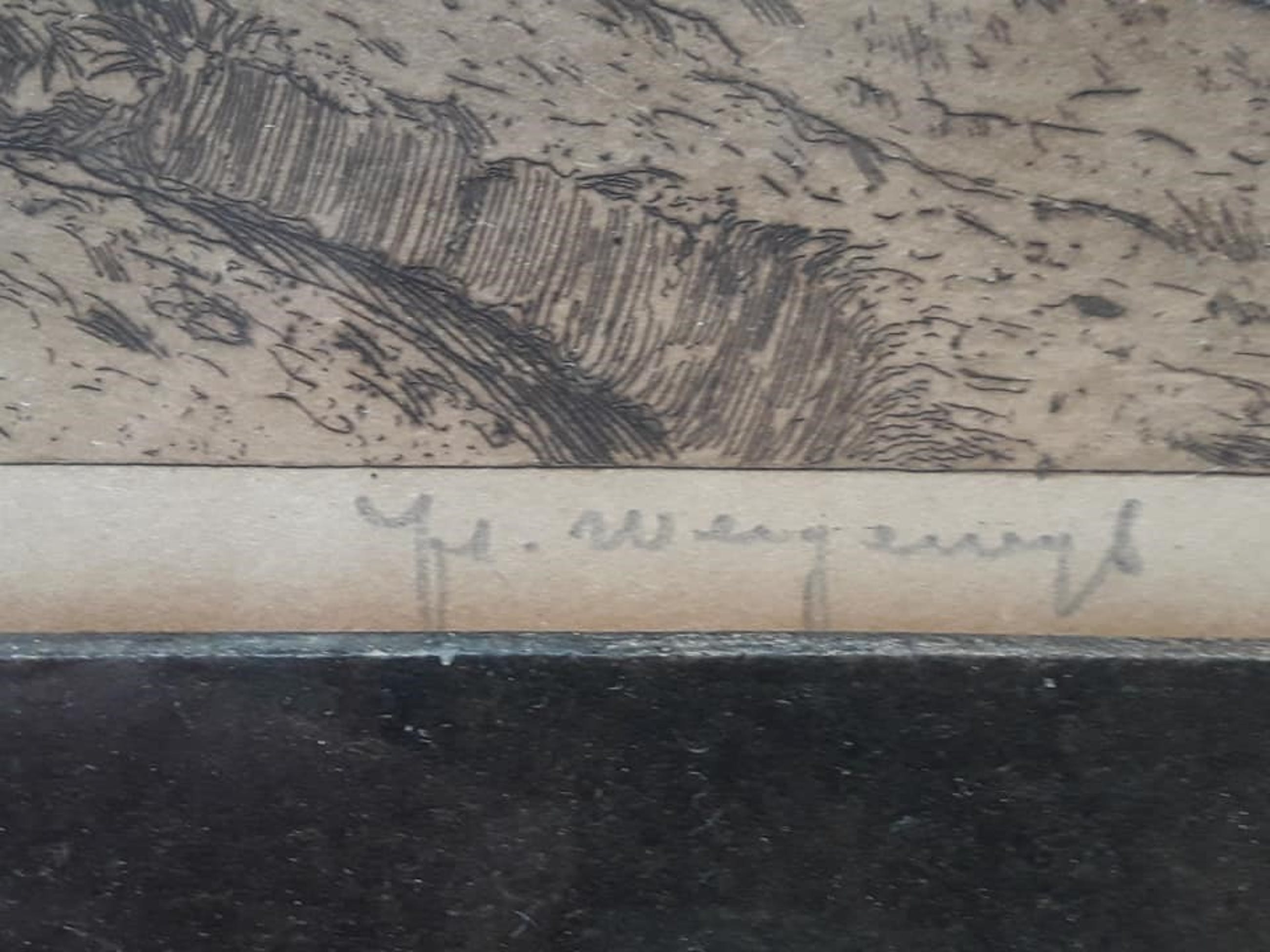 Een kenmerkende ets van de kunstenaar Hendrik Weegewijs (1875-1964) uit ca 1925.