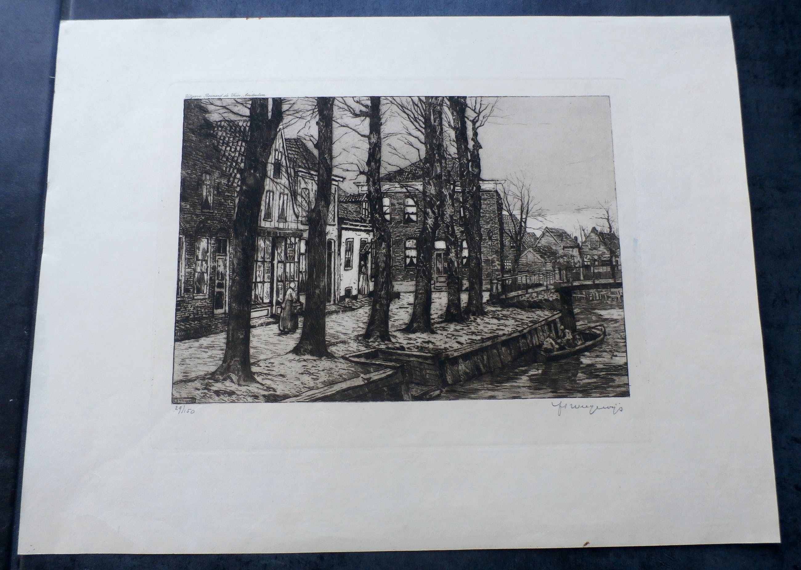 De voorstelling is in goede staat. het blad is wel vergeeld. Wat lichte kreukels langs de randen. Goed ingelijst, valt dit in de lijst/onder de passepartout. | |||||||||||