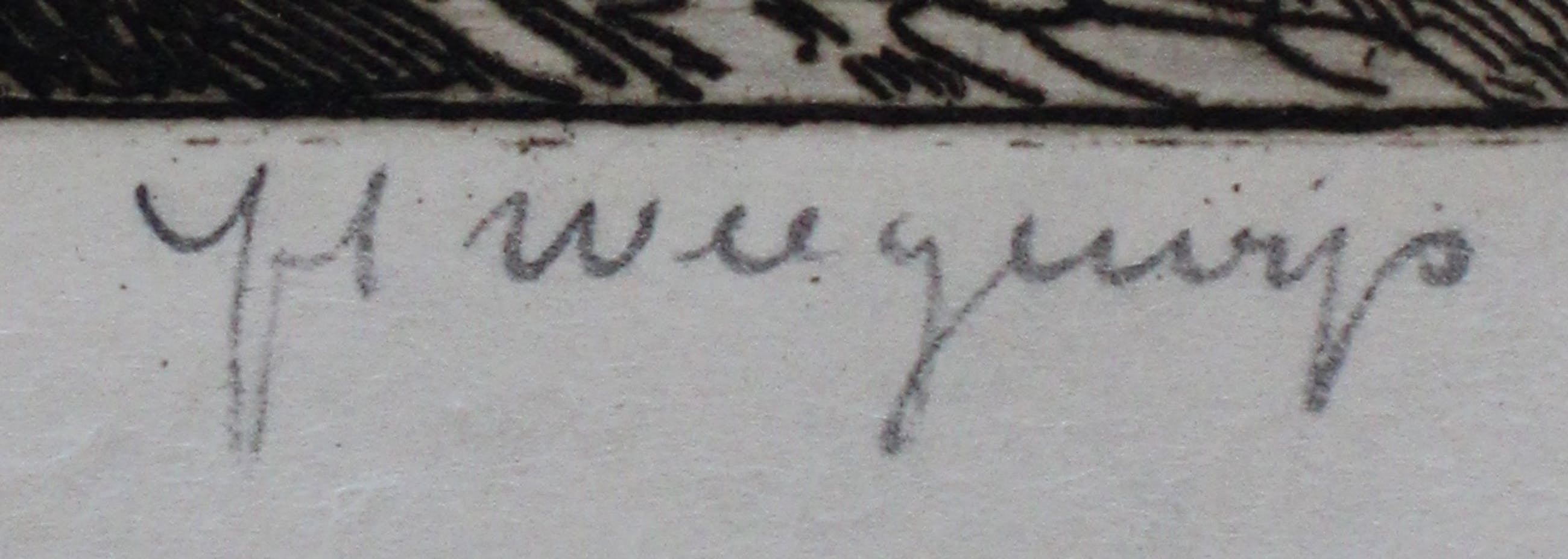 Ets van Hendrik Weegewijs. Afmetingen blad: H16 x b24,5 cm. Afmetingen voorstelling: H7 x b11.5 cm. Uitgave: Bernard de Vries, Amsterdam. Het werk is rechtsonder, met potlood, gesigneerd door de kunstenaar en linksonder in de druk en rechtsonder met potlood. De authenticiteit van het, aangeboden, werk wordt volledig gegarandeerd. Een certificaat van echtheid kan, op aanvraag, worden gemaild.