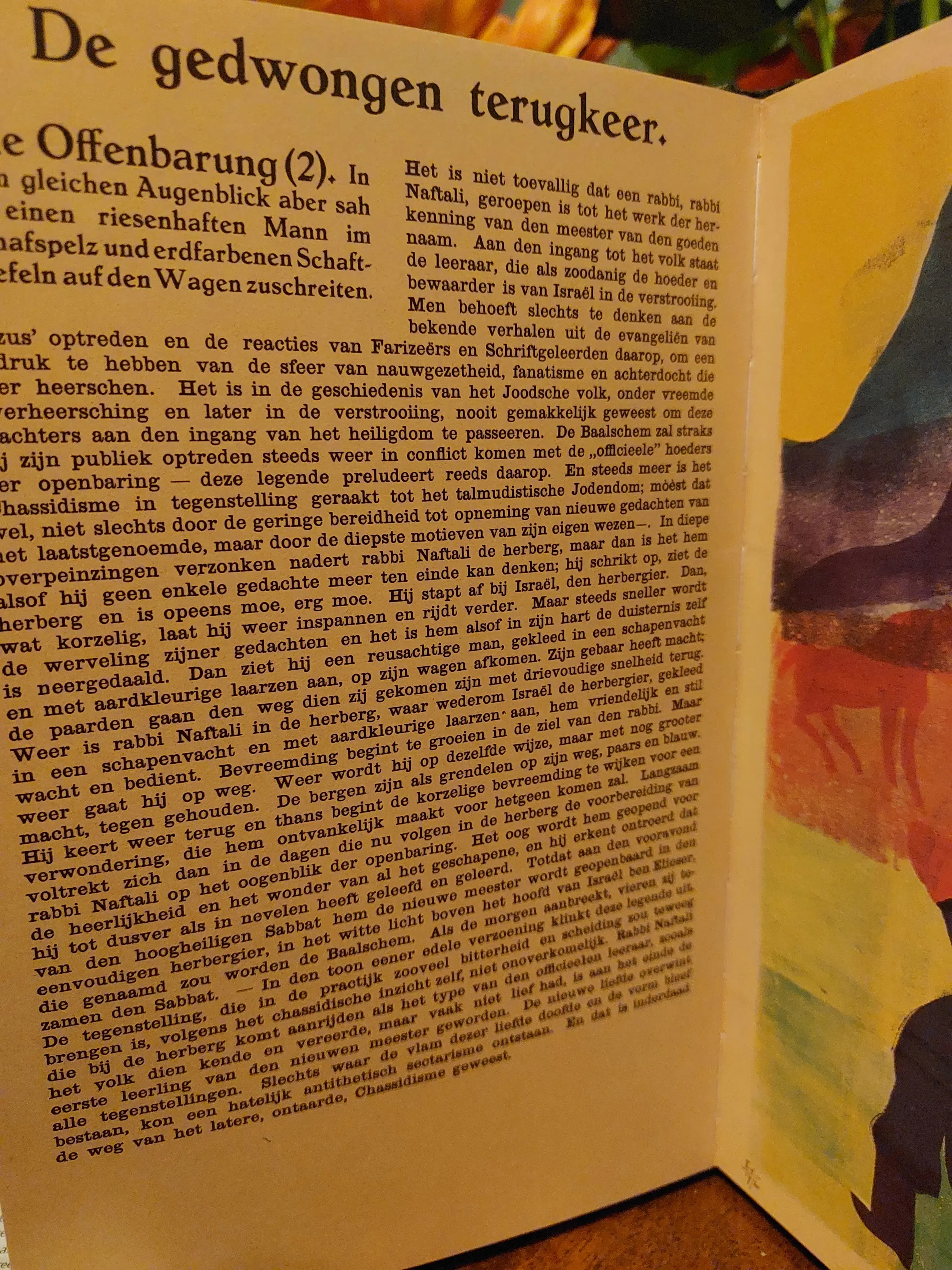 Begin 1941 las H.N. Werkman Die Legende des Baalschem van Martin Buber, een verzameling verhalen over de achttiende-eeuwse Poolse Joodse leraar Yisroel ben Eliezer, bijgenaamd de Baal Shem Tov. Werkman was diep onder de indruk. In korte tijd maakte hij met sjablonen, drukinkt en ander materiaal uit zijn drukkerij twintig composities geïnspireerd door deze wonderlijke verhalen. Zo overwon hij de artistieke blokkade die hij sinds het begin van de Duitse bezetting had gevoeld.