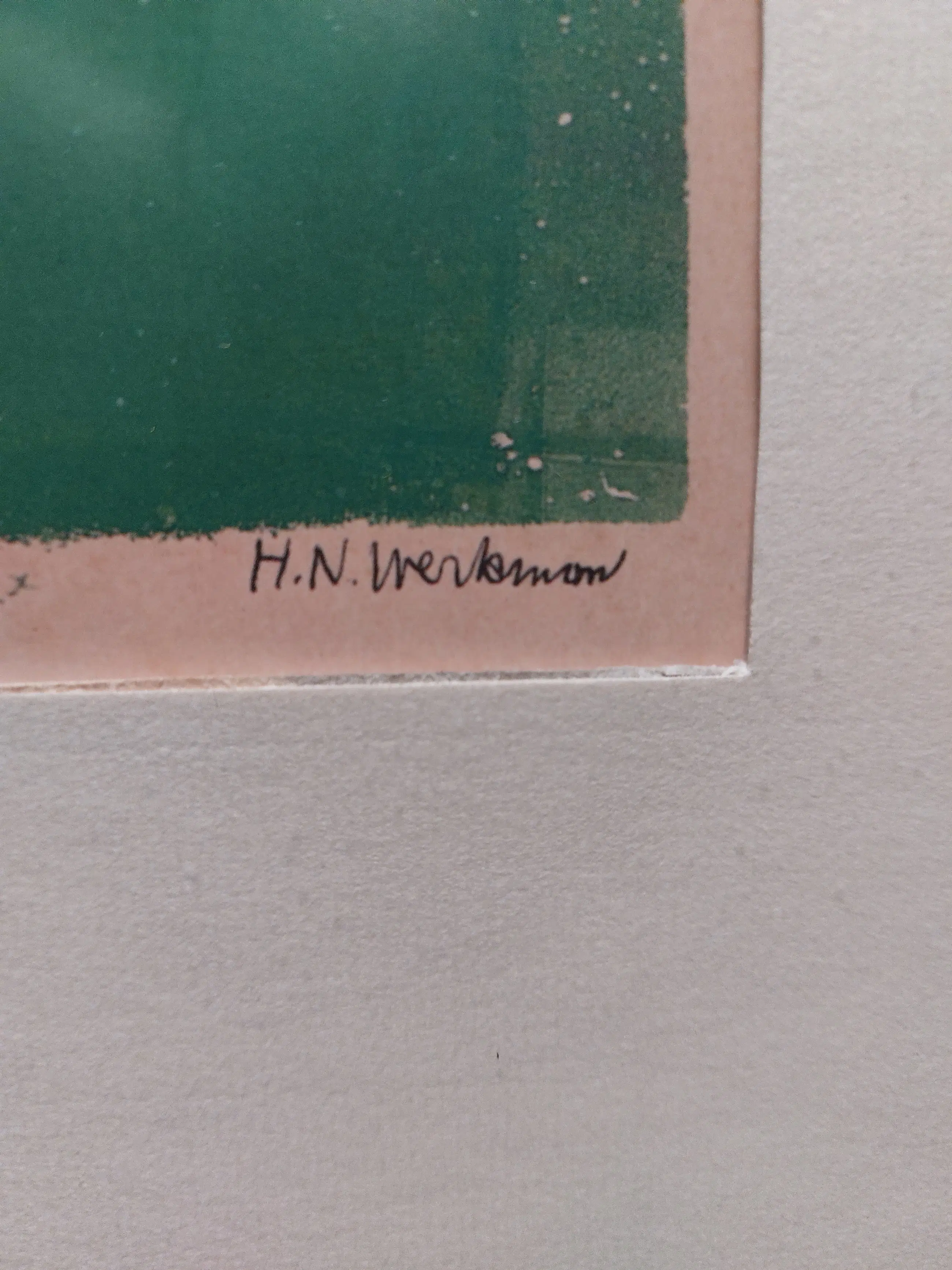 Dit is een prent van de litho met de titel "Gedwongen terugkeer " is rechtsonder gesigneerd "H.N. Werkman" en linksonder genummerd "I4 5/20". De afmeting van het werk zelf is 50 x 30 cm.