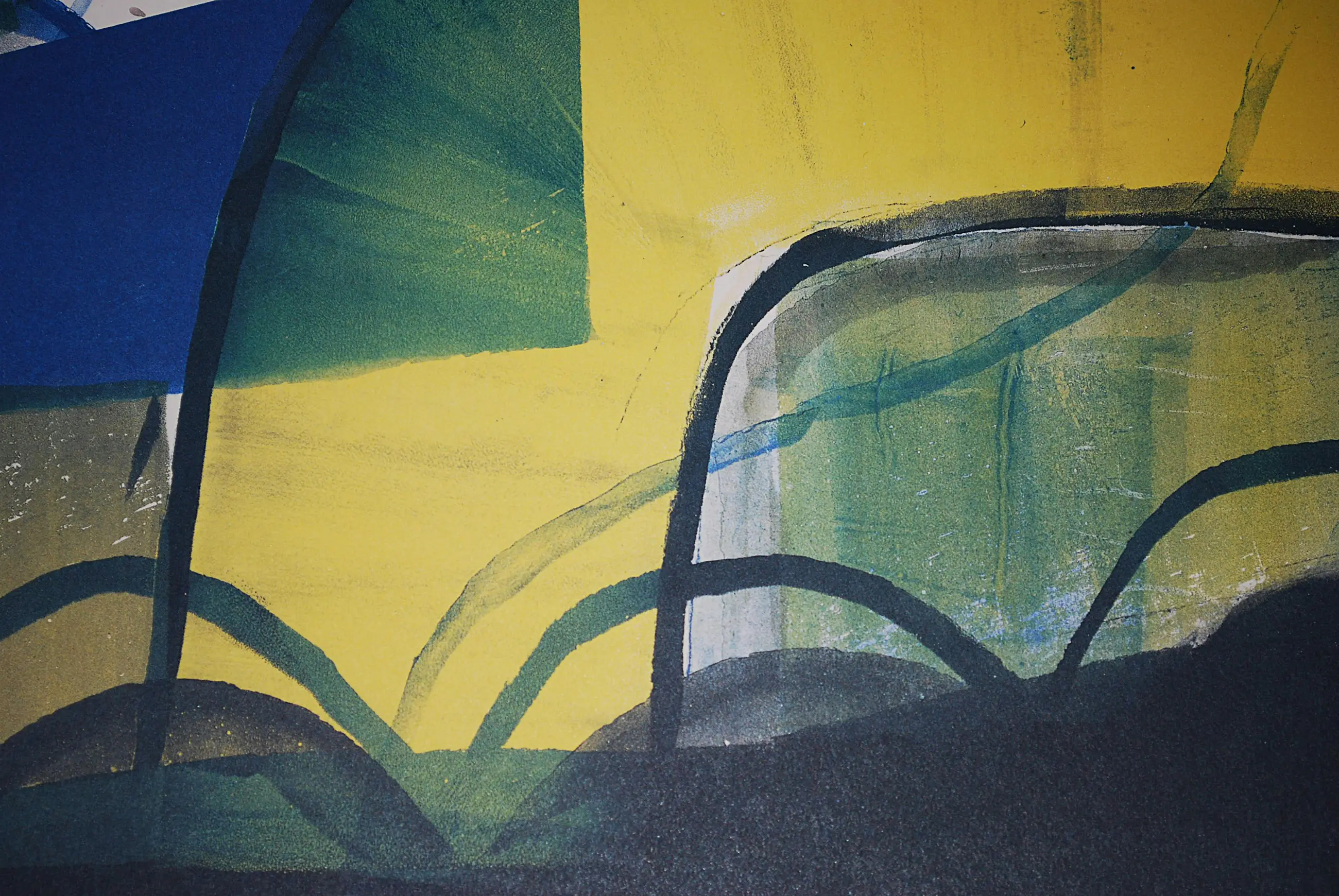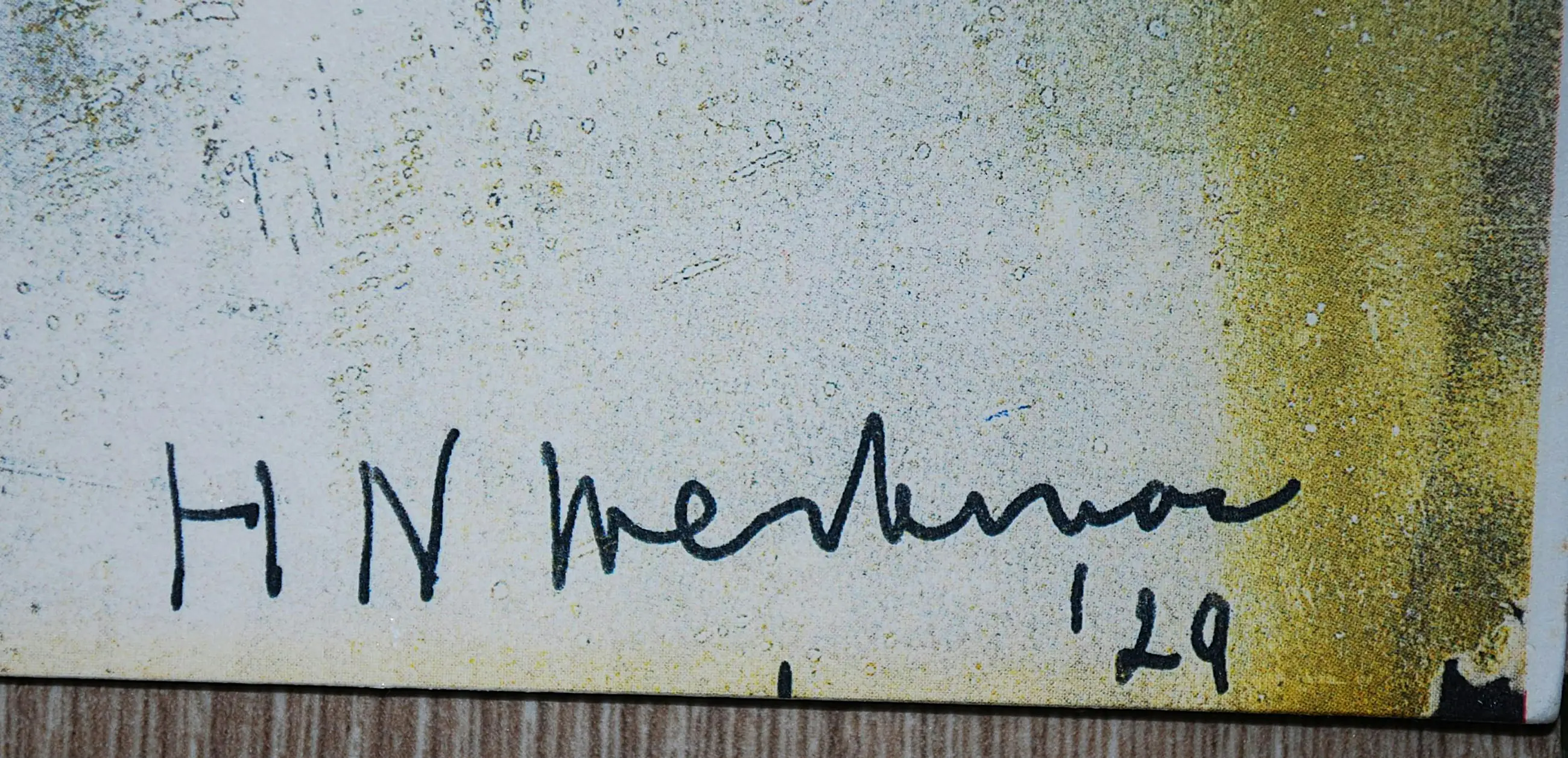 Daarbij de herdruk (onbekende techniek, waarschijnlijk uit 1993) van 'Metro' (techniek rol/rolkant, 1929). Formaat 66.5x50 cm, op stevig, mat papier, bevestigd op karton. In prima gebruikte staat. Achter glas, in een alu lijst met smal voorprofiel. 67x51 cm. Het werk staat overigens ook in de hierboven aangeboden kalender.