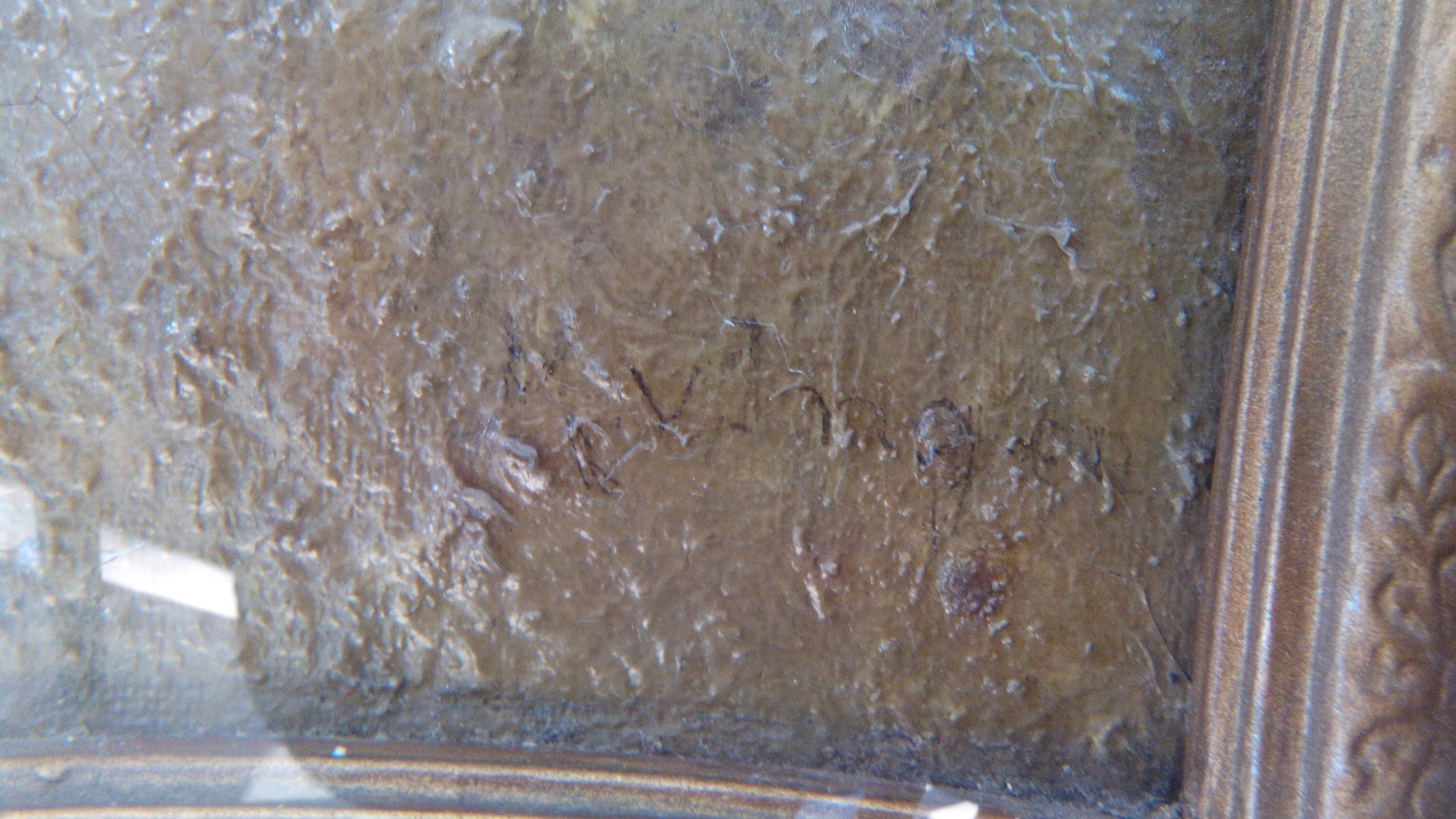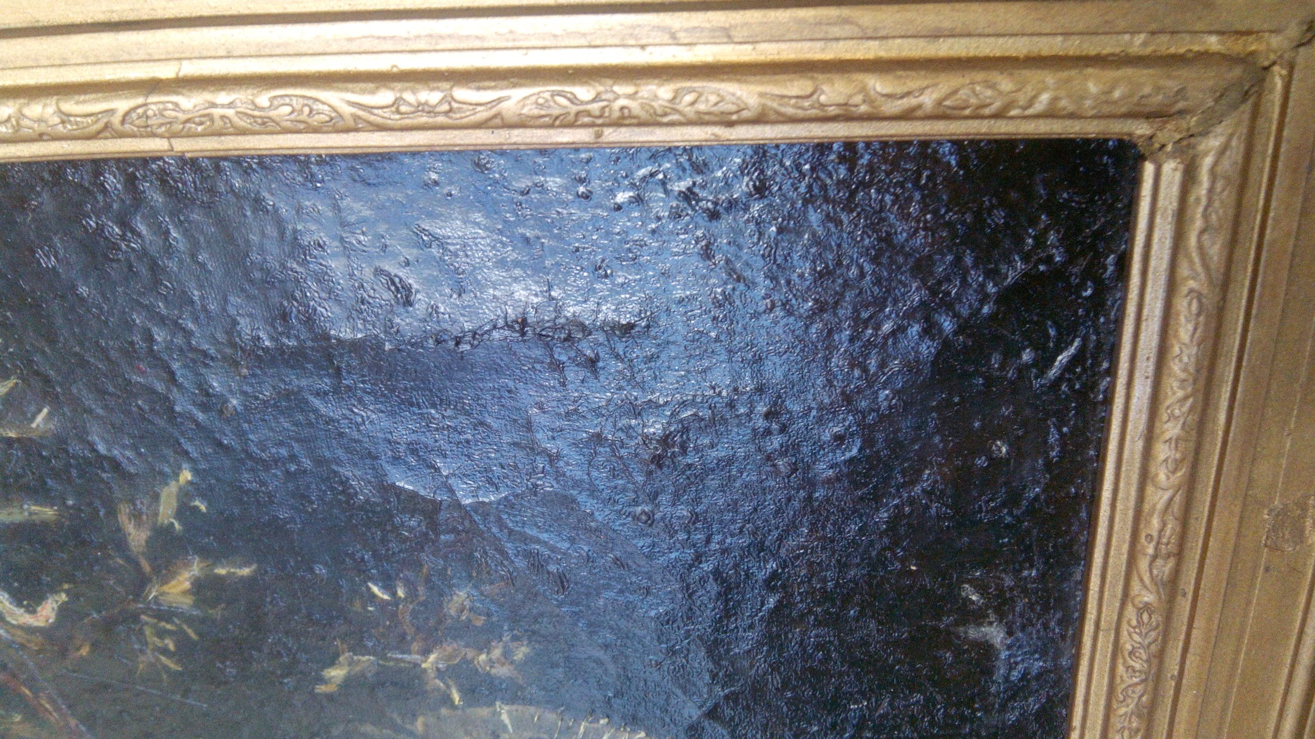 Craquele en op een aantal plekken begint de verf los te laten