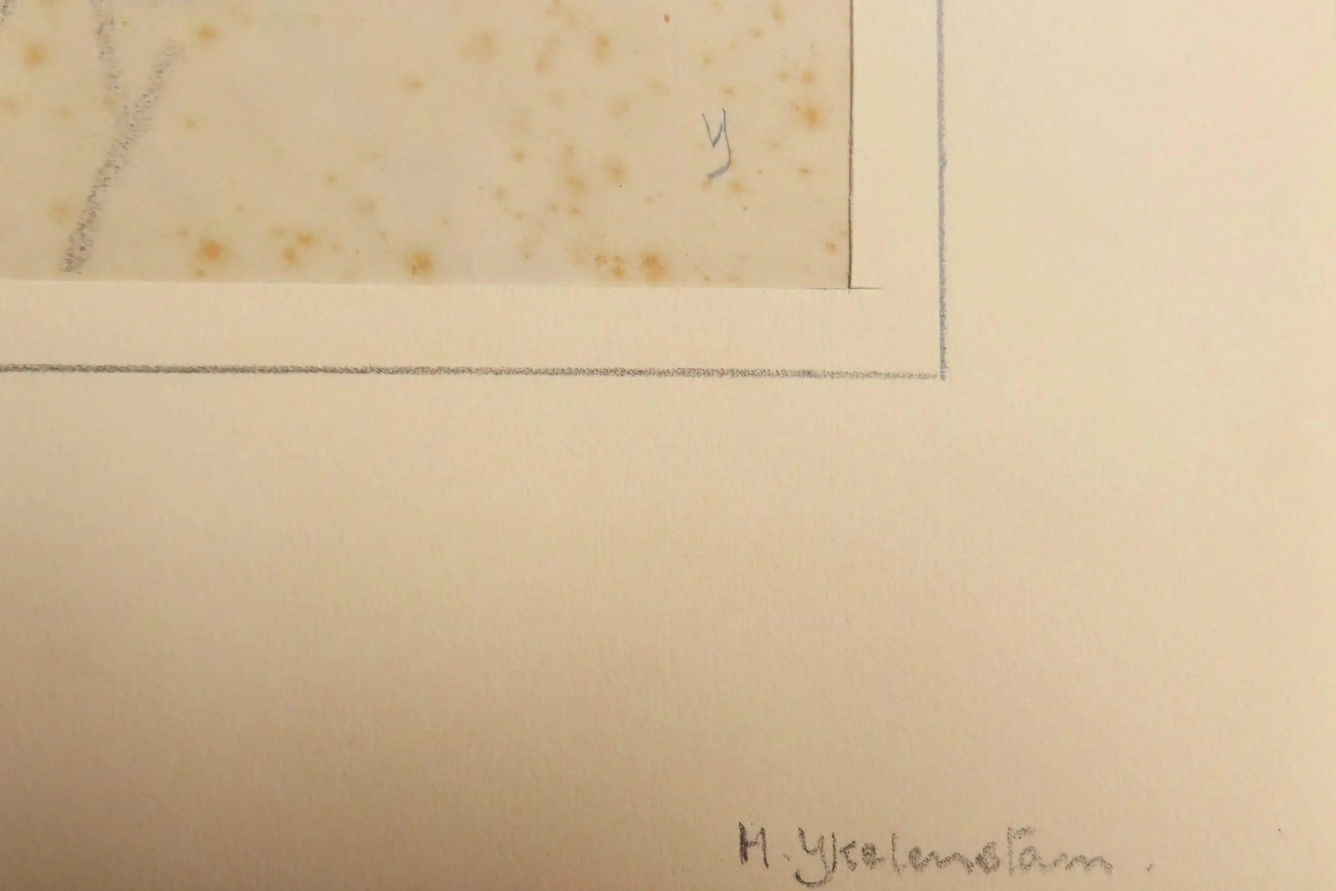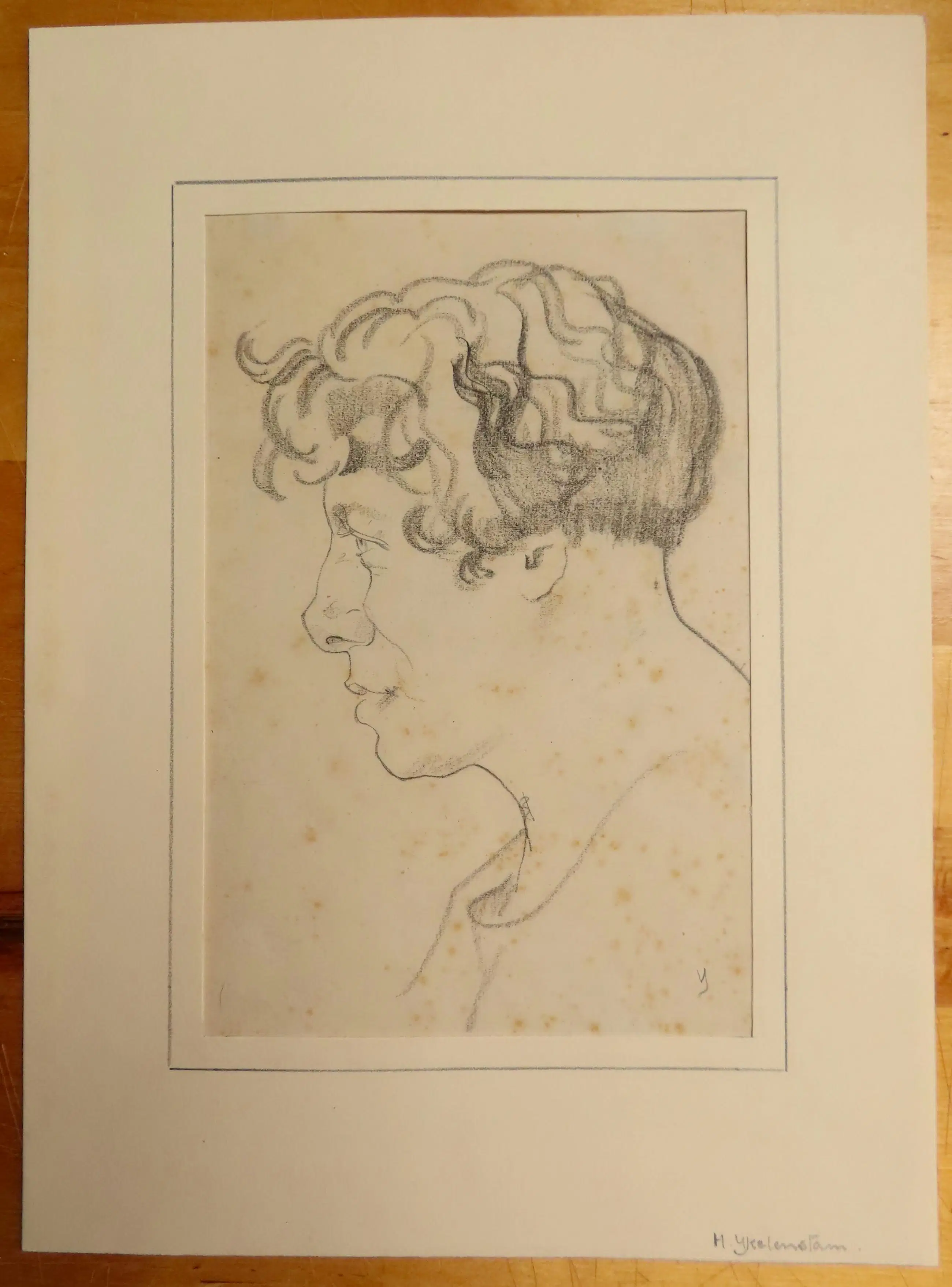 2) Titel: Bebby Techniek: tekening potlood/krijt Gesigneerd: monogram Y Afmetingen: 26 x 17 cm Conditie: foxing