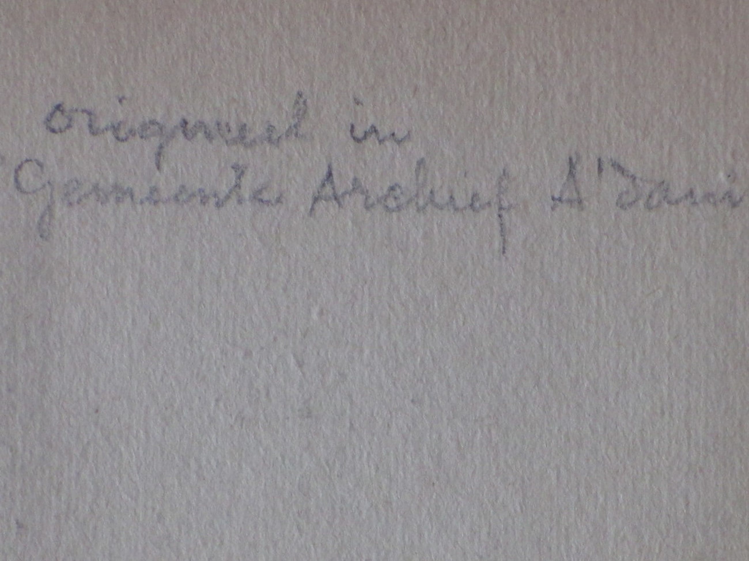 Annotatie in potlood op achetrzijde: 'origineel in Gemeente Archief A'dam'