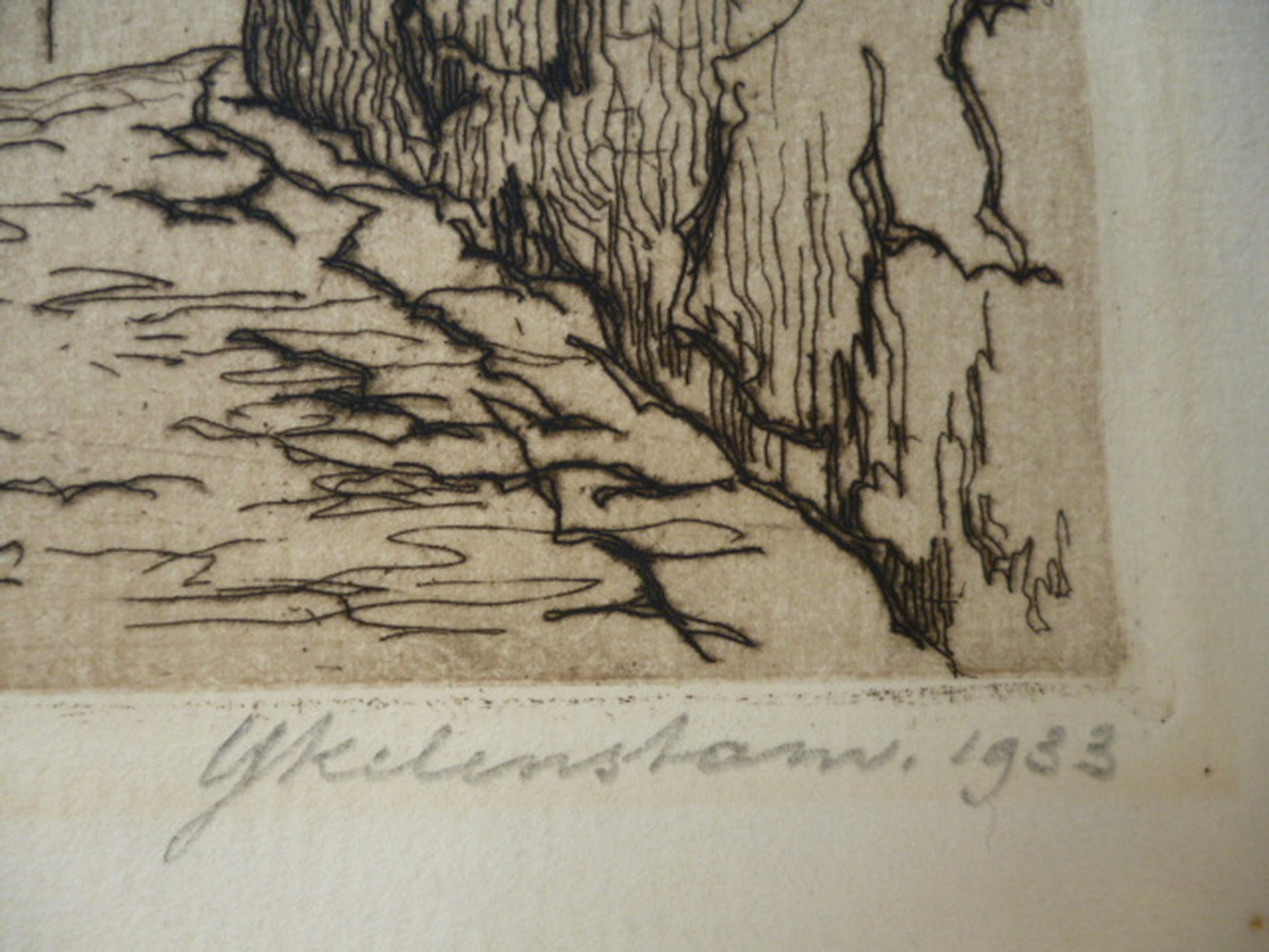 Ets uit 1933, potlood gesigneerd en gedateerd rechtsonder.