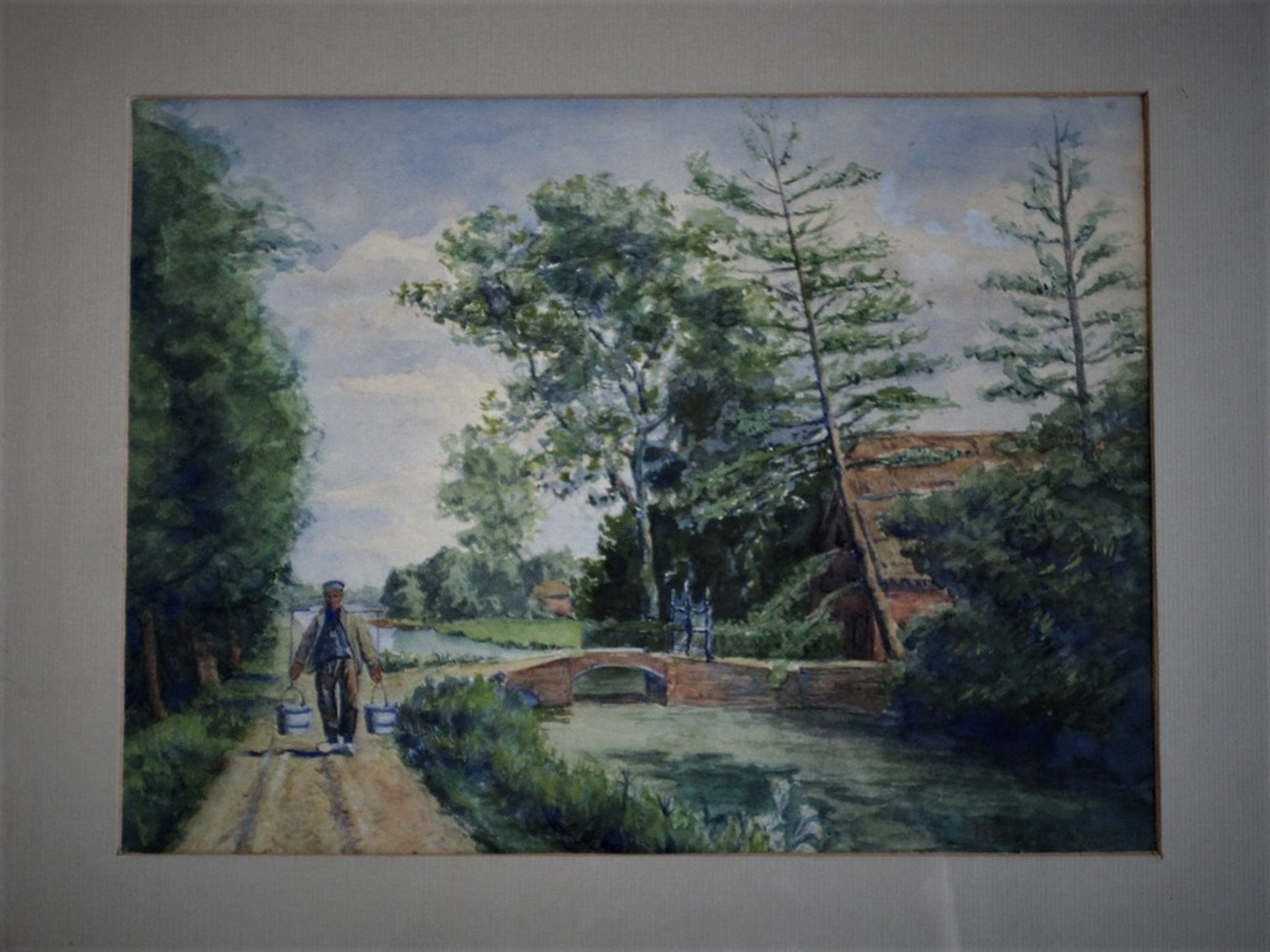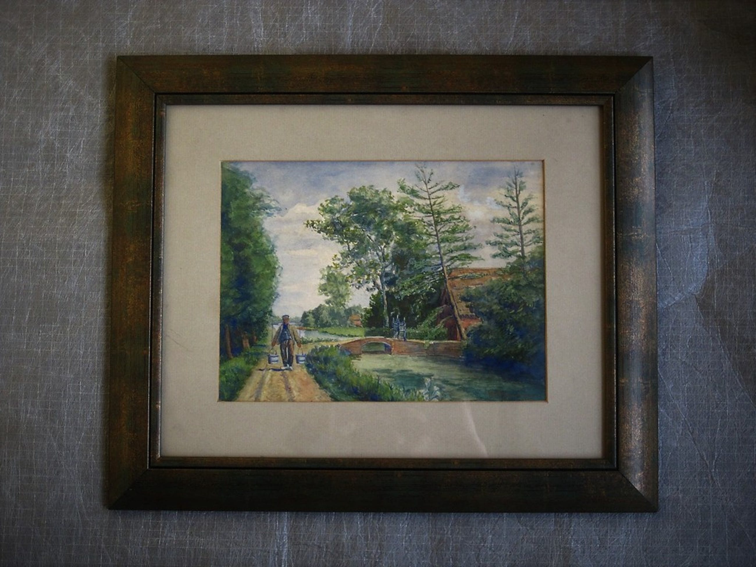 Prachtige 19e eeuwse aquarel van Haagse meester. Verkeert in goede conditie.