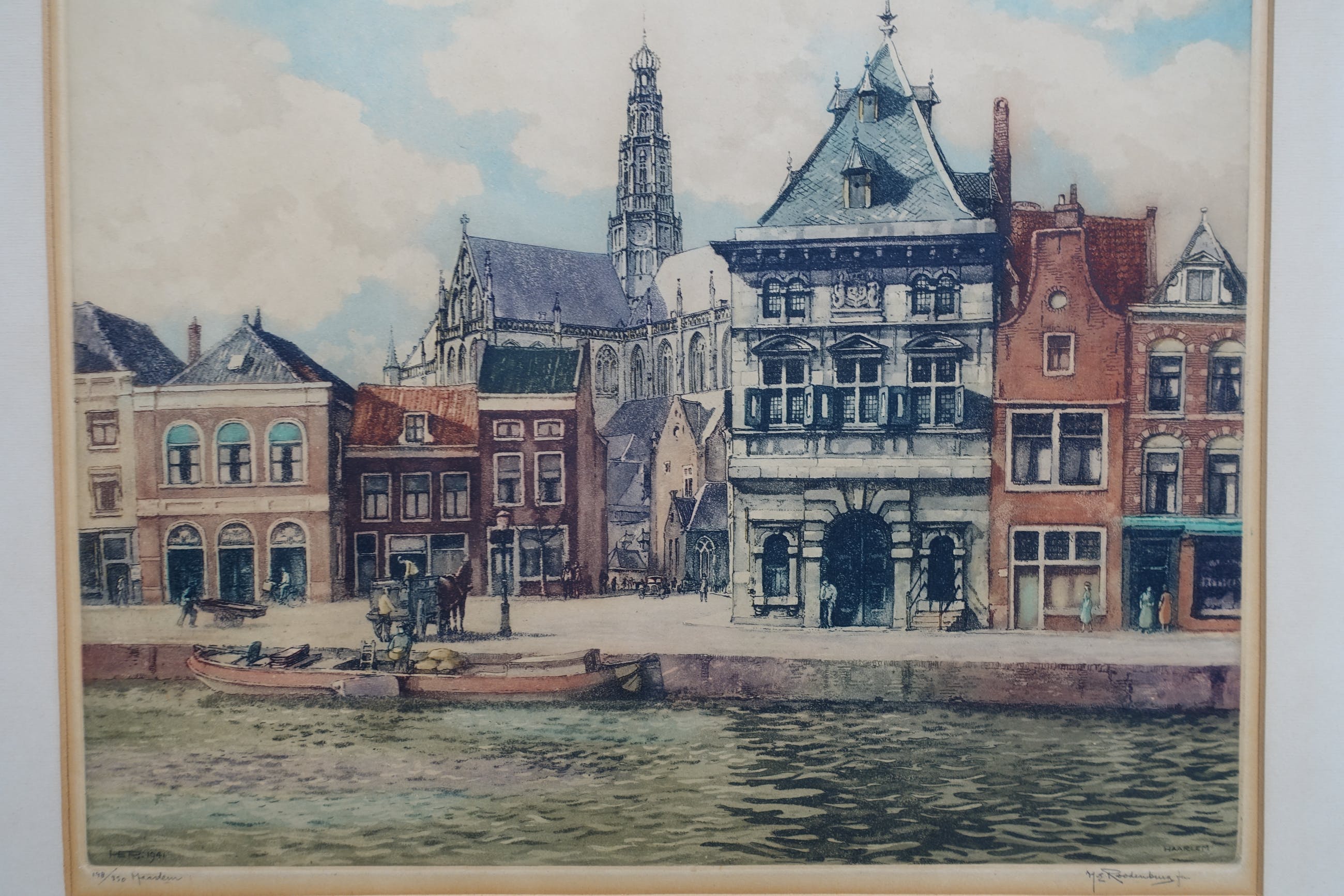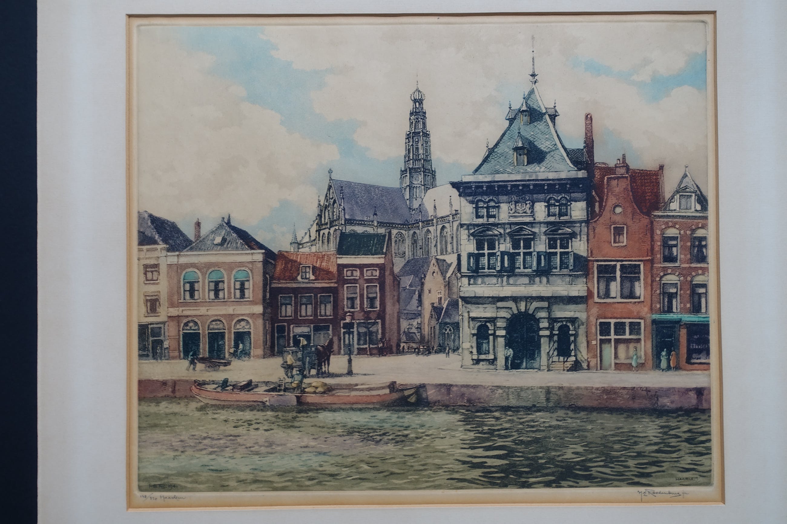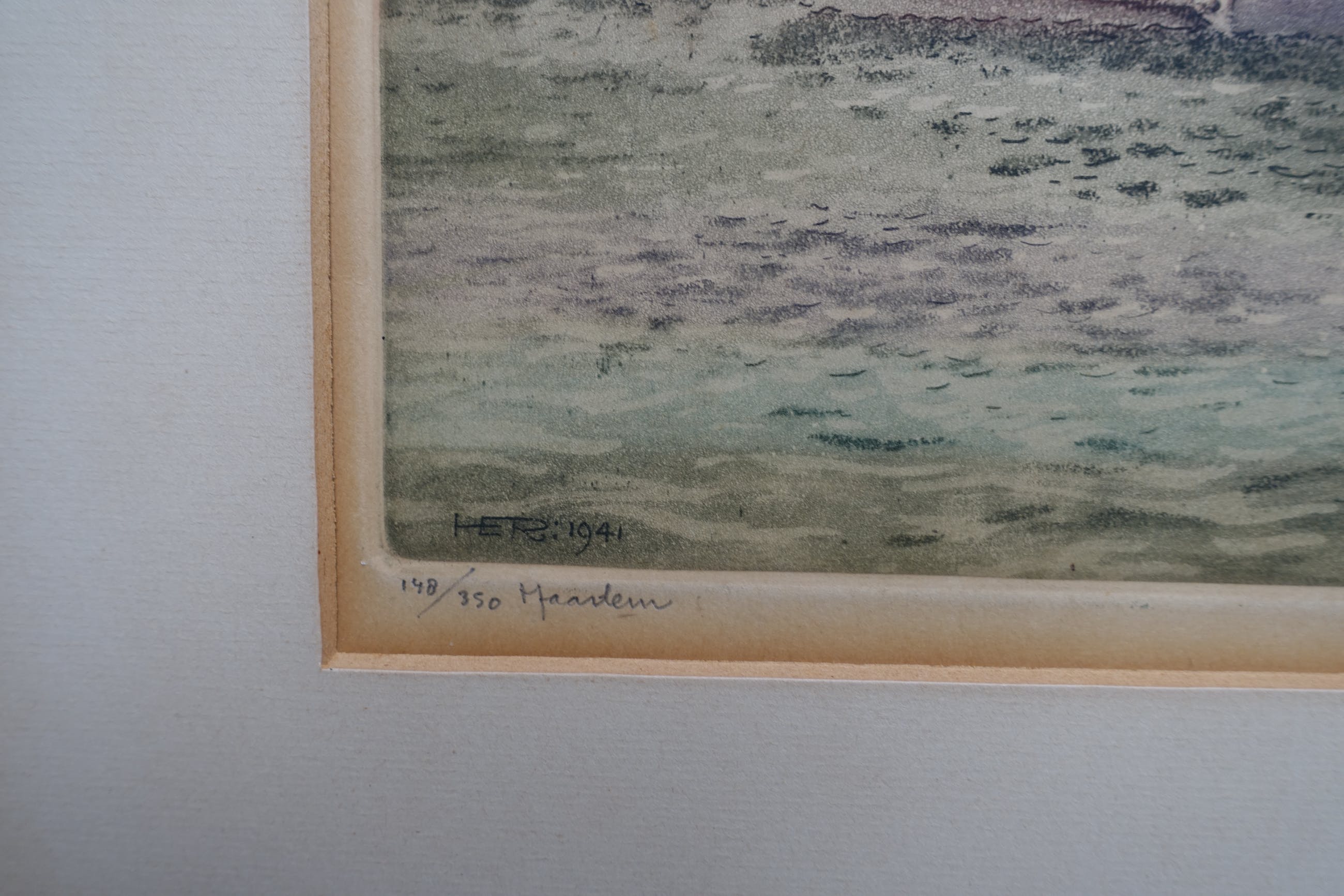 Kleurenaquatint uit 1941 op papier vélin in een bijzonder mooie conditie. Gesigneerd en betiteld met potlood. Opgenomen in passe-partout met achtervel. Sterke kleuren.
