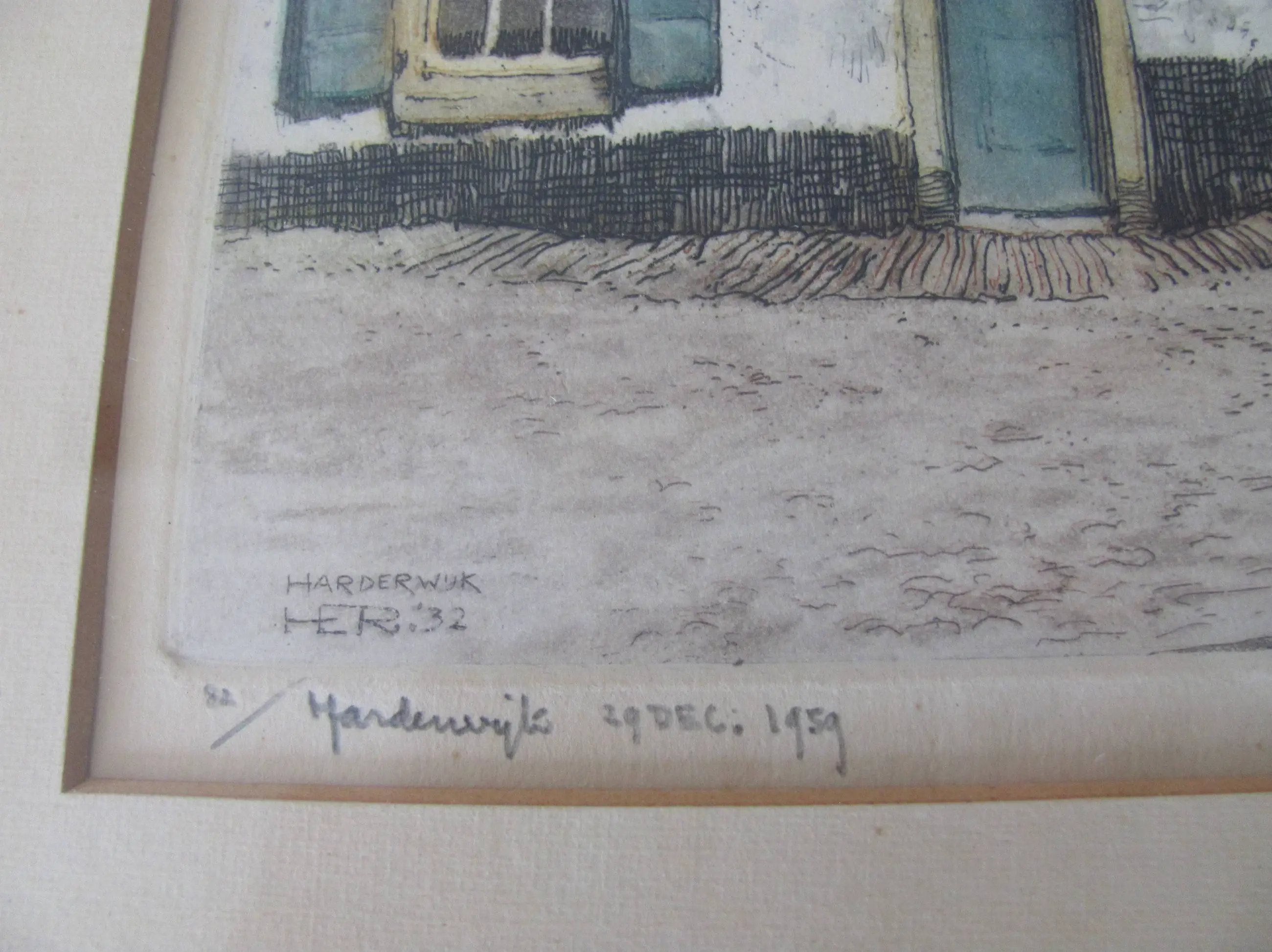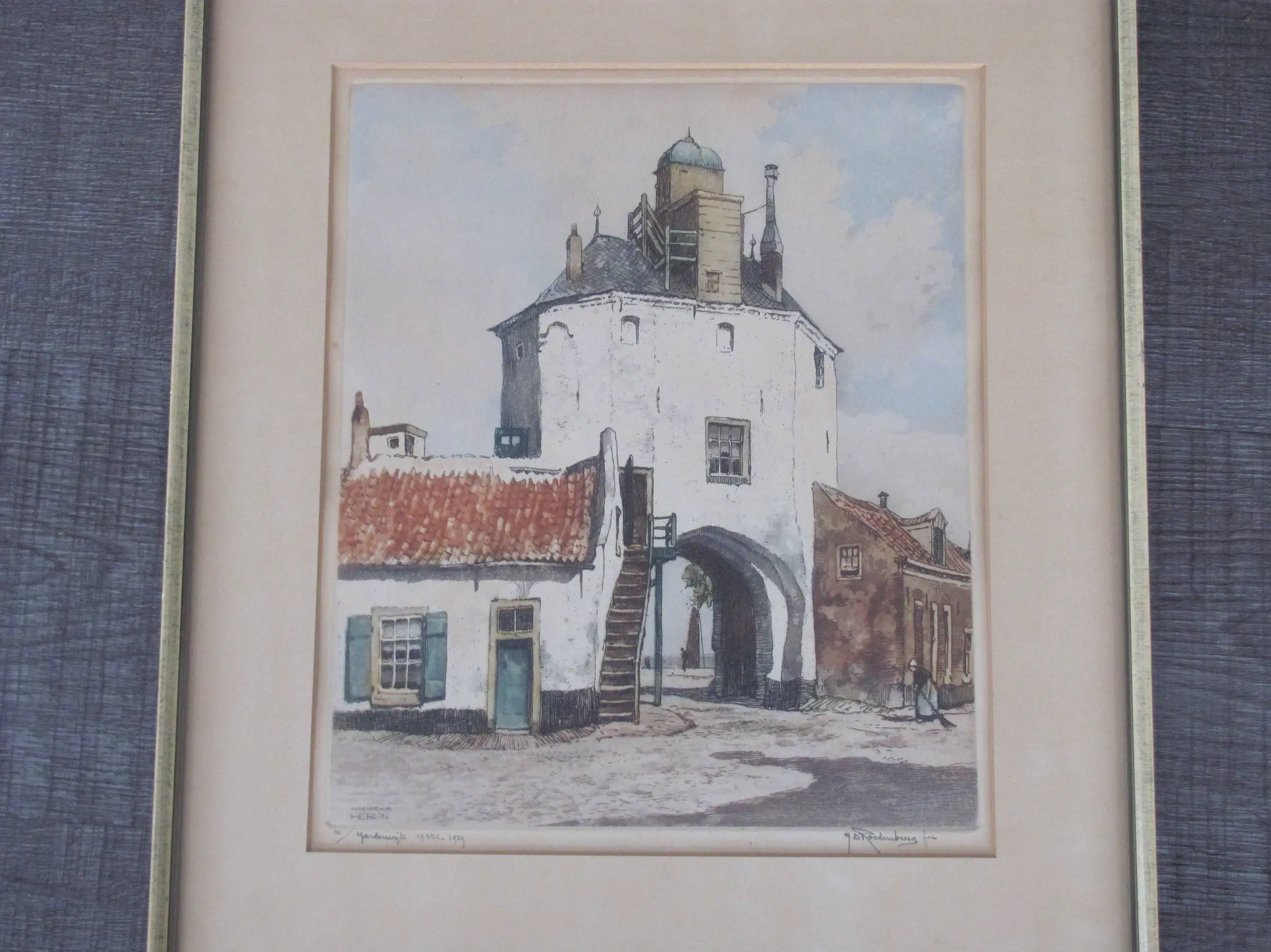 Met potlood genummerd 32/.. en nogmaals gedateerd: 29 dec. 1959, dus toen heeft Roodenburg de ets opnieuw afgedrukt. Rechtsonder gesigneerd met potlood: H.E. Roodenburg. Ondanls de ouderdom in goede staat, zonder verkleuringen.