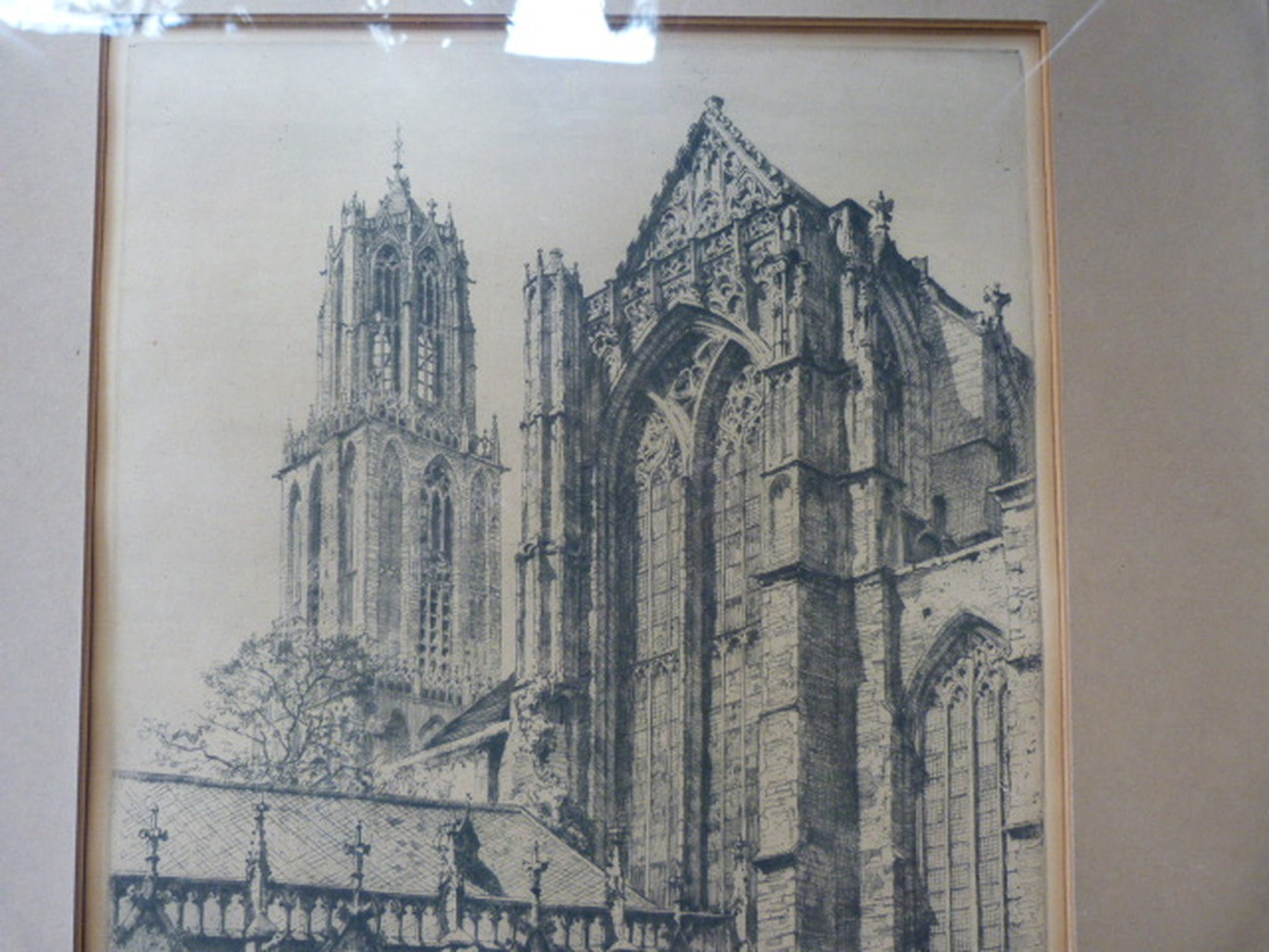 Ets : Domkerk en Domtoren, Utrecht uit het jaar 1930.