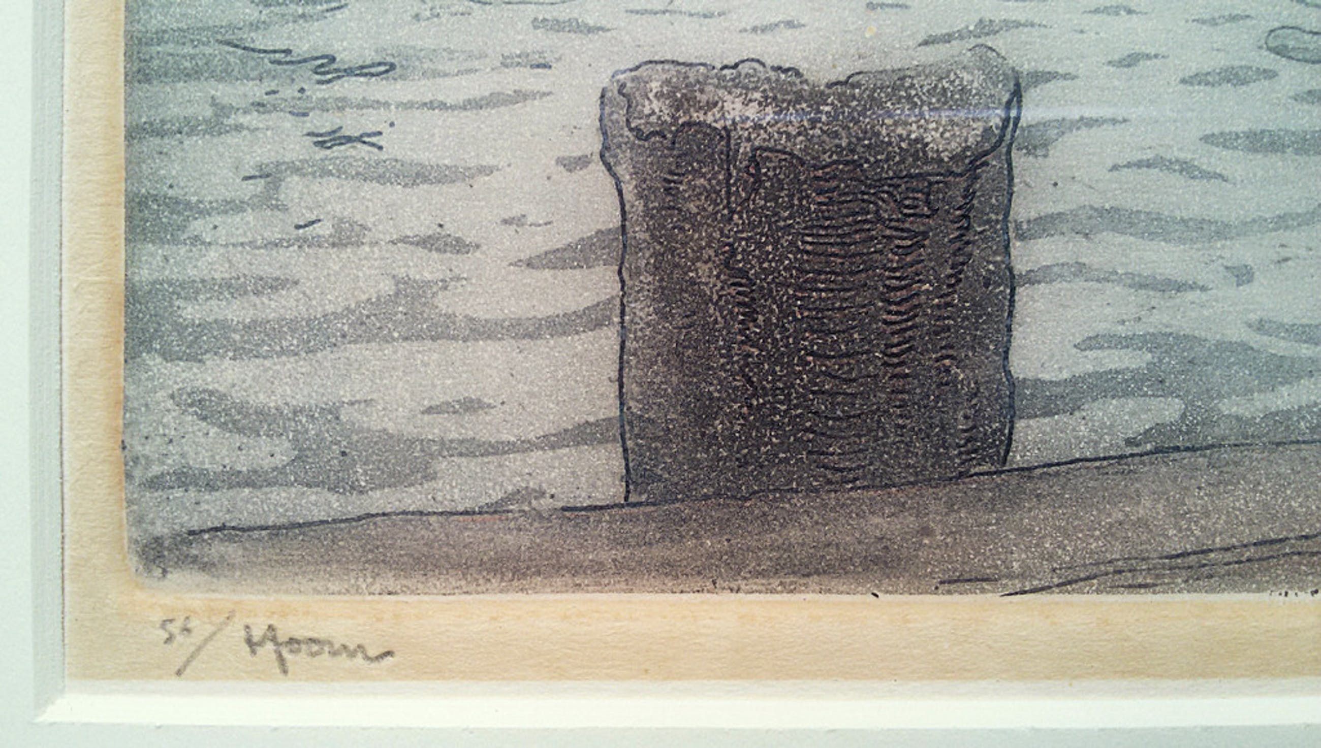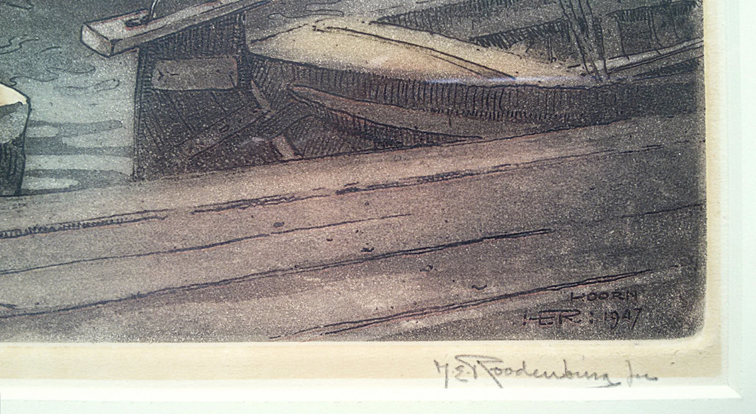Mooie ets van de Hoofdtoren in de haven van Hoorn door Hendrikus Roodenburg. Prachtig ingelijst door een professionele lijstenmakerij, achter museumglas en smetteloos passe-partout. Met potlood gesigneerd, getiteld en genummerd (56). In uitstekende conditie.