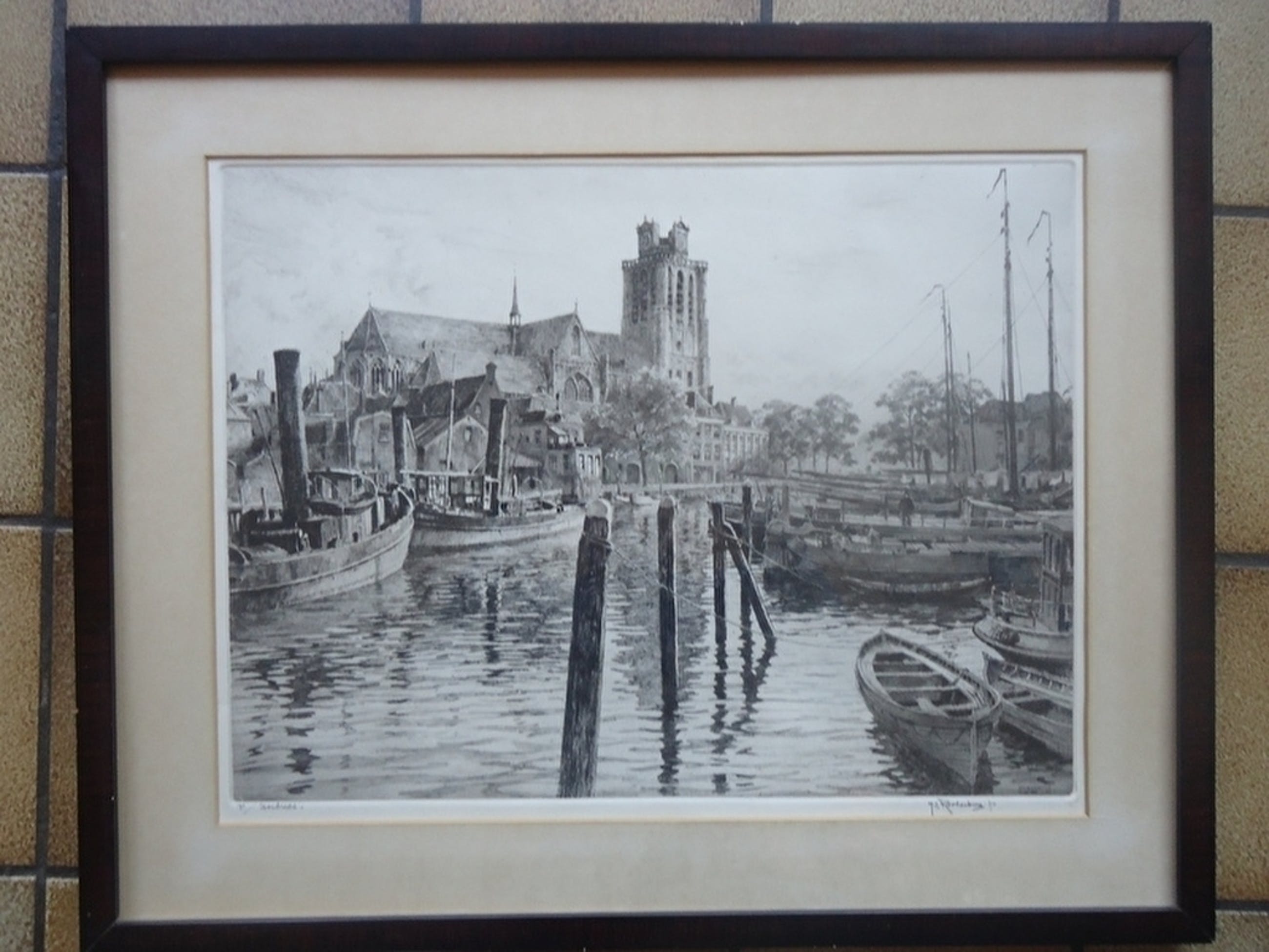 Ets : 36 x 49 cm. Met passe-partout en lijst : 52 x 64 cm.