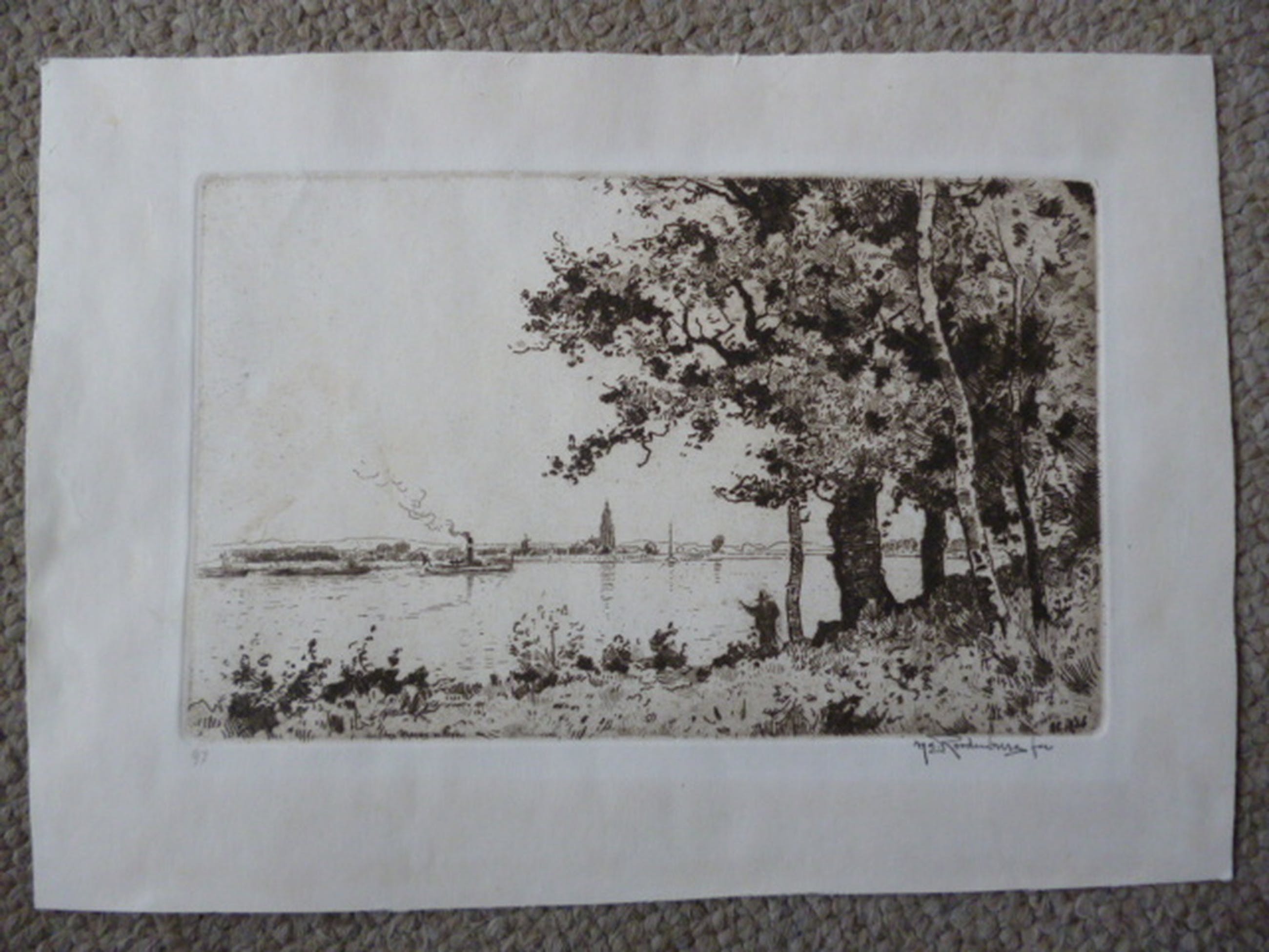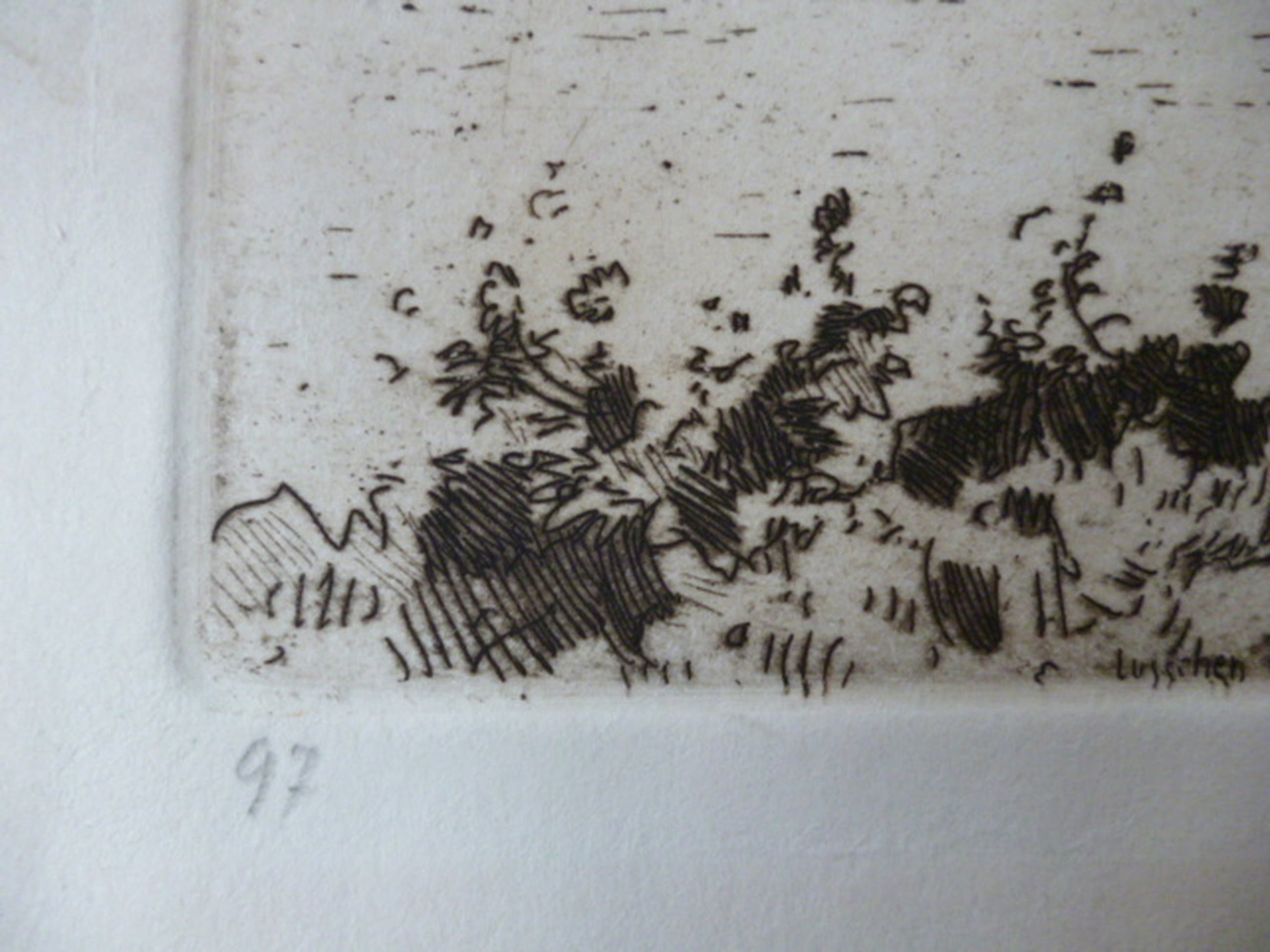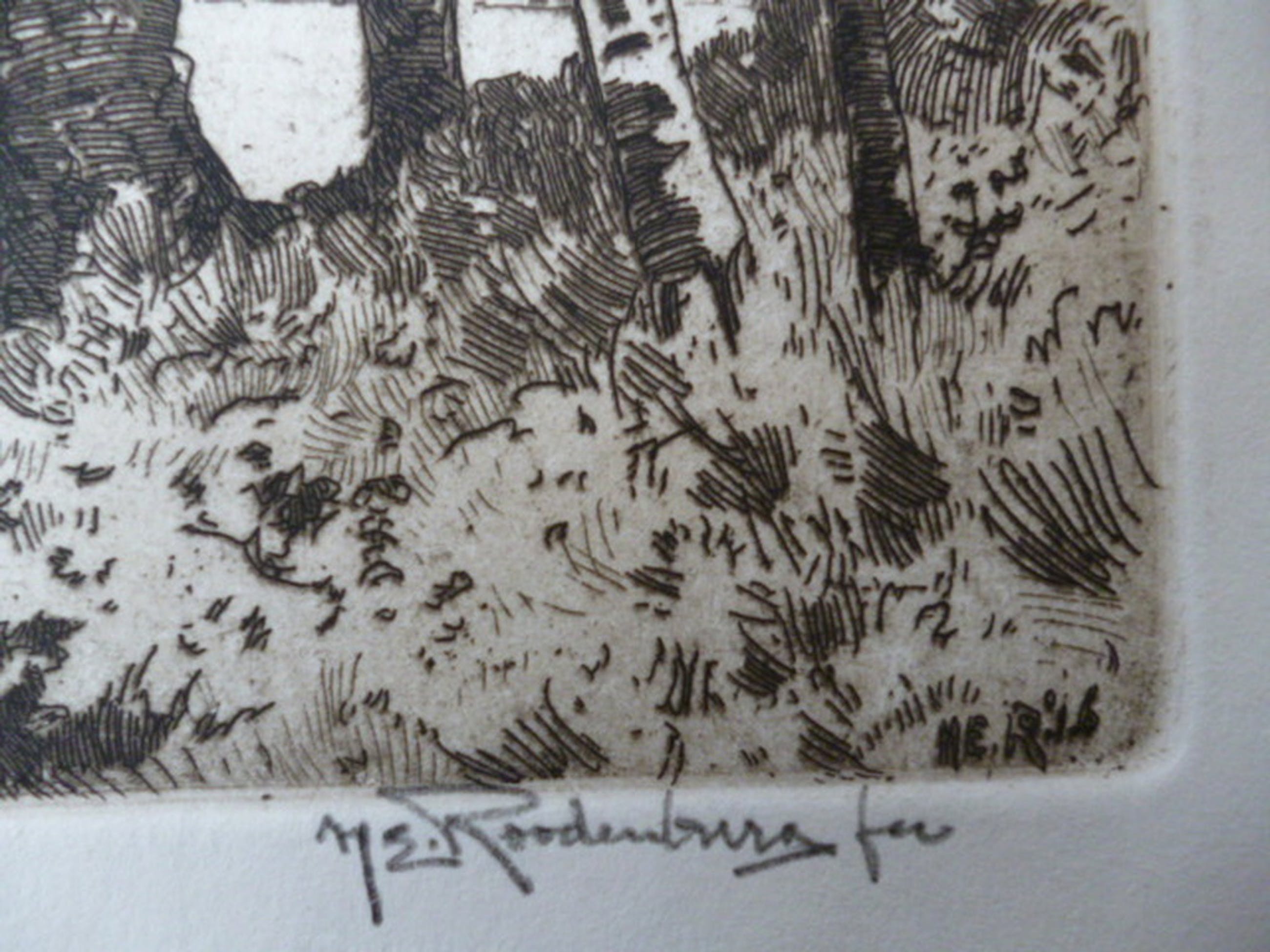 Ets uit 1916, potlood gesigneerd rechtsonder. Genummerd 97 linksonder. Initialen en '16 in de plaat rechtsonder.