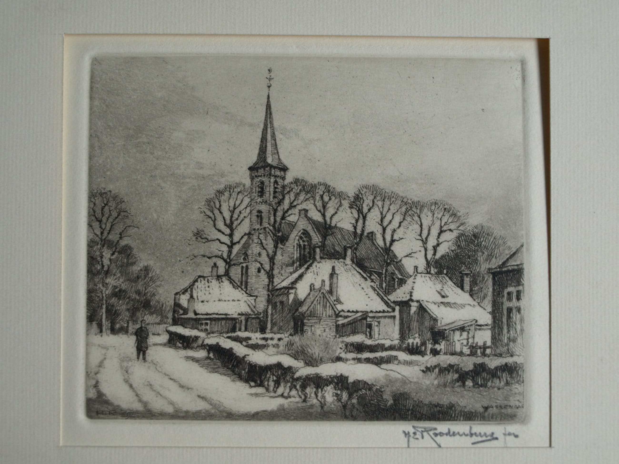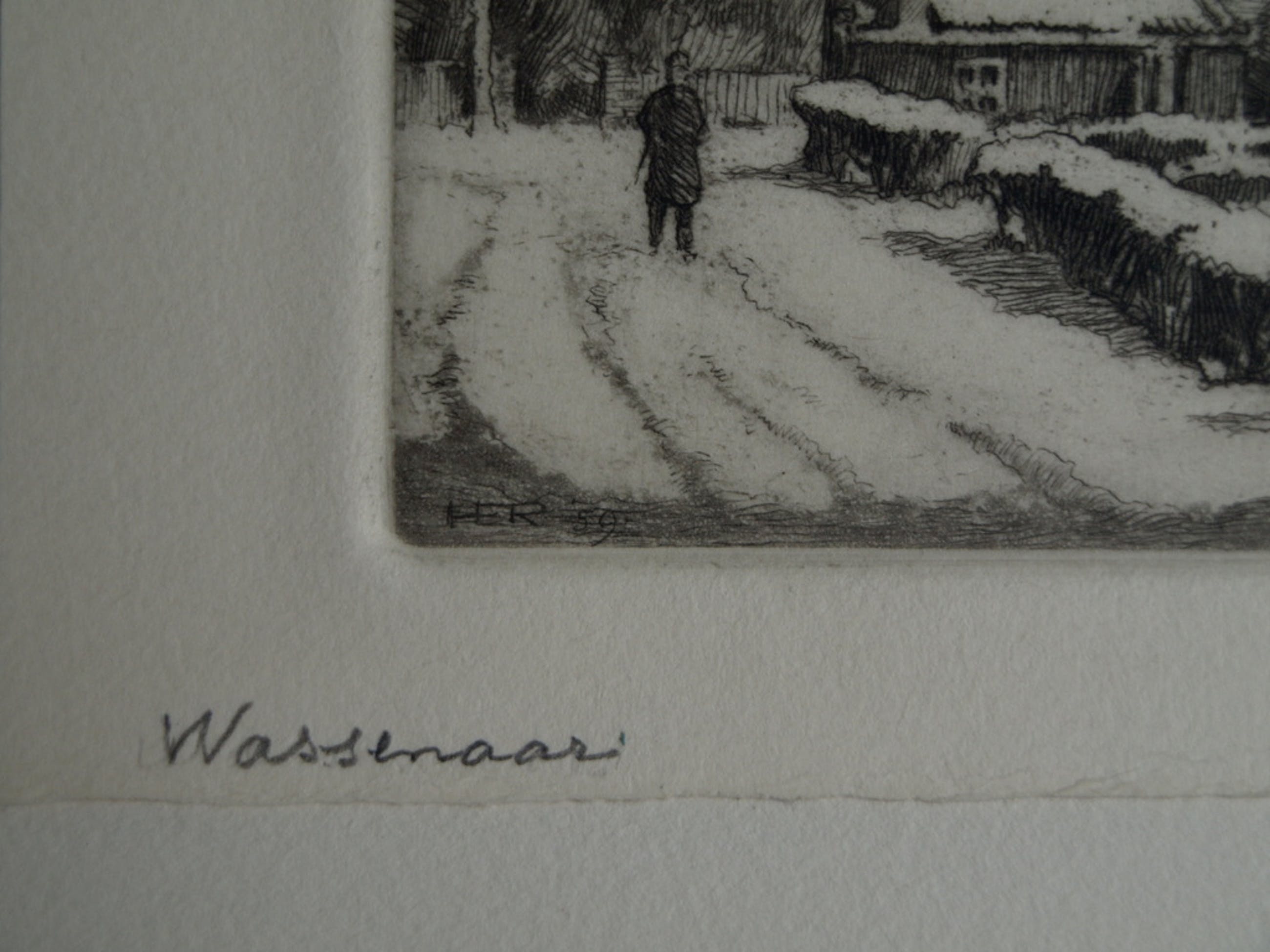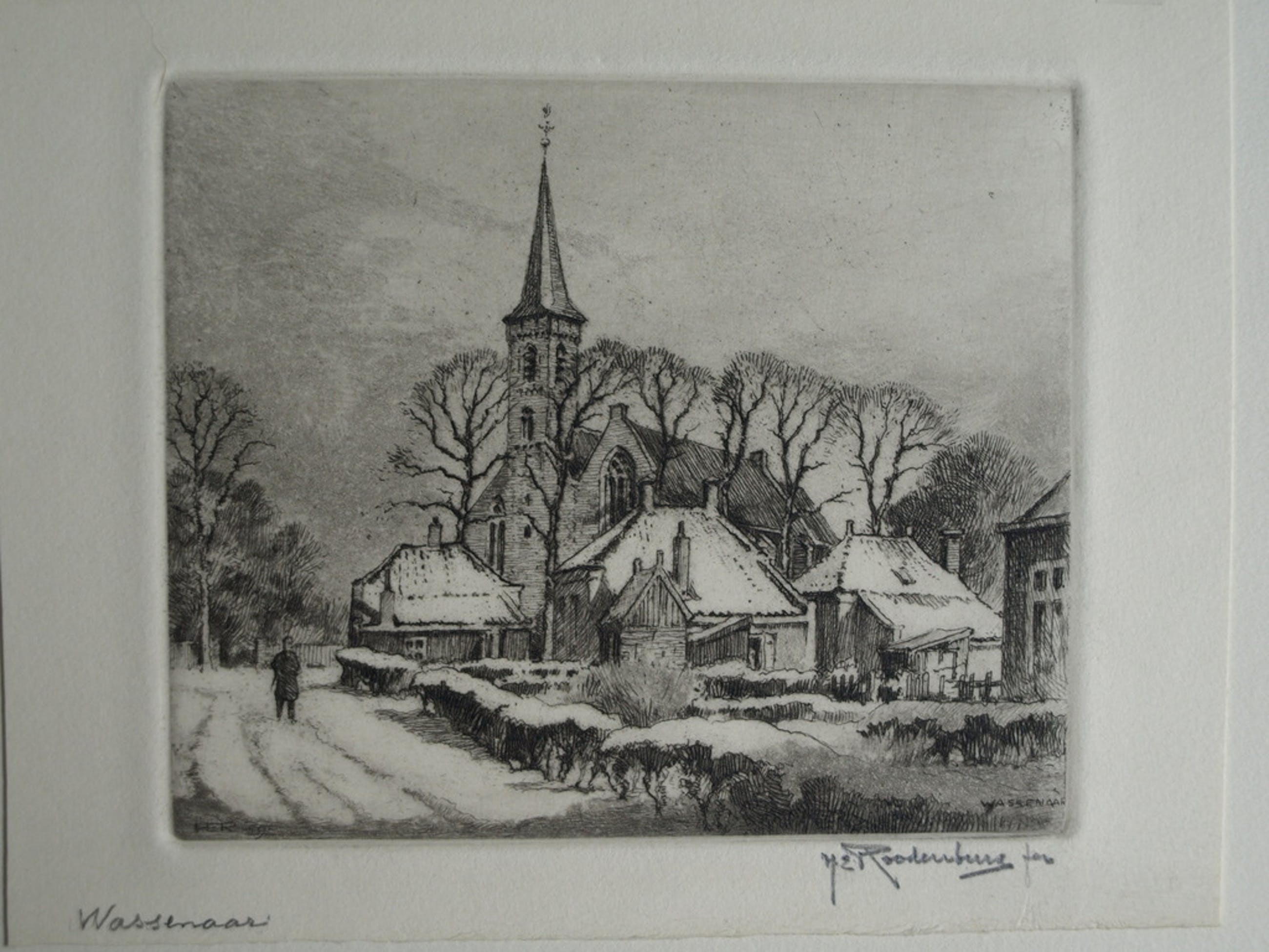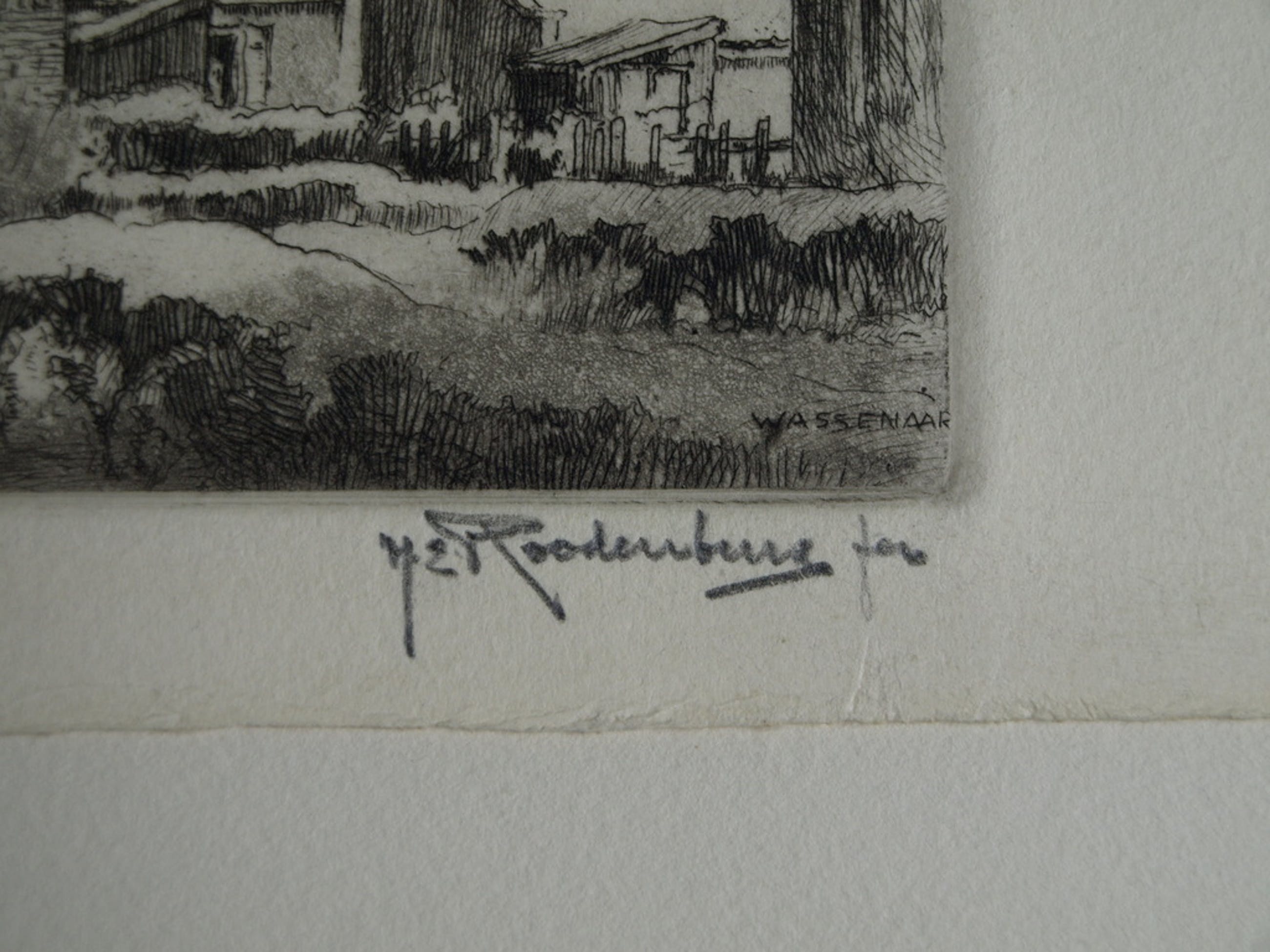 Een ets van de Nederlandse kunstenaar Hendrikus Elias Roodenburg getiteld “Wassenaar”.