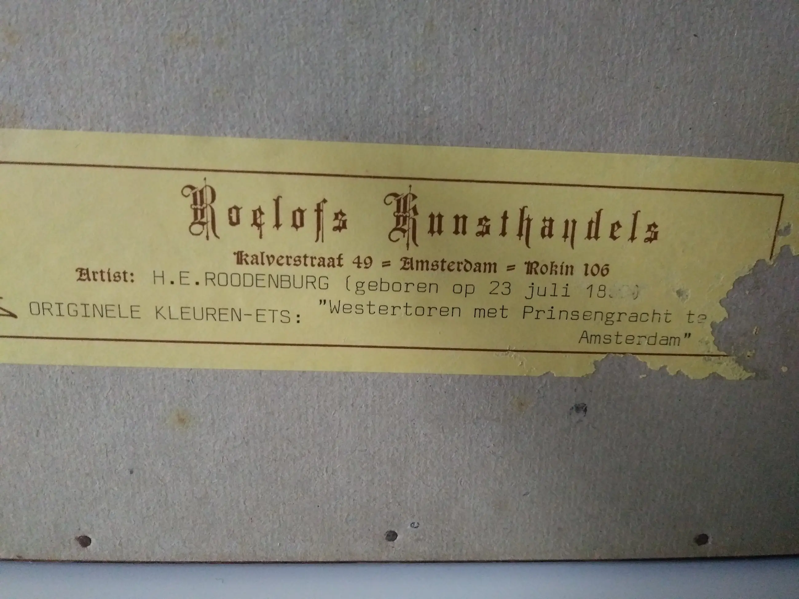 Hendrikus Roodenburg - kleurenets van Westertoren met Prinsengracht te Amsterdam