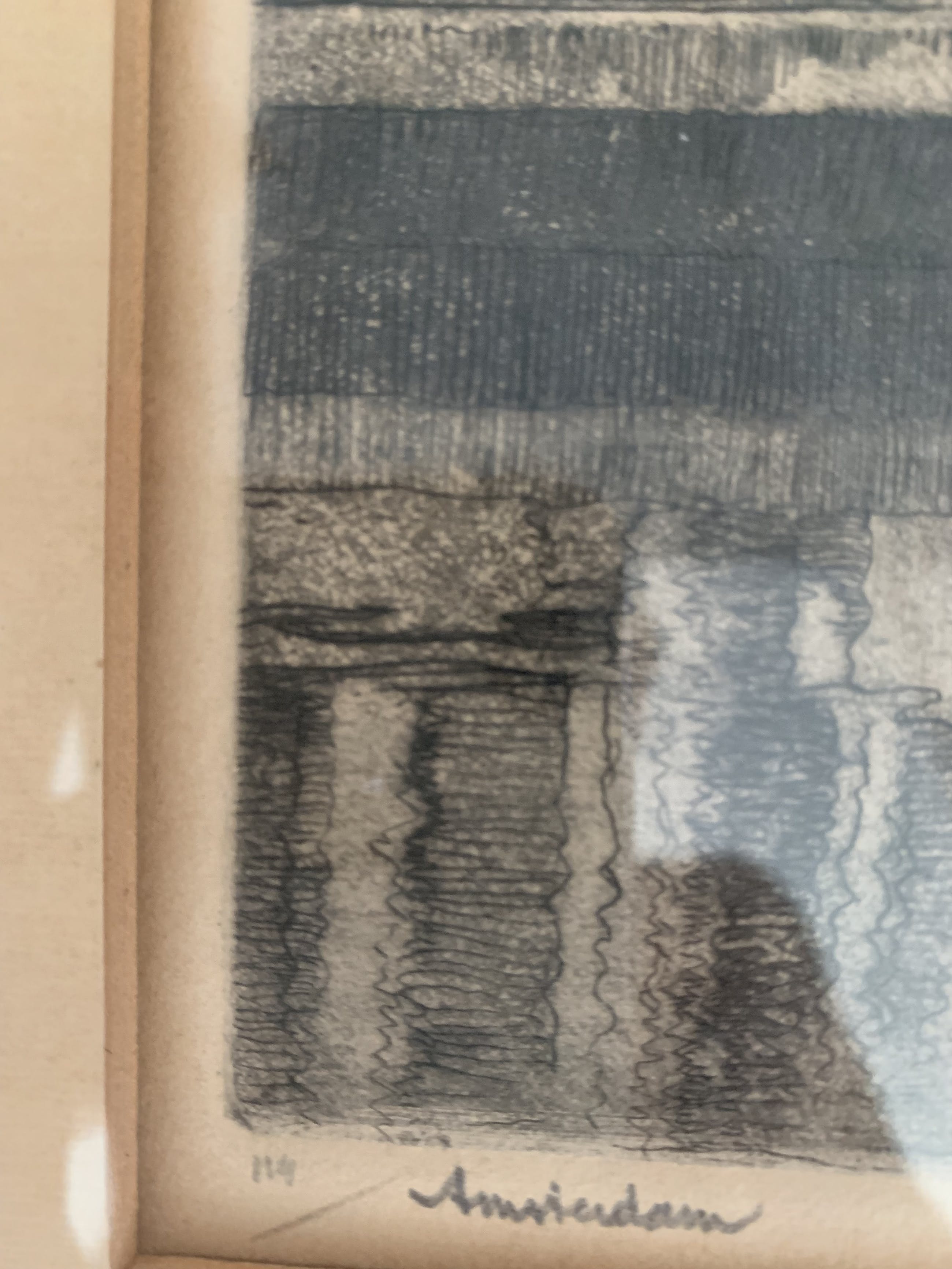 Afmetingen ets 33 x 31 cm. Totale afmetingen 51 x 47 cm. Het geheel in mooie staat en lijst met lichte gebruikssporen.