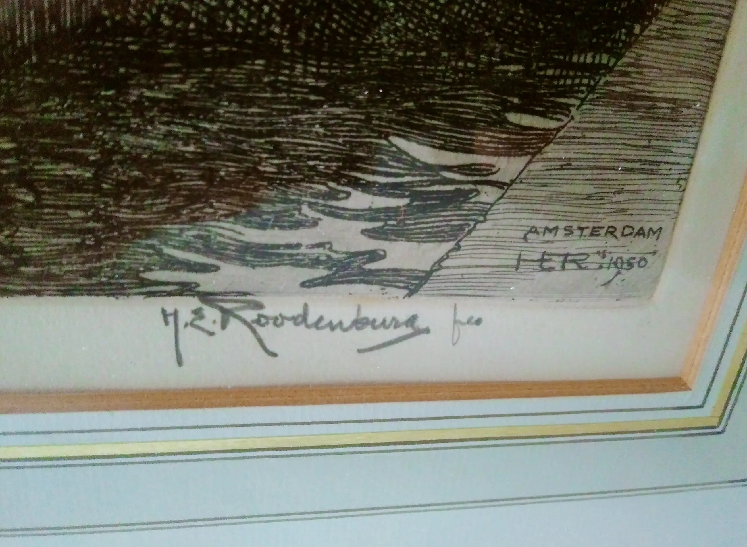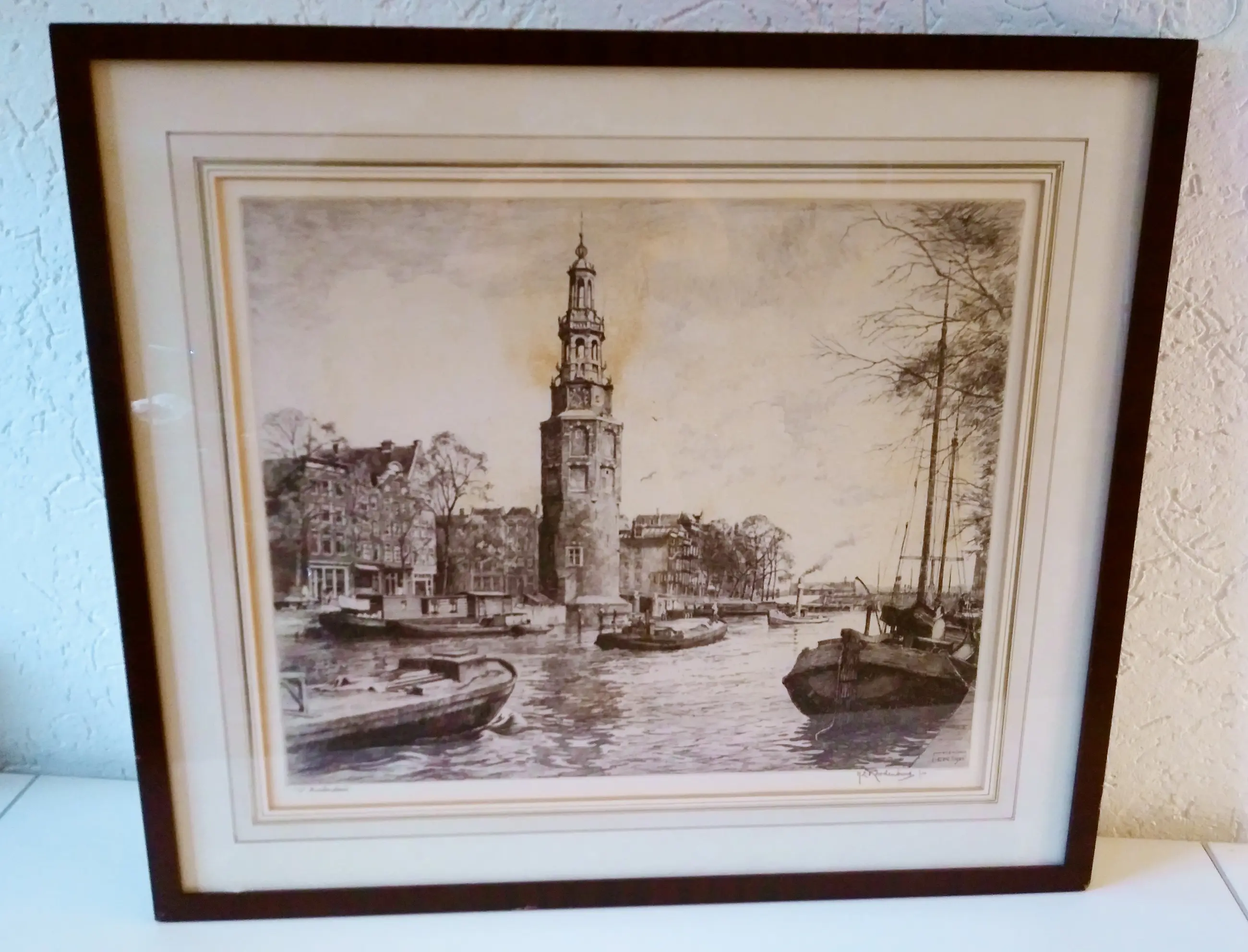 Mooie ets van de Montelbaanstoren van Hendrikus Roodenburg. Bevindt zich in een goede toestand. Hand gesigneerd.
