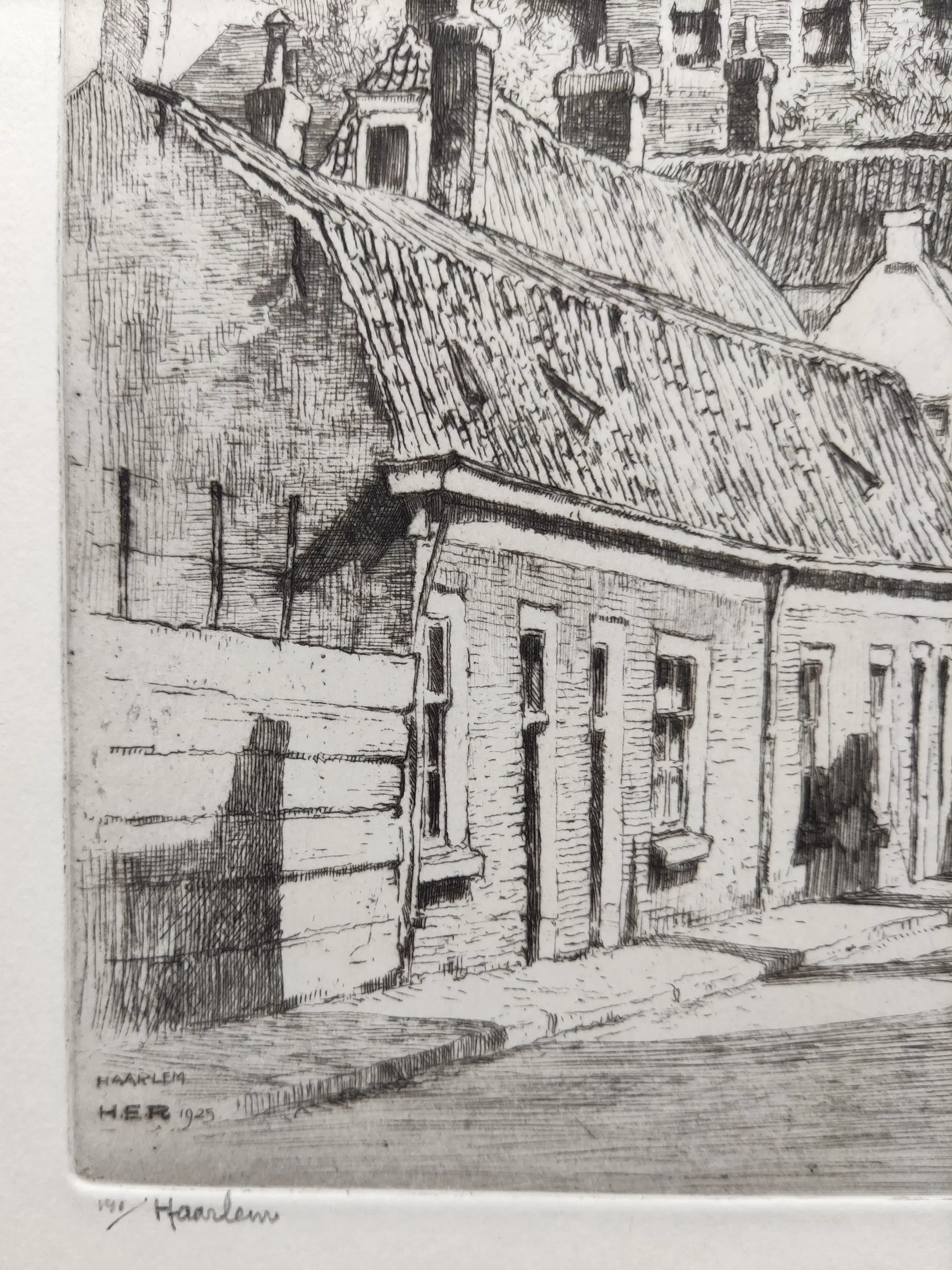 Potlood gesigneerd rechtsonder. Getiteld en genummerd 191 linksonder. In de plaat monogram, titel en datum. Beeldmaat 34,5x16,5 cm. Bladmaat 47,5x32 cm. Losbladig. Literatuur: Catalogus Roodenburg/Trouw no. GK.E-1925-6.