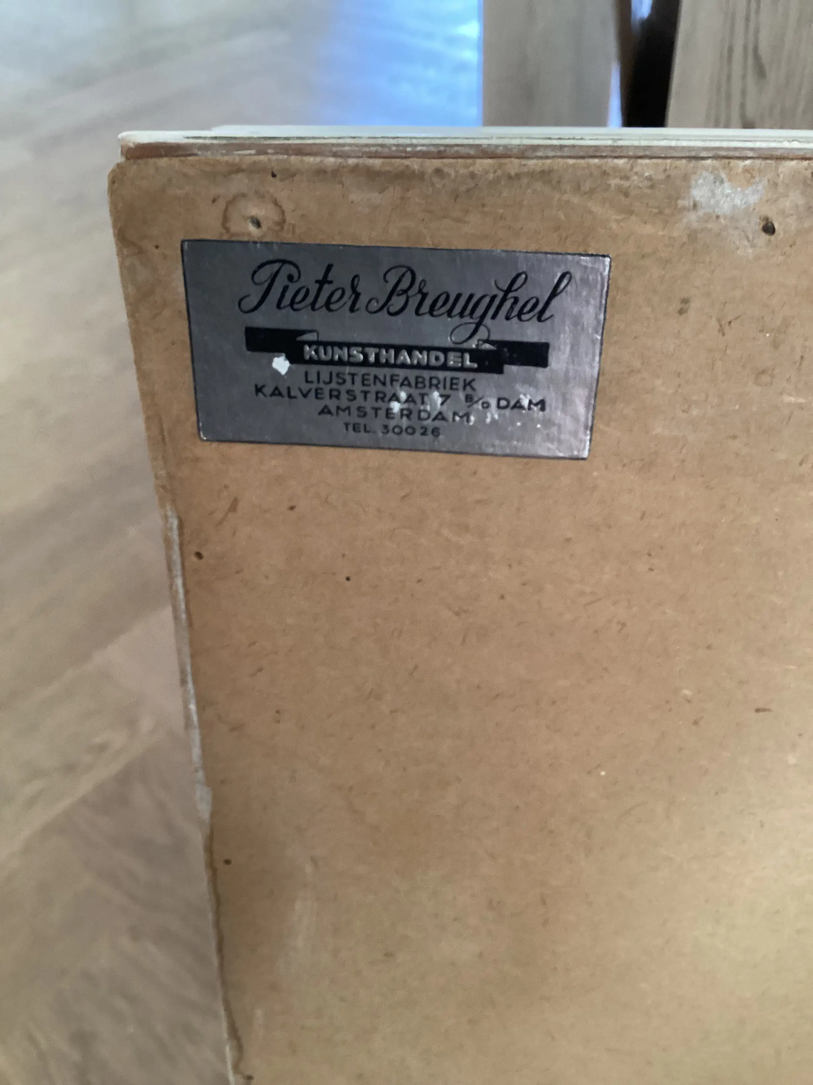 Het kunstwerk is in zeer goede staat en de lijst heeft gebruikssporen.