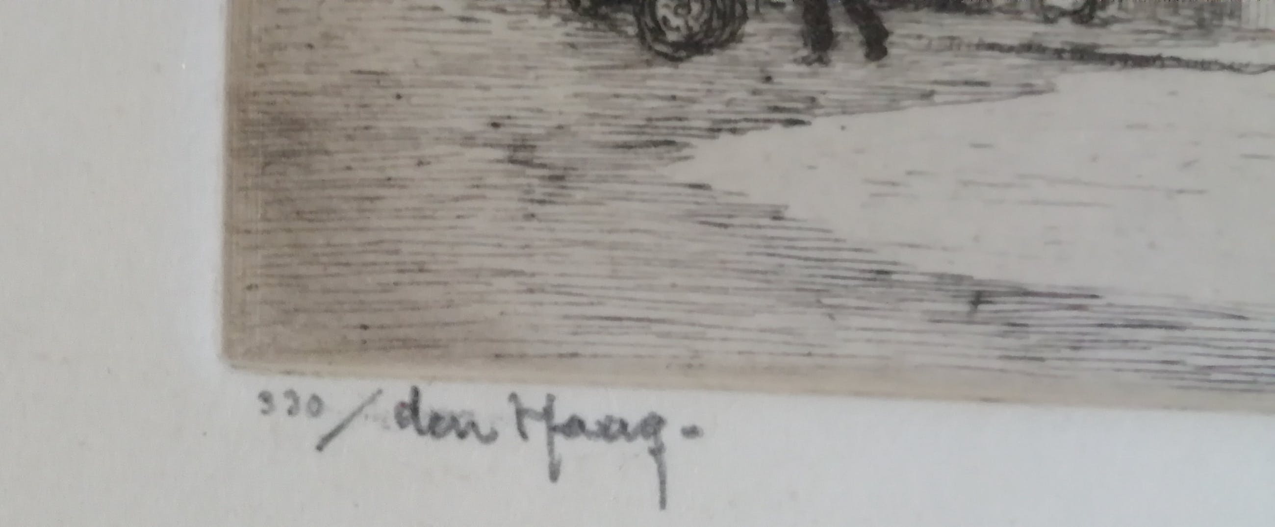 Potlood gesigneerd rechtsonder en getiteld en genummerd 330 linksonder. Initialen en jaartal '23 in de plaat rechtsonder. Hendrikus Elias Roodenburg werd geboren te Den Haag op 23 juli 1895 en overleed te Den Haag op 27 april 1987. Was een leerling van Philippe Zilcken. Verder autodidact. Zeer kundig topografisch etser. Lid van Arti et Amicitiae, Sint Lucas, Pulchri Studio en de BBK.