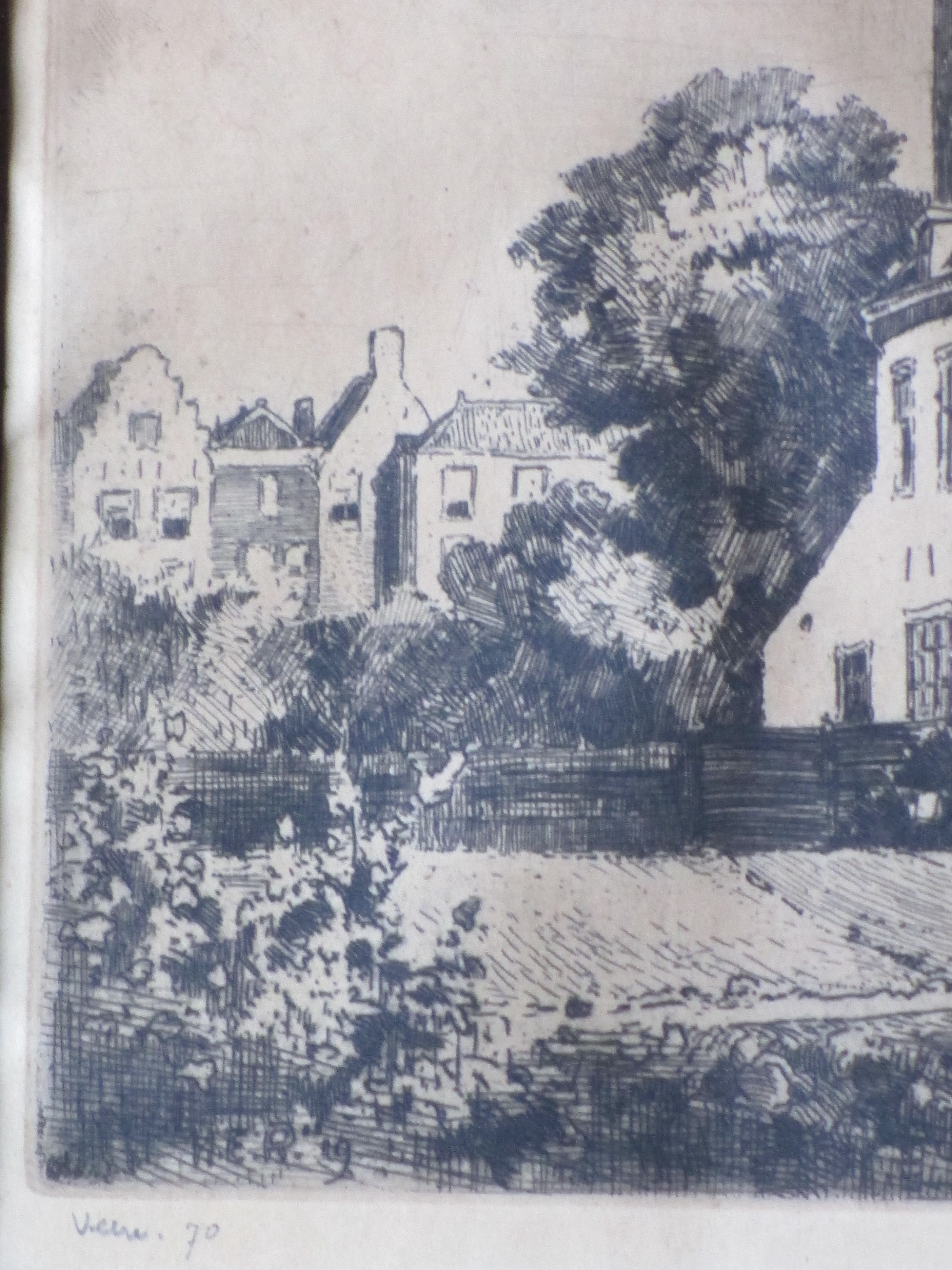 De ets is licht gebobbeld doordat hij strak in het passepartout zit.Na een uitname en wasbeurt is dit verholpen.