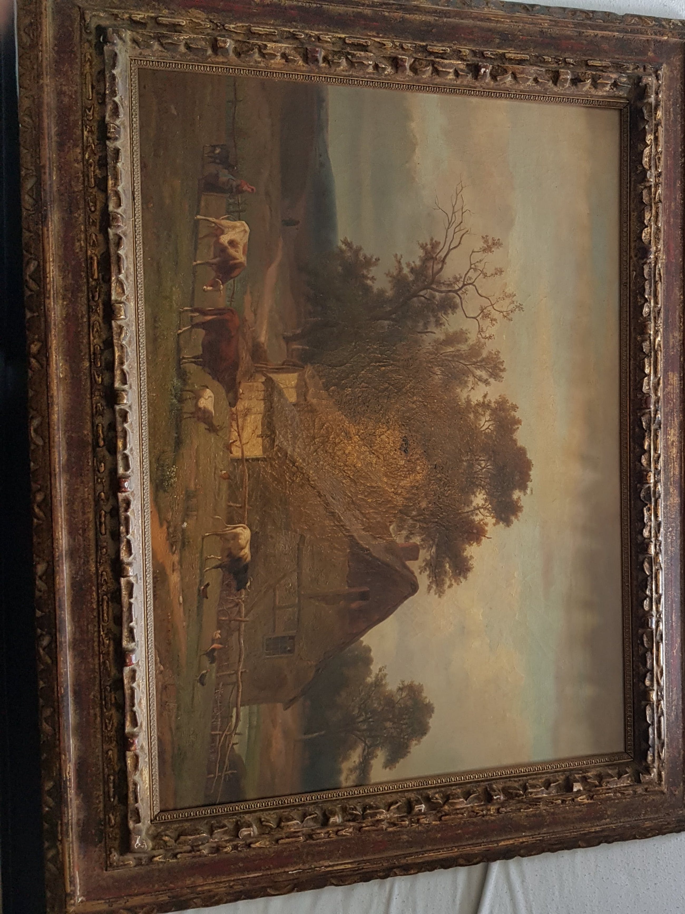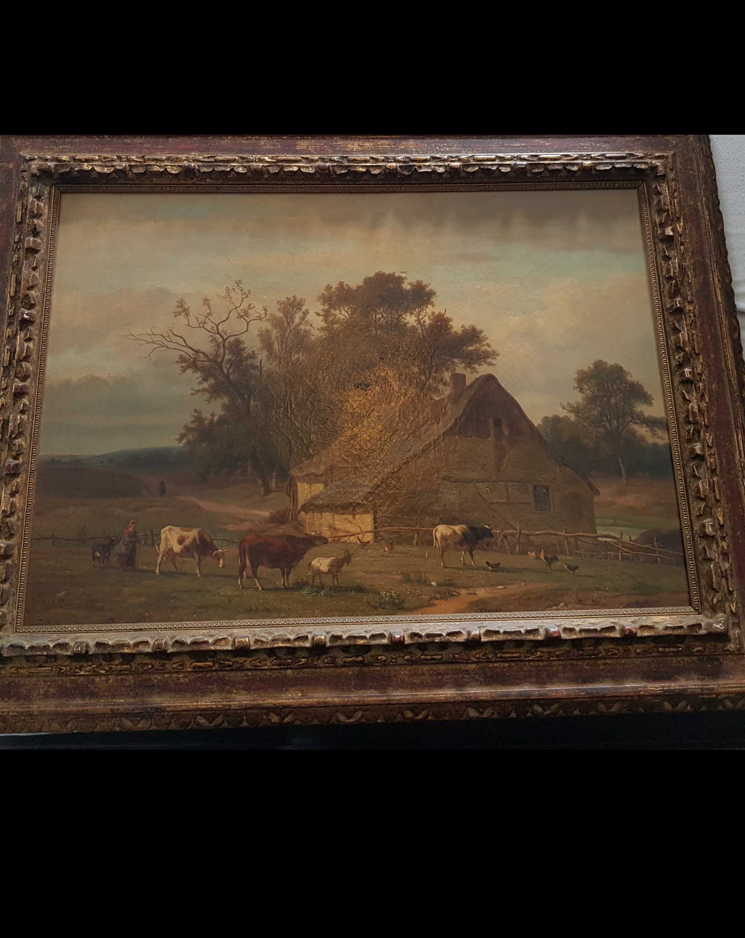 Hendrikus van de sande bakhuyzen 1795-1860 Een herderin met koeien . Gesigneerd l.o