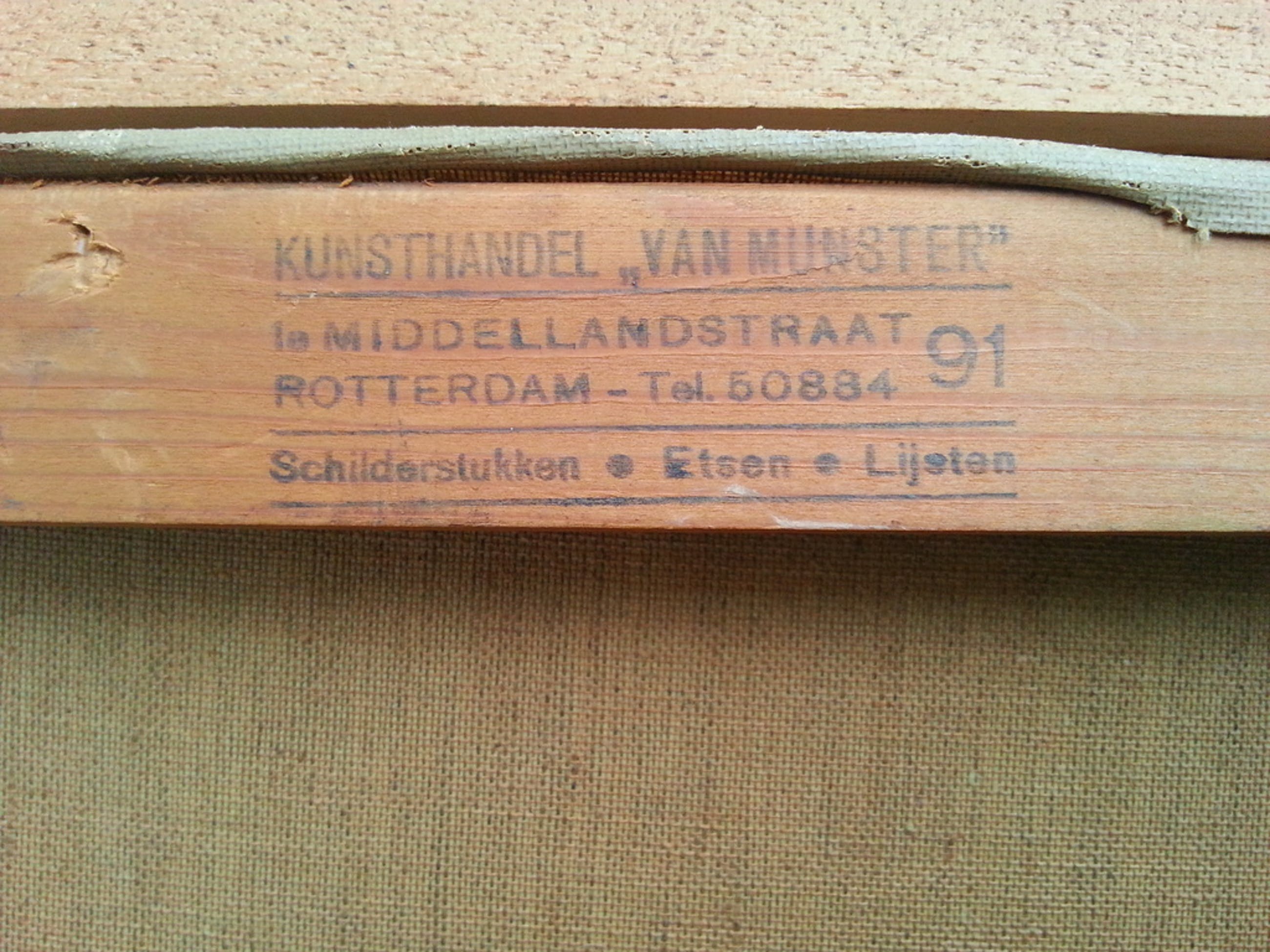 Oud Schilderij: Hendrik van Langen. (1874-1964) Olieverf op Linnen. Voorstelling: Echtpaar voor de open haard. (Interieur) Zowel het doek als de lijst verkeert in perfecte staat. Gesigneerd rechtsonder: H. van Langen. (zie foto 3) Afkomstig: Kunsthandel van Munster, Rotterdam. (zie foto 4) afm totaal: 61 cm bij 82 cm. afm doek: 48.5 cm bij 68.5 cm. Het schilderij kan wegens grote afmeting alleen opgehaald worden. (Locatie Rotterdam)