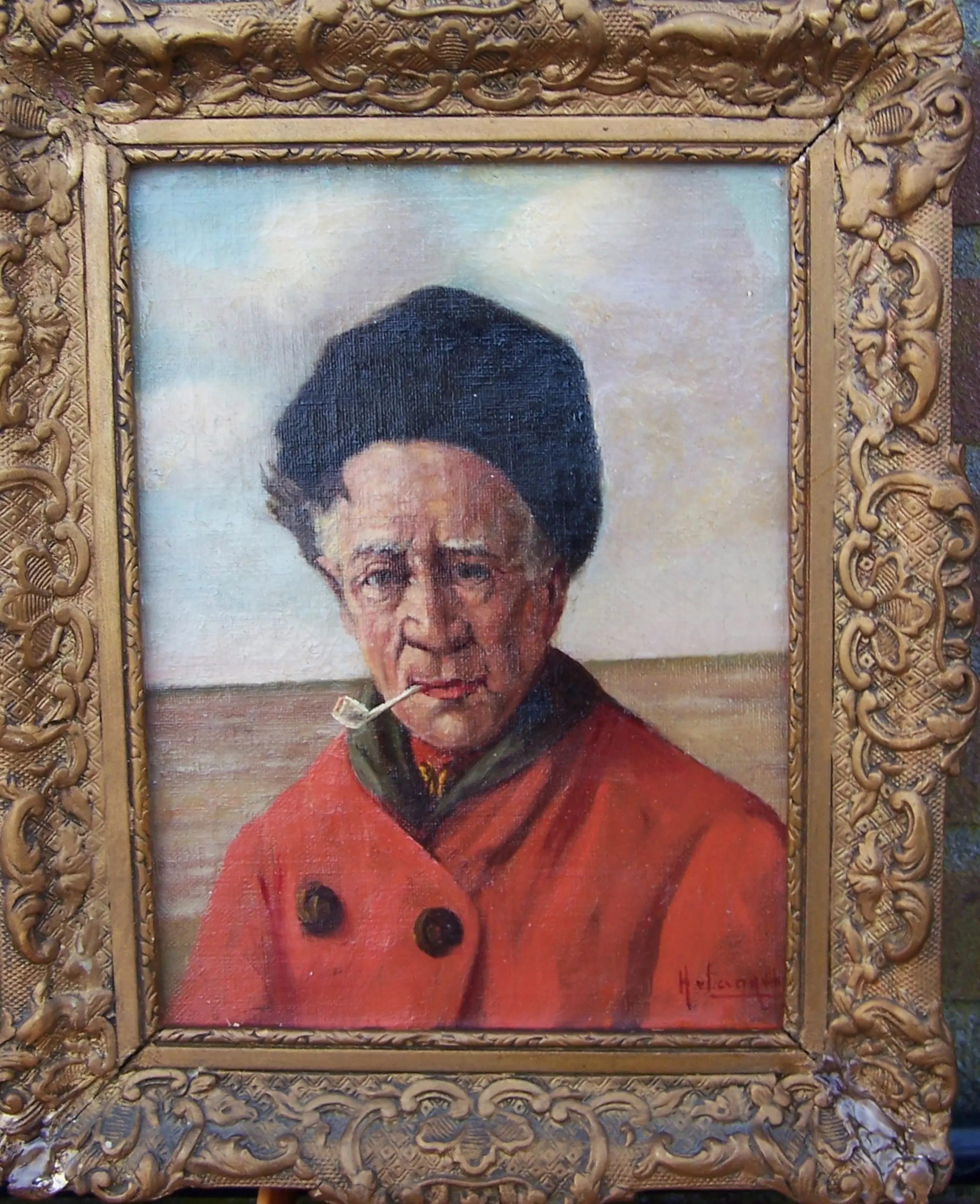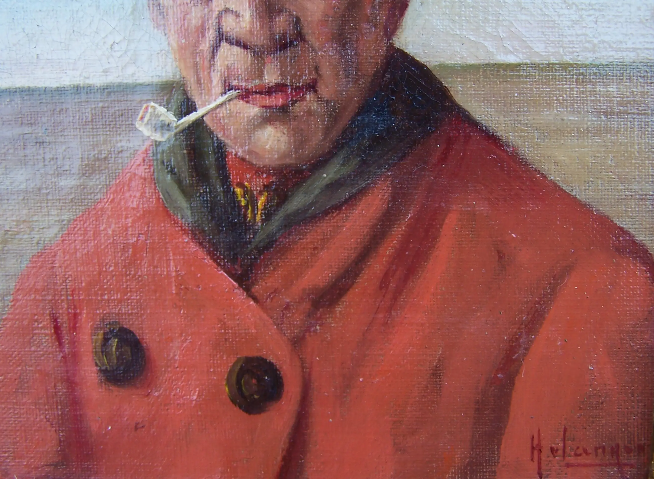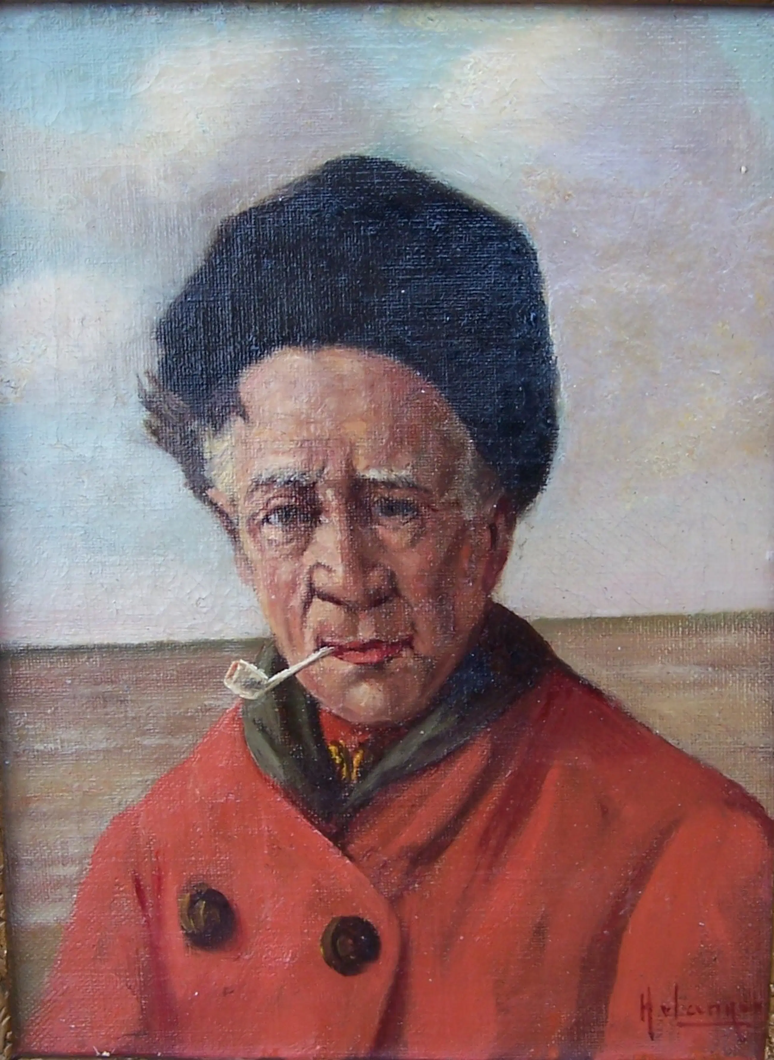 Karakteristiek portret van een Volendamse visser met ruige musts en een goudse pijp. Van Langen is bekend geworden door oa zijn fraaie Volendammer/Edammer portretten.