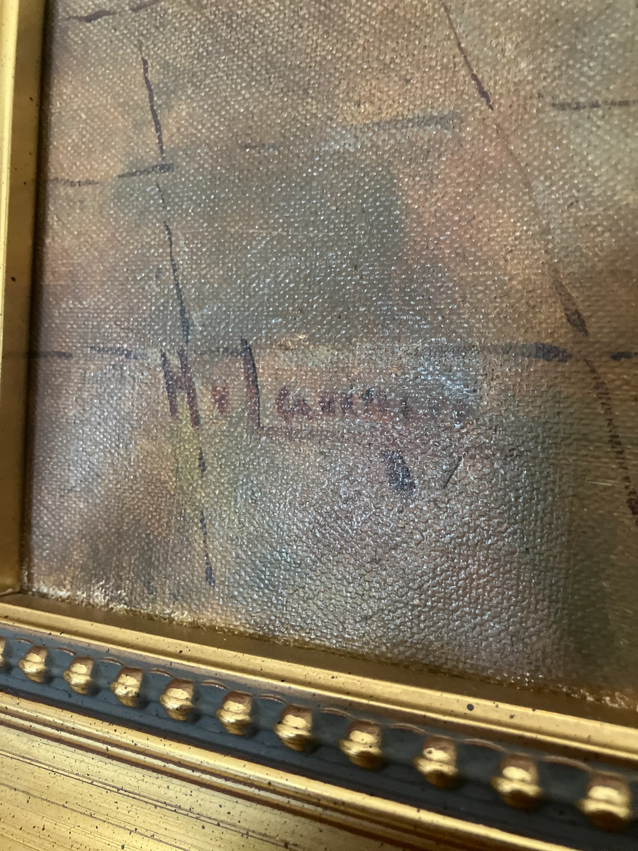 Vrouw bij schouw maakt groenten schoon Linksonder gesigneerd Olieverf en doek is inschatting heb ik geen verstand van