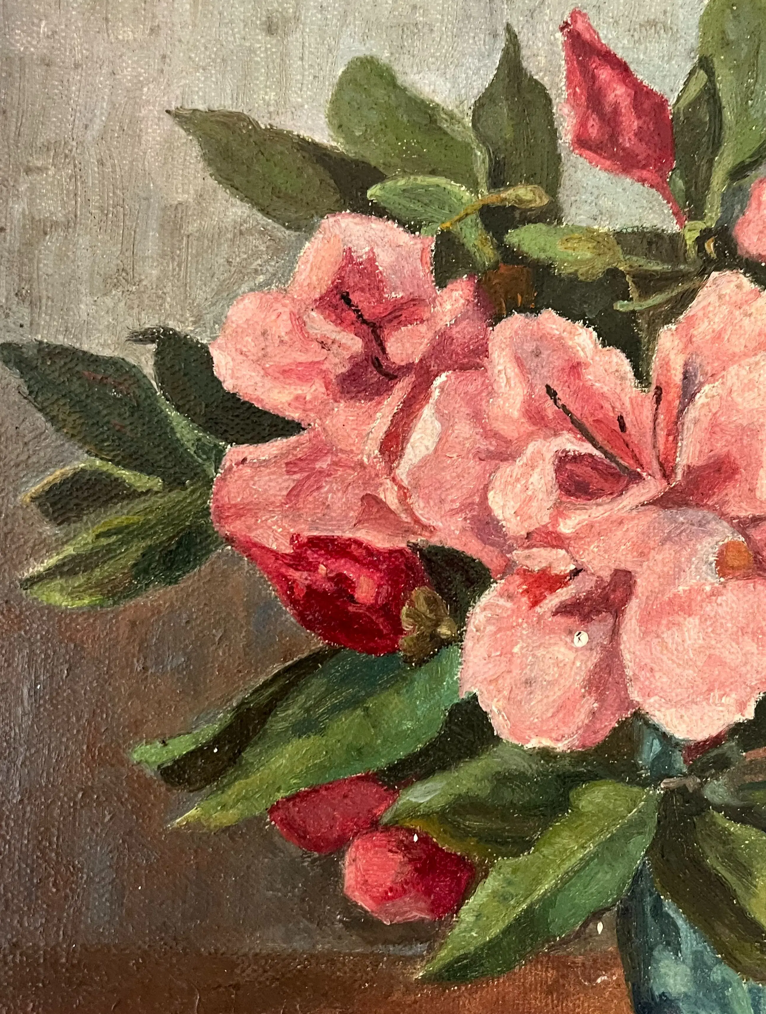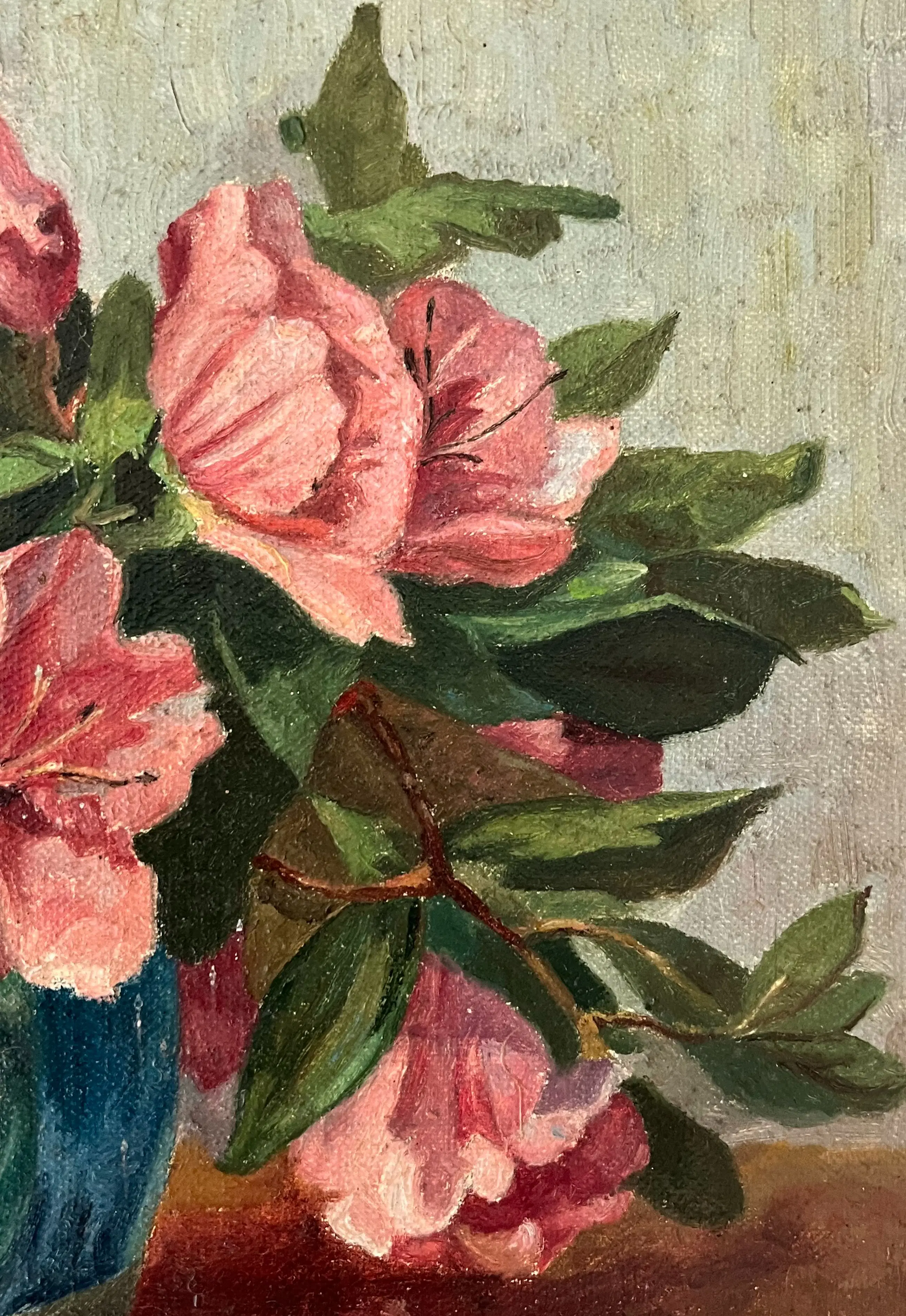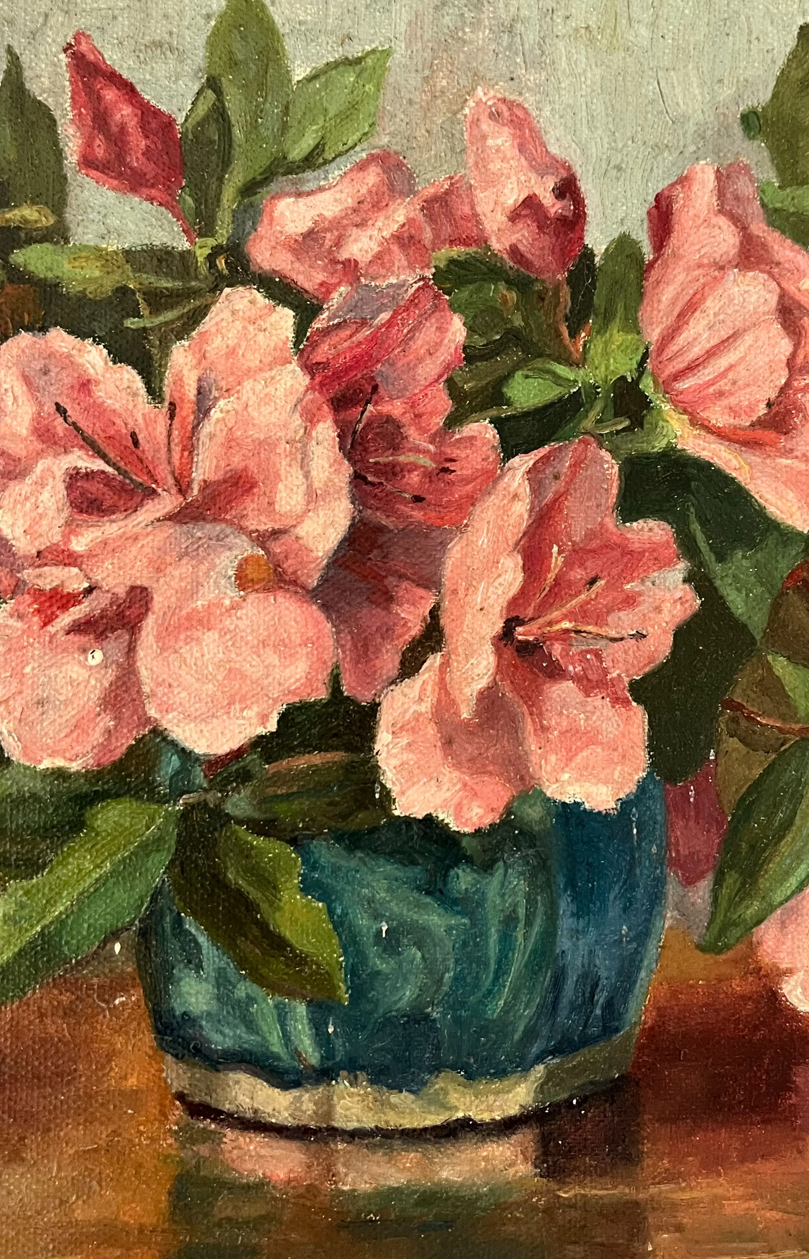 Hier gaat het om azalea's in een gemberpot (let ook op de mooie spiegeling in het tafelblad).