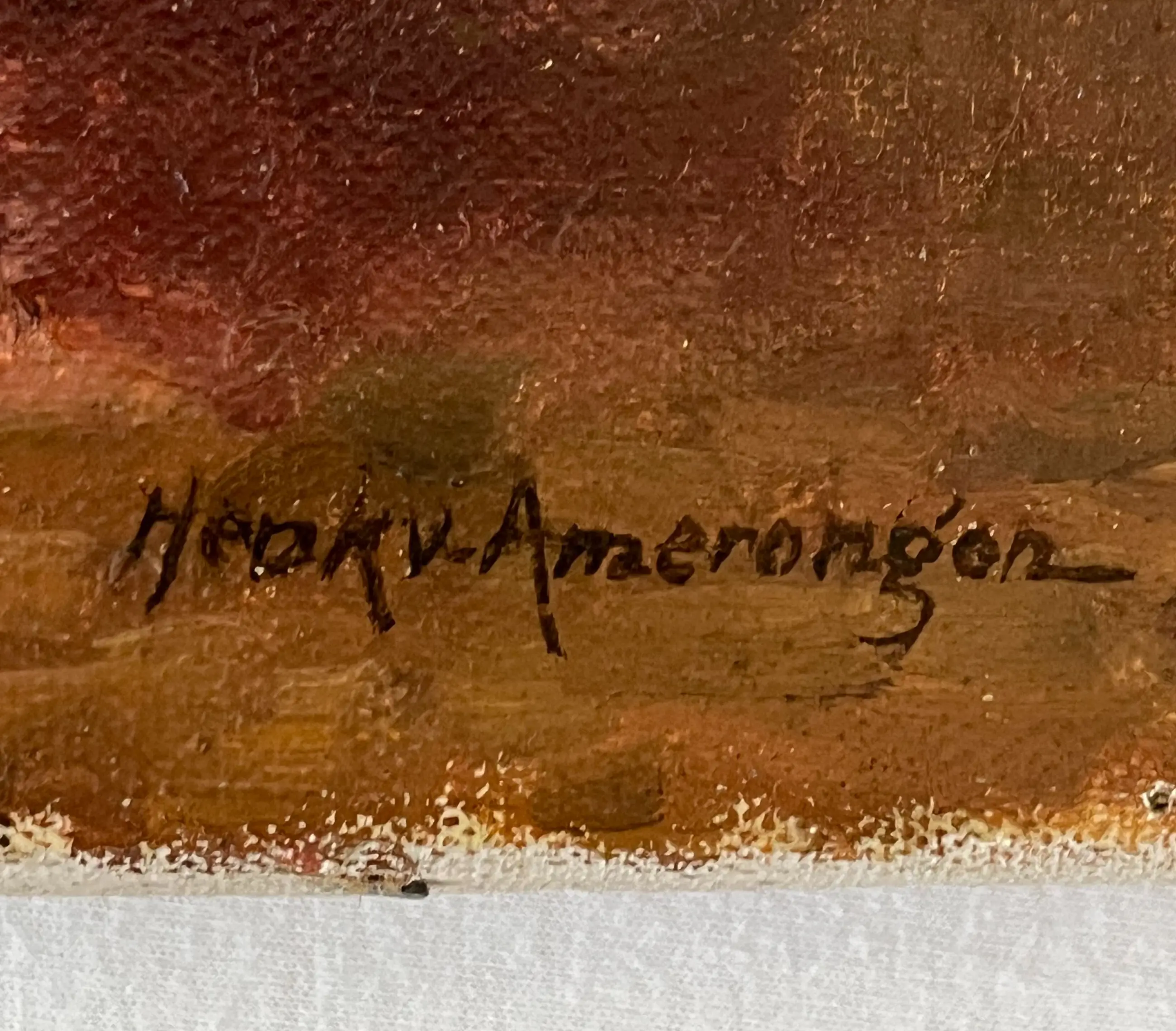 Henk Amerongen schilderde vooral stillevens en bloemstukken in een klassieke stijl, met gebruik van olieverf op doek. Zijn werk wordt gekenmerkt door traditionele composities en een realistische benadering. De schilderijen zijn meestal klein tot middelgroot van formaat en gesigneerd met volledige naam. Dit werk is gesigneerd met Henk v (!) Amerongen. De signatuur is verder identiek aan die met andere werken (vergelijk bv. zijn werk Zonnebloemen)