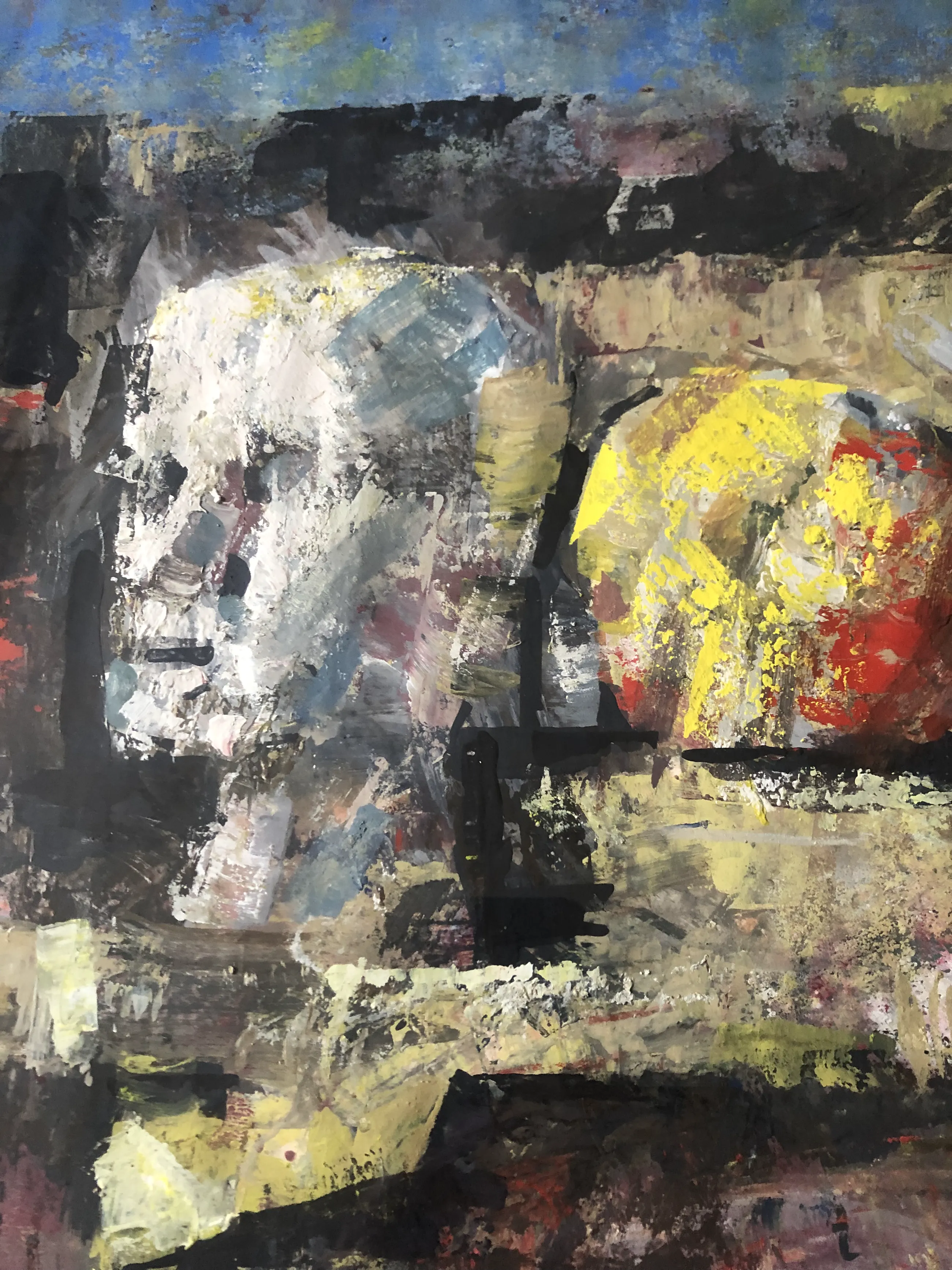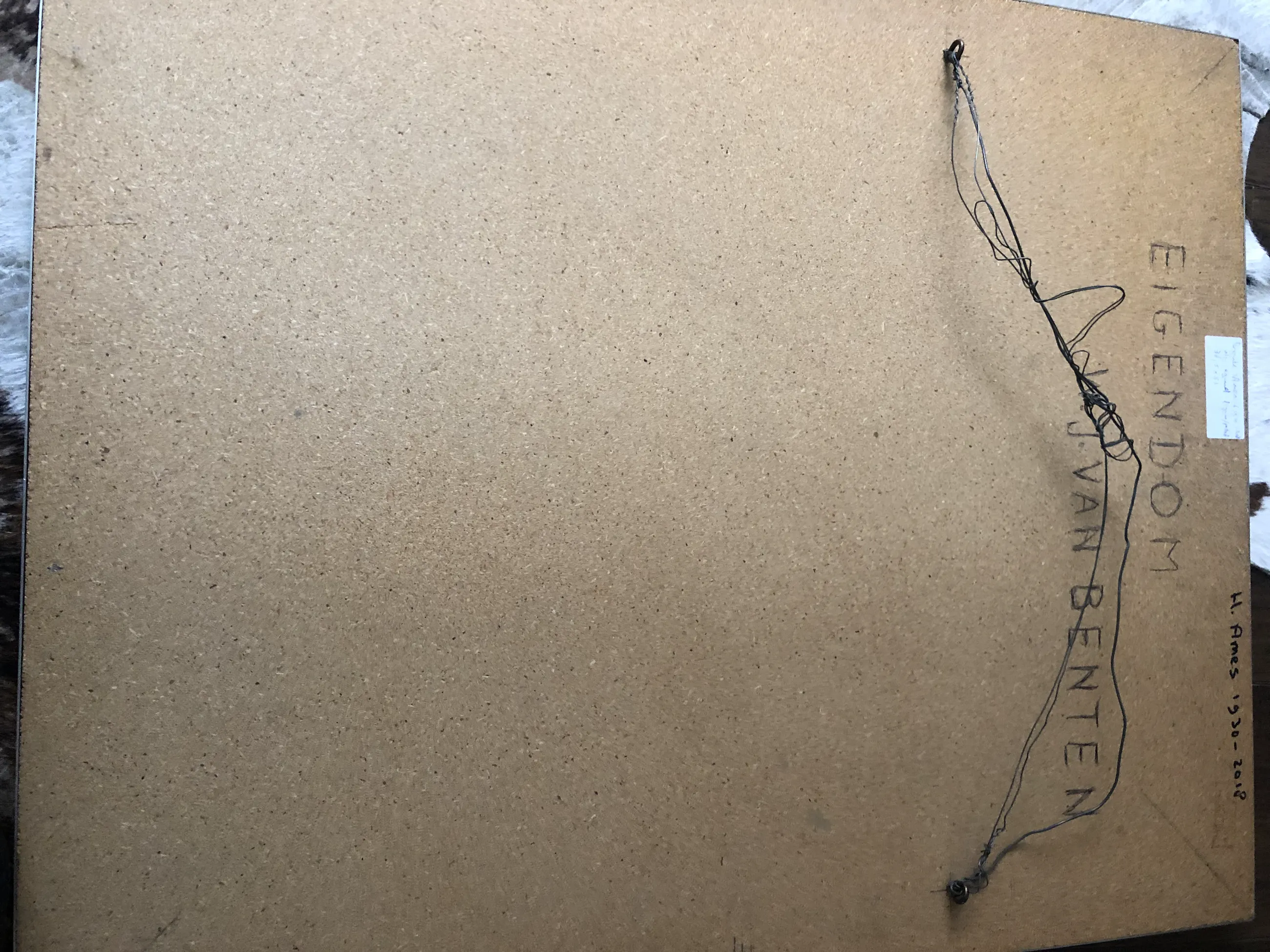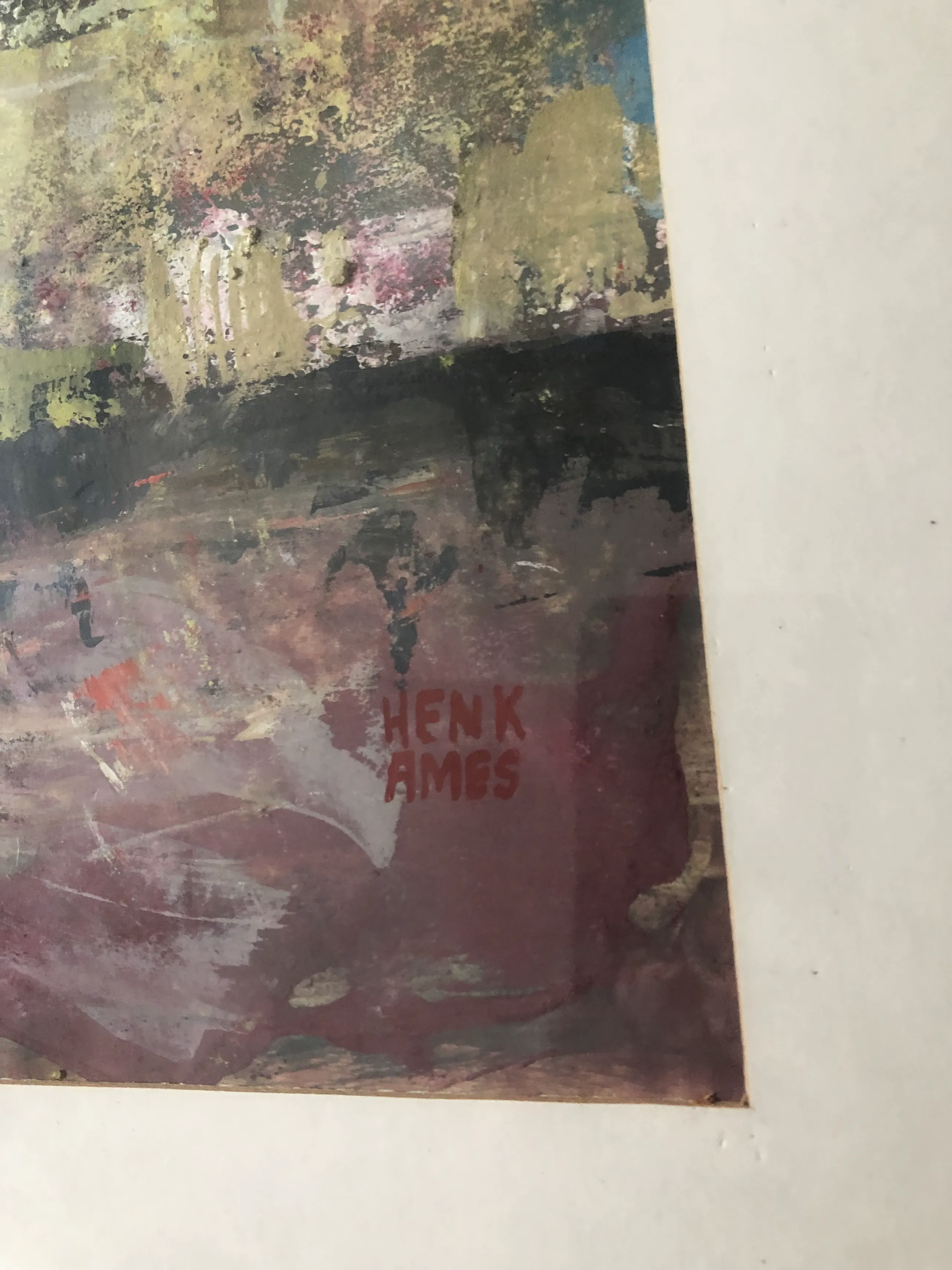 Prachtig abstract werk van Henk Ames Zware lijst Gemixte techniek olie en aquarel Afgesloten ingelijst