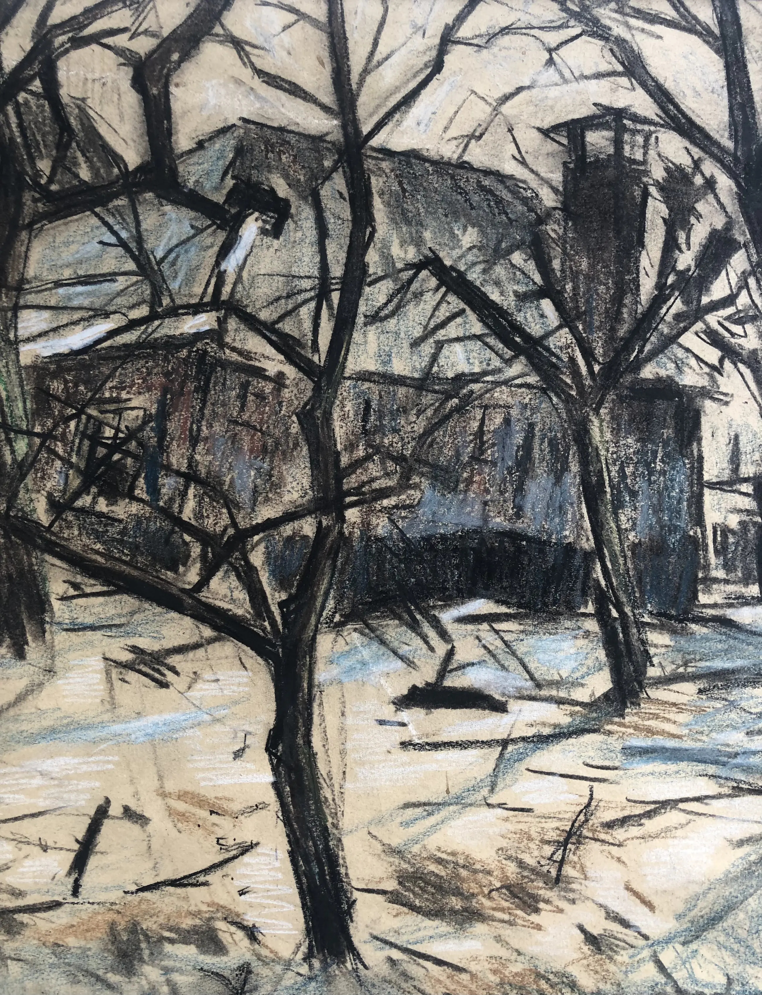 Prachtig vlot getekend impressionistisch werk uit de jaren 50 van kunstenaar en Artibus leraar Henk Bellaard. Het werk is gevat in een nette witte lijst en passe-partout.