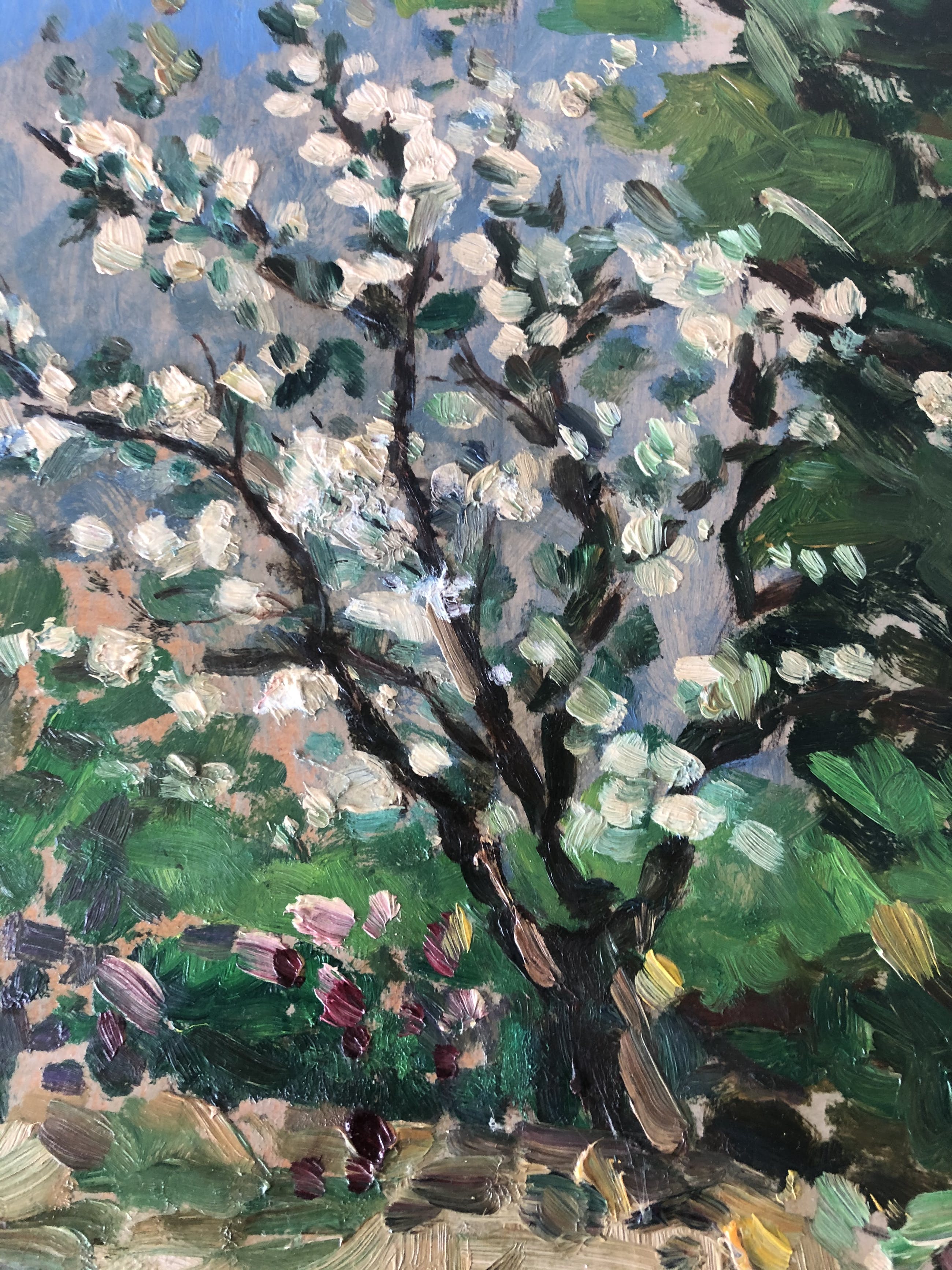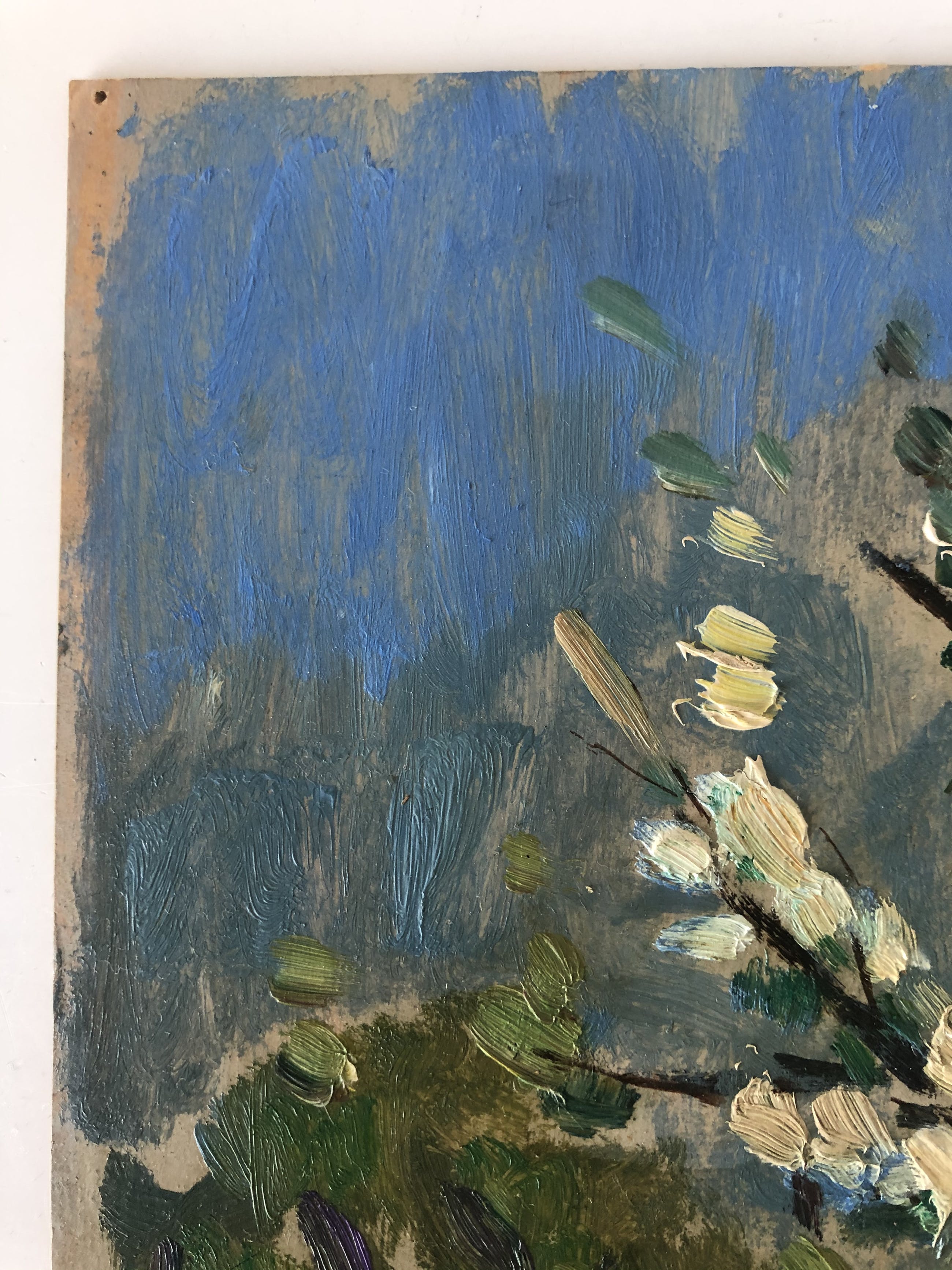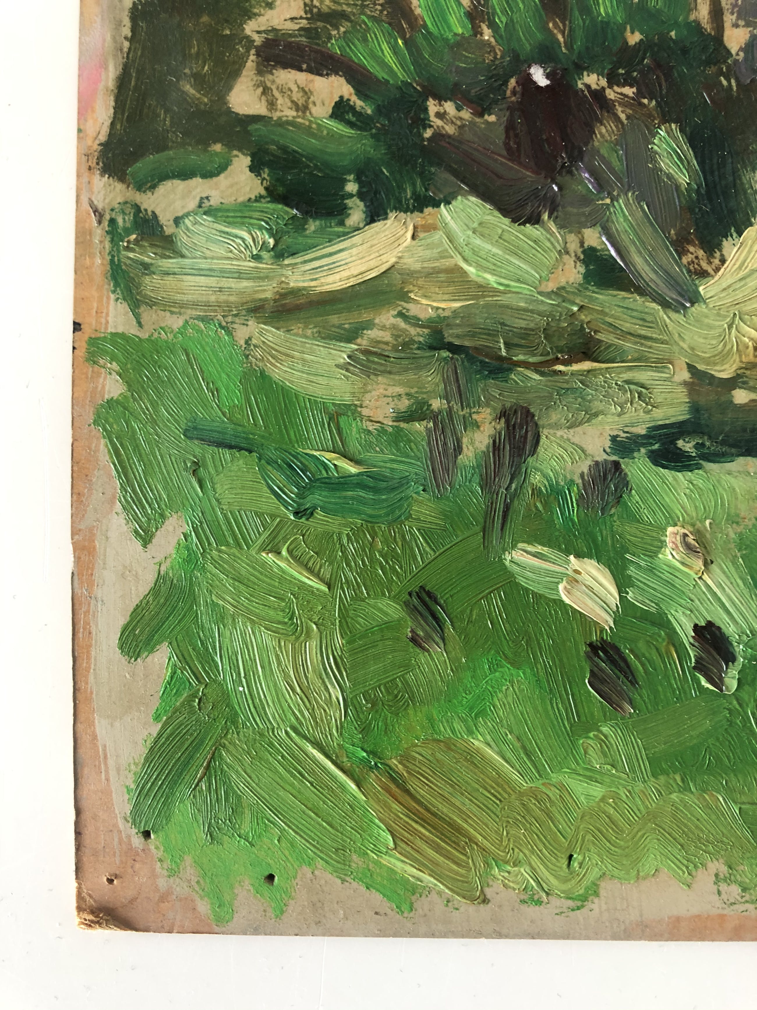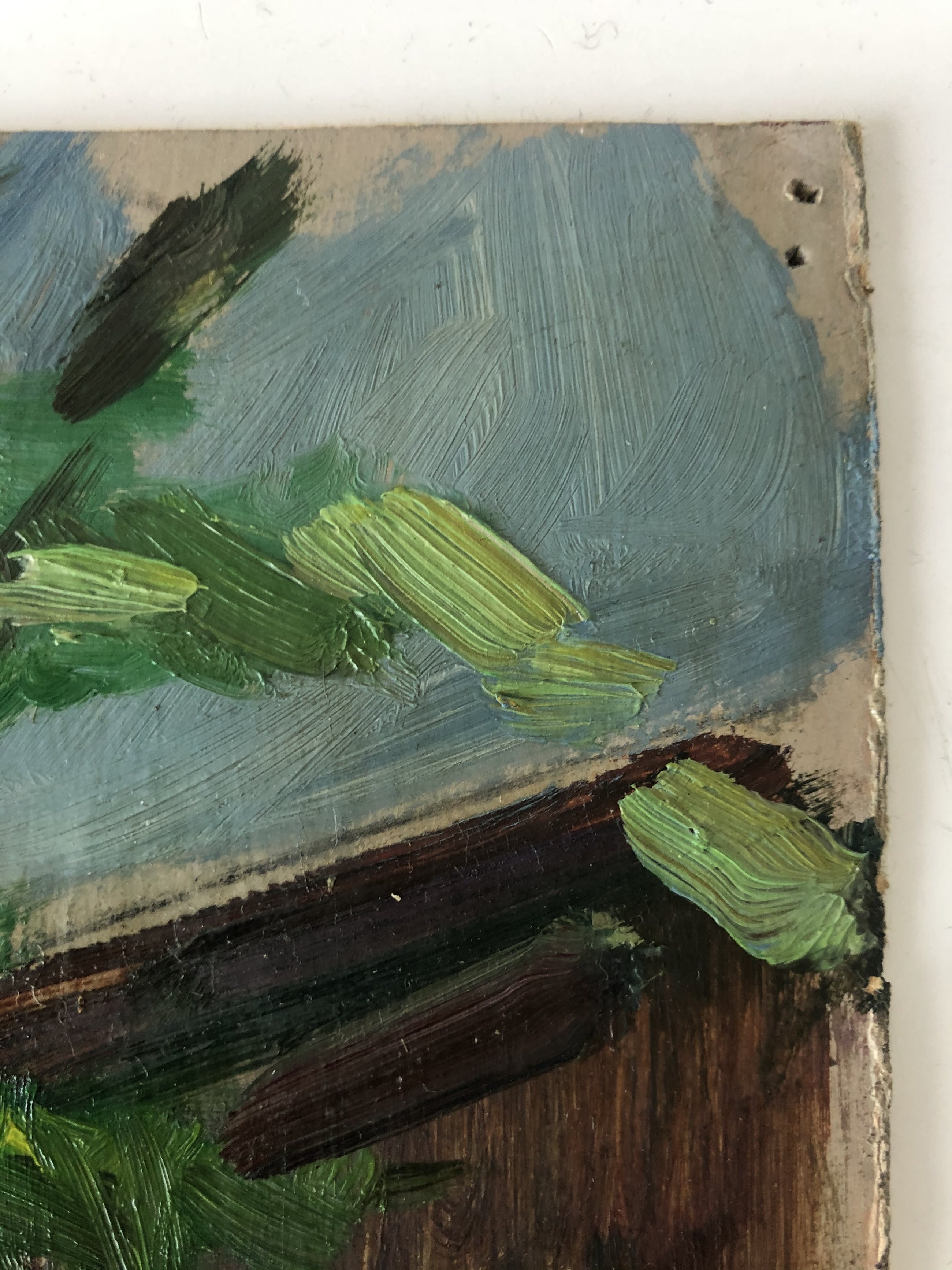 Landschap van kunstenaar en Artibus leraar Henk Bellaard. Vlotte stijl en dik in de verf. Gesigneerd als Bellard, handschrift komt overeen met ander werk van de kunstenaar en de provenance is bekend.