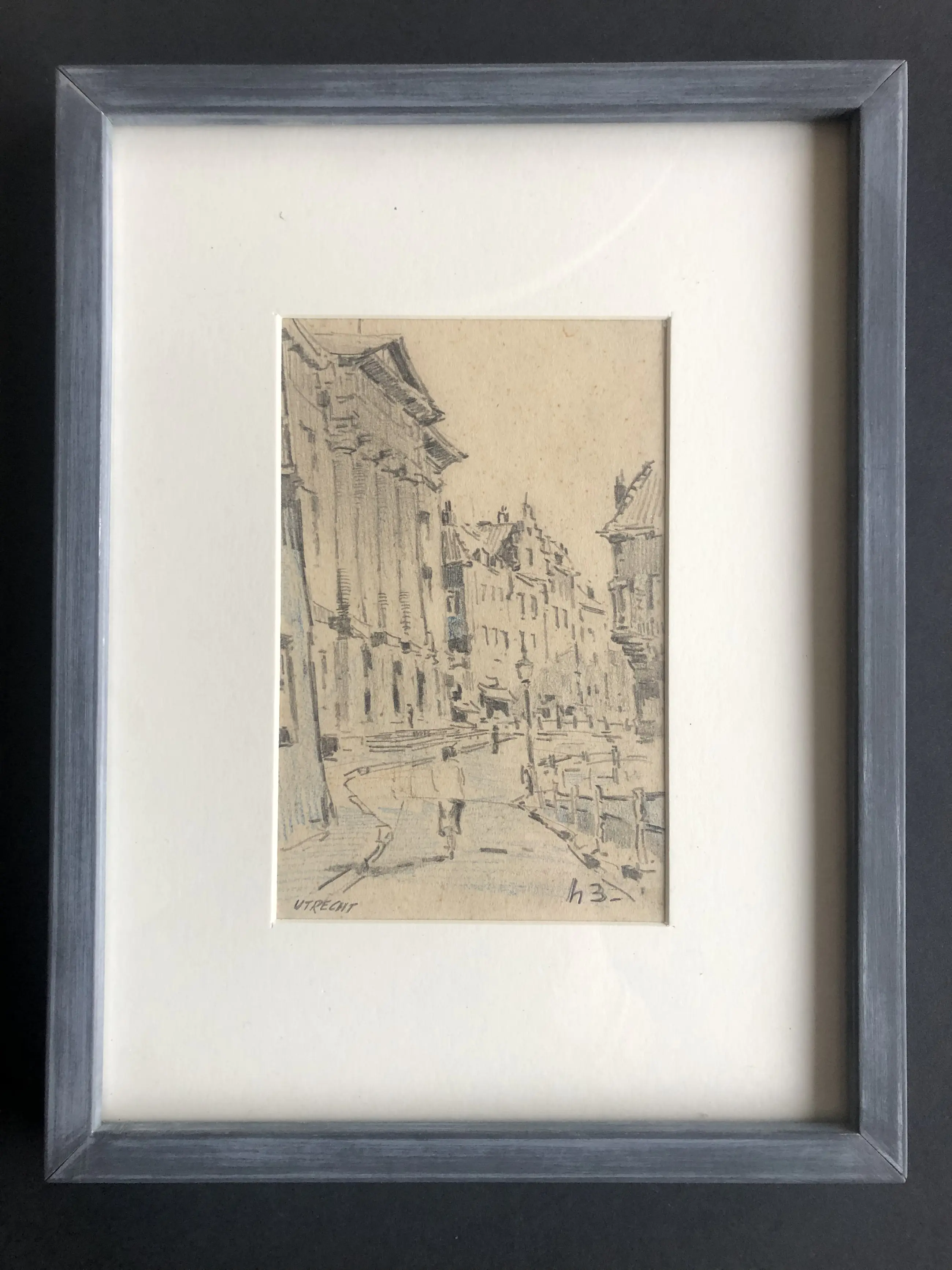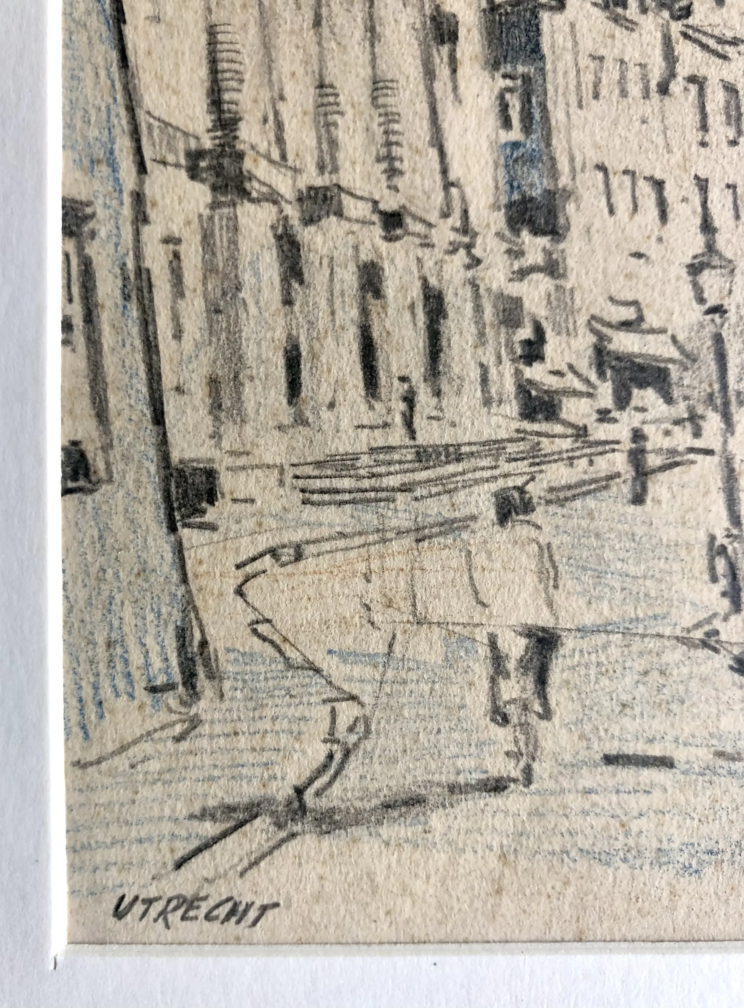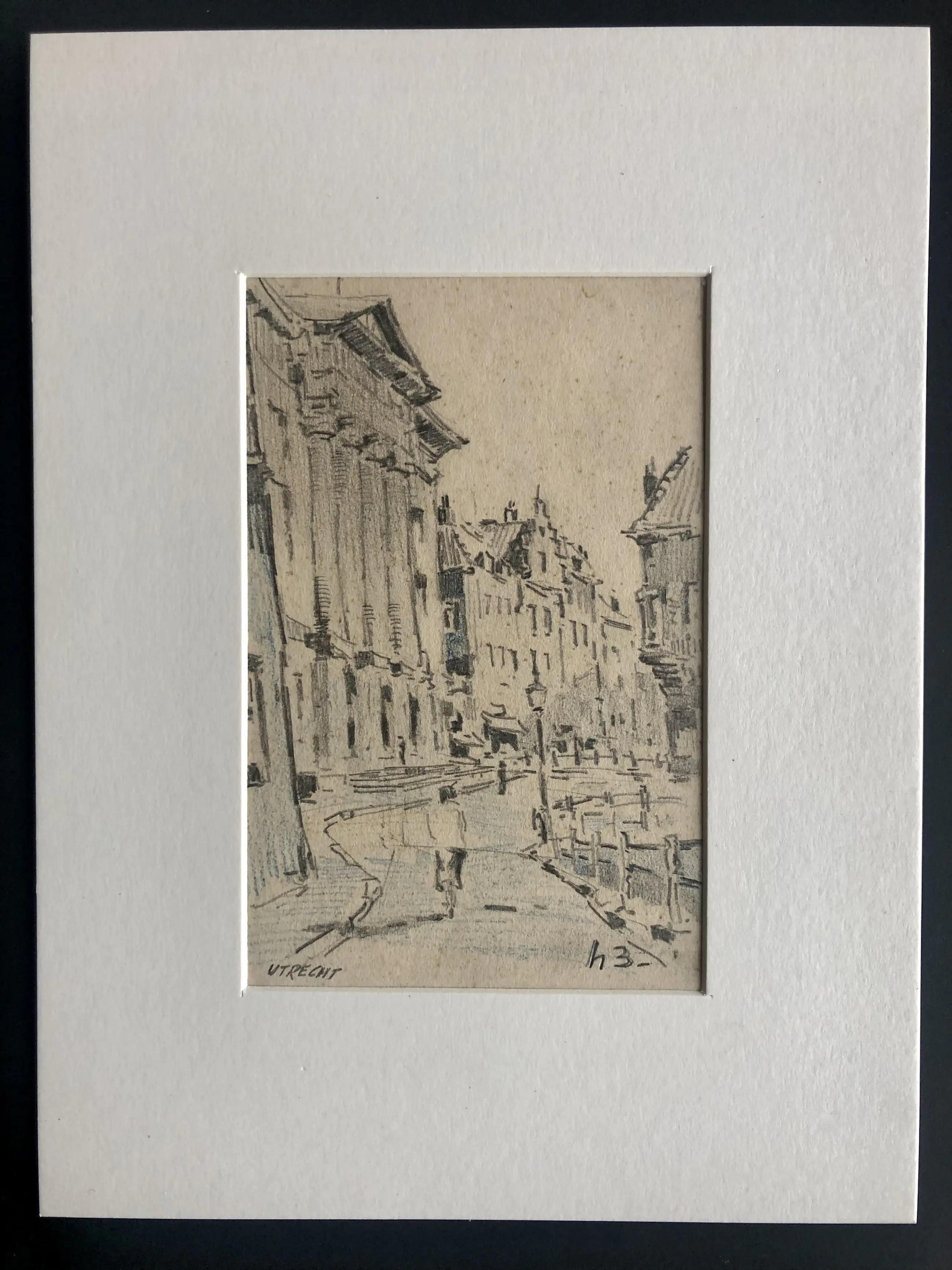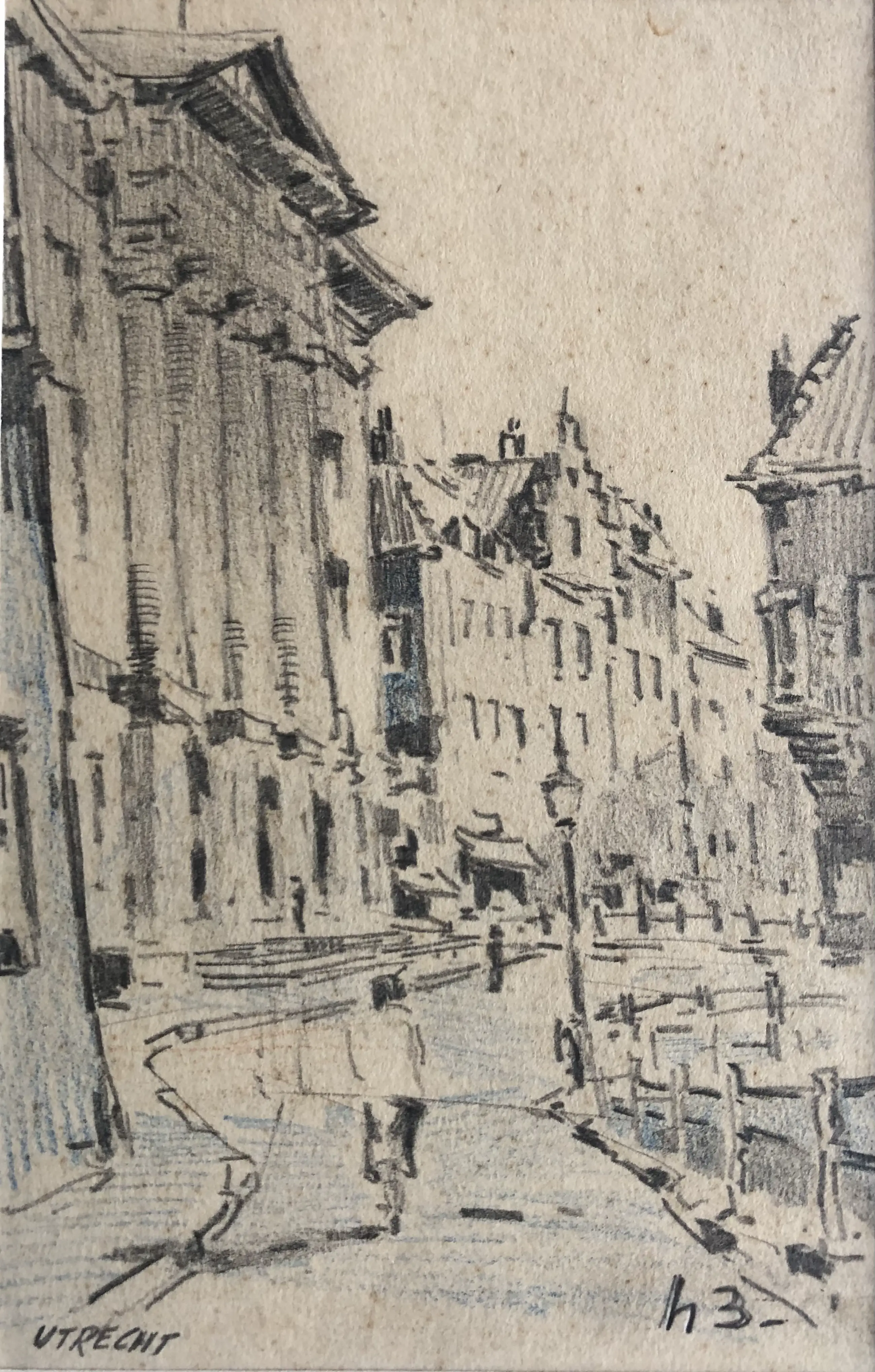 Stadhuis van Utrecht door kunstenaar en Artibus leraar Henk Bellaard. In vlotte stijl getekend.