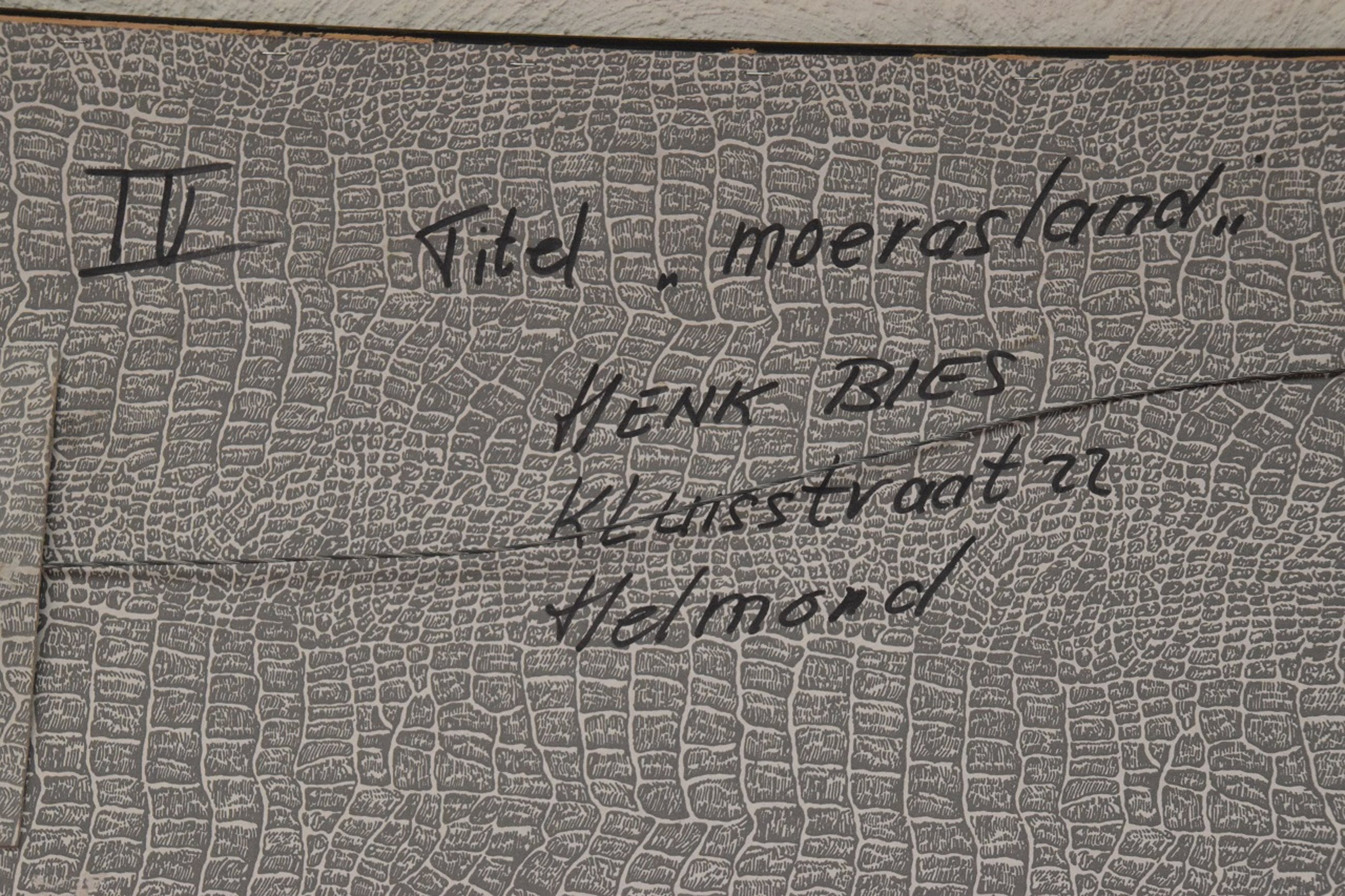 | Kunstenaar is de zoon van Marinus Bies, en ontving in 1951 de koninklijke subsidie voor schilderkunst, tegenwoordig de koninklijke prijs voor schilderkunst. Het werk is beschadigd op enkele plekken linksonder. Vermoedelijk is het werk niet lang na deze beschadiging opnieuw ingelijst. Henk Bies heeft in de jaren '60 veel gedaan voor het kunstklimaat in Helmond, o.a. als adviseur voor de gemeente en beleidsvoerder voor de stichting Beeldende Kunst aldaar. | |