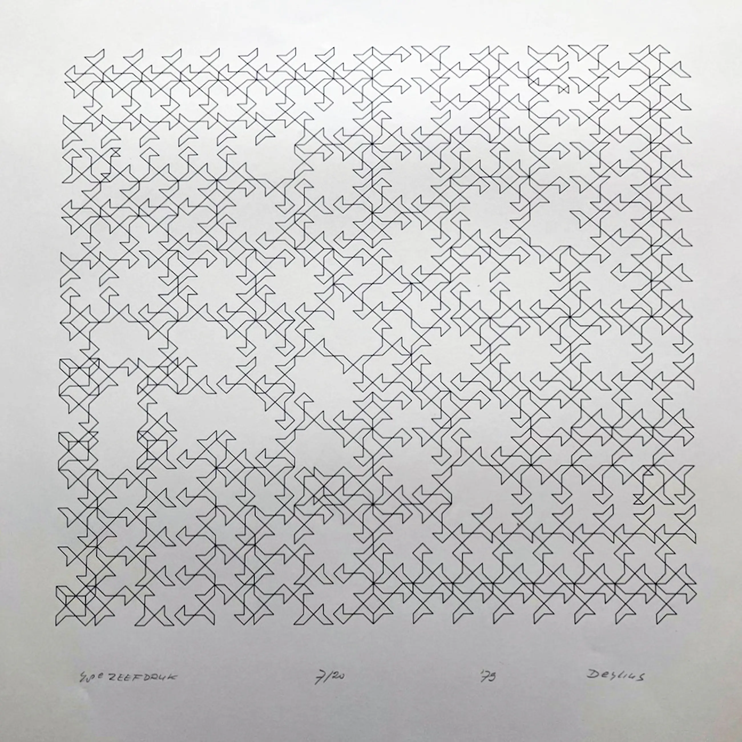 48e Zeefdruk van Henk Deylius (1920-1994), pionier van de computerkunst. Afm. papier 65 x 50 cm. Gesigneerd met potlood, gedateerd 1979, genummerd 7/20.