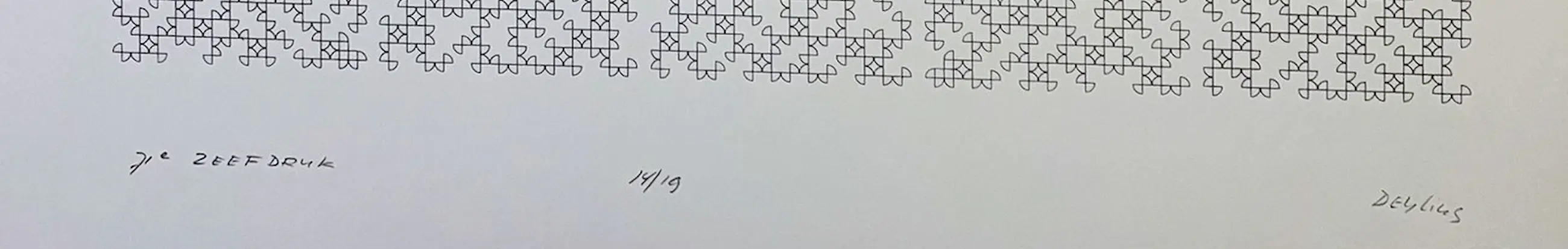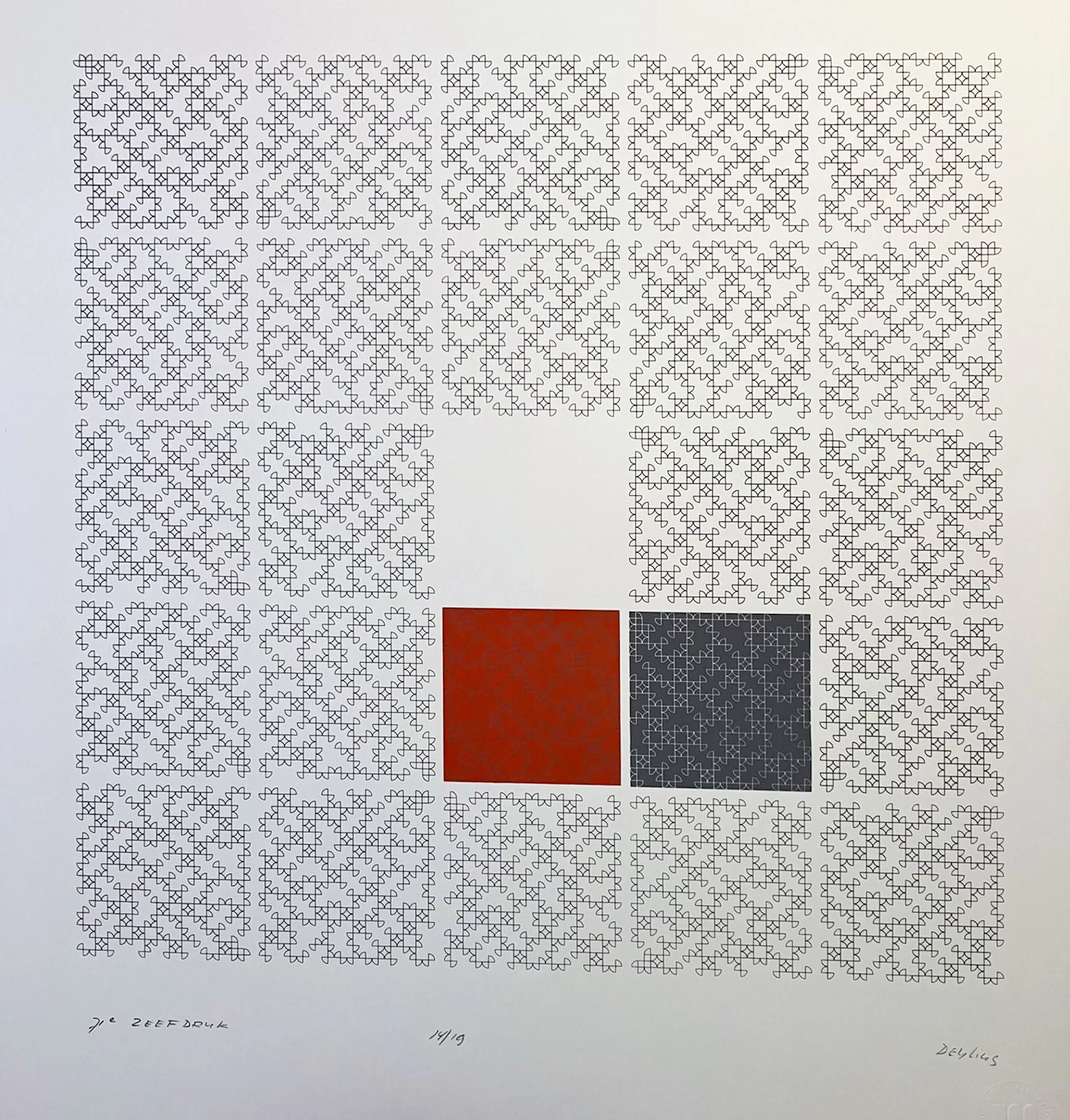 71e Zeefdruk van Henk Deylius (1920-1994), pionier van de computerkunst. Afm. papier 65 x 50 cm. Gesigneerd met potlood, gedateerd 1981, genummerd 14/19.
