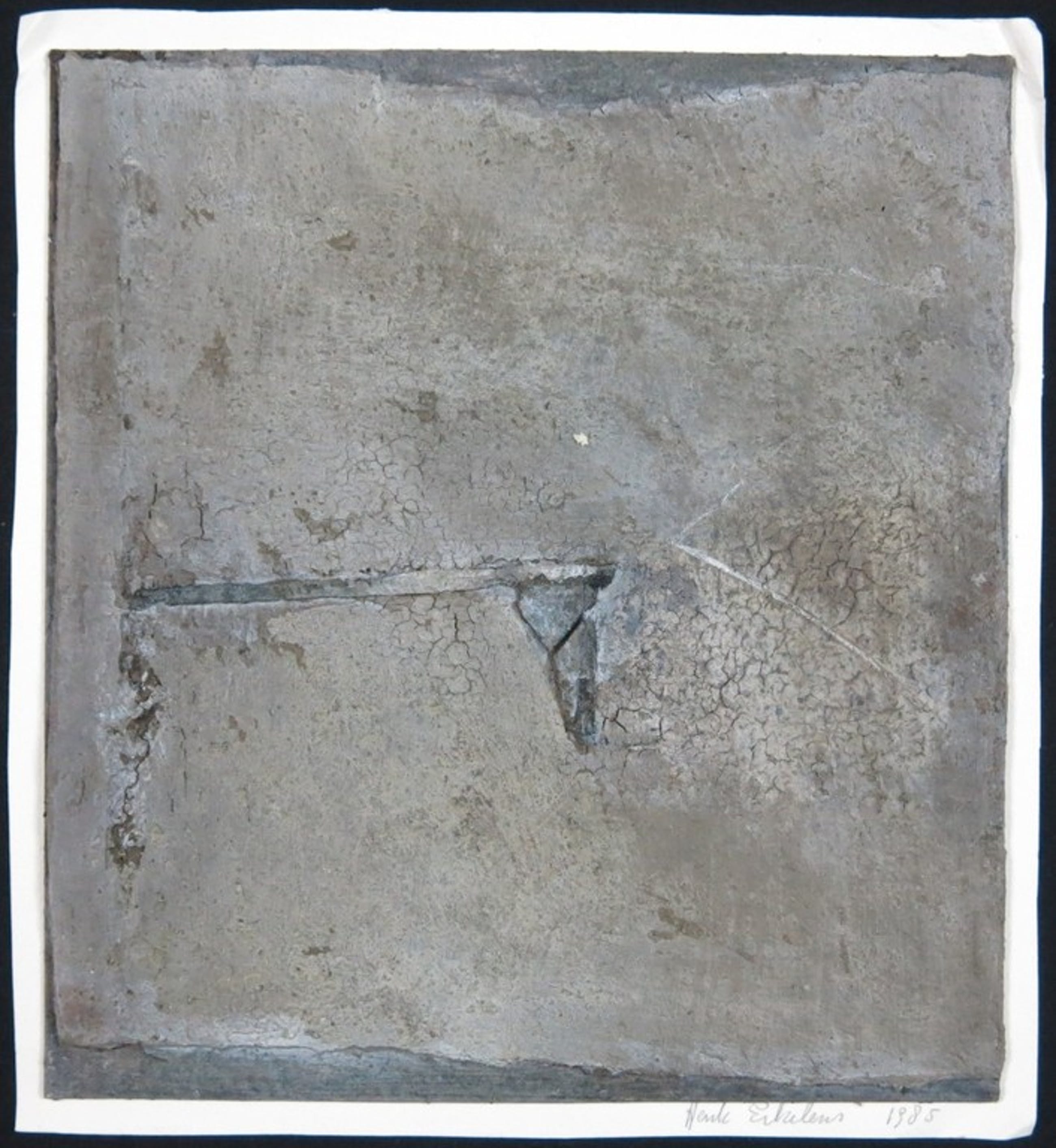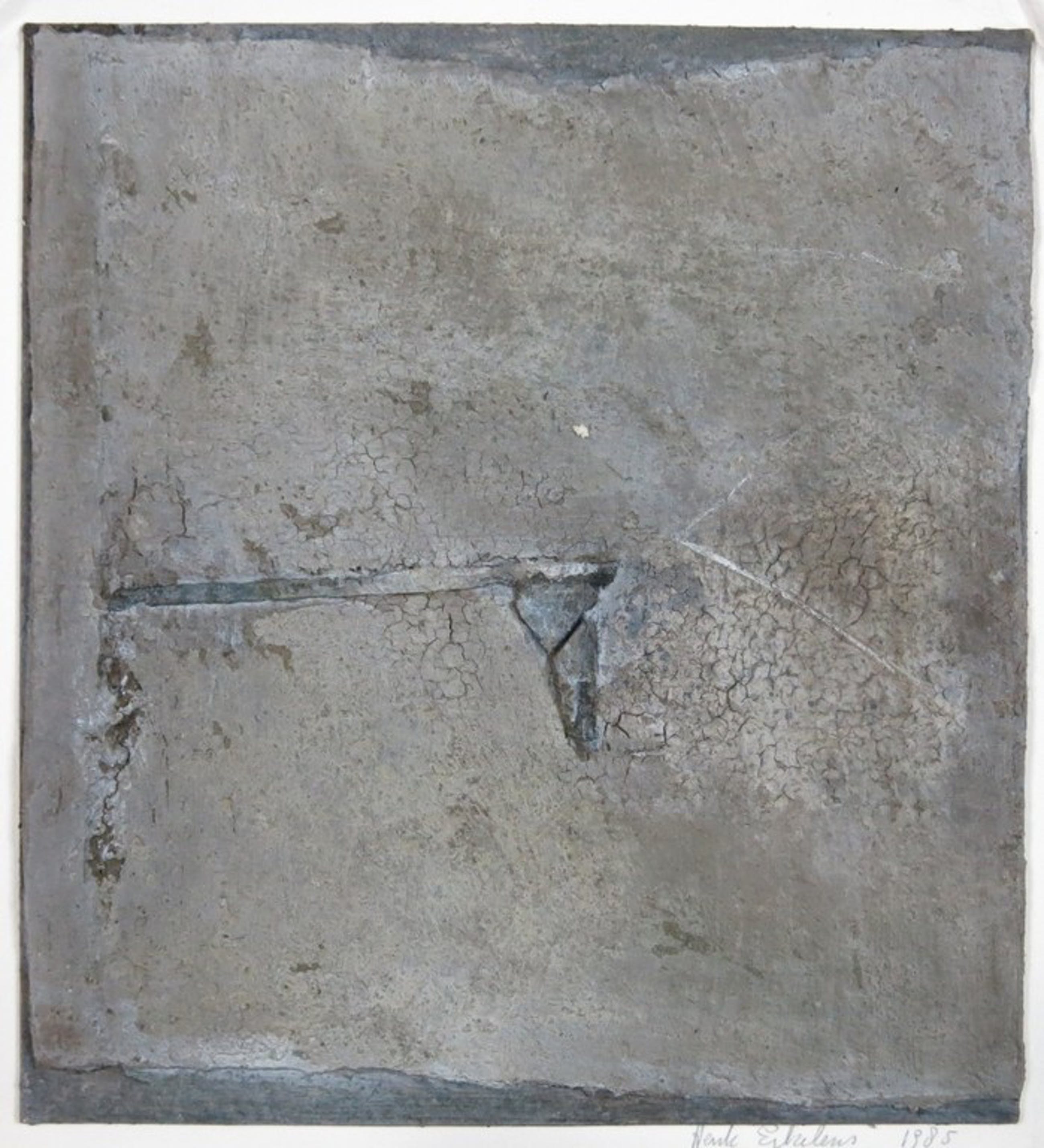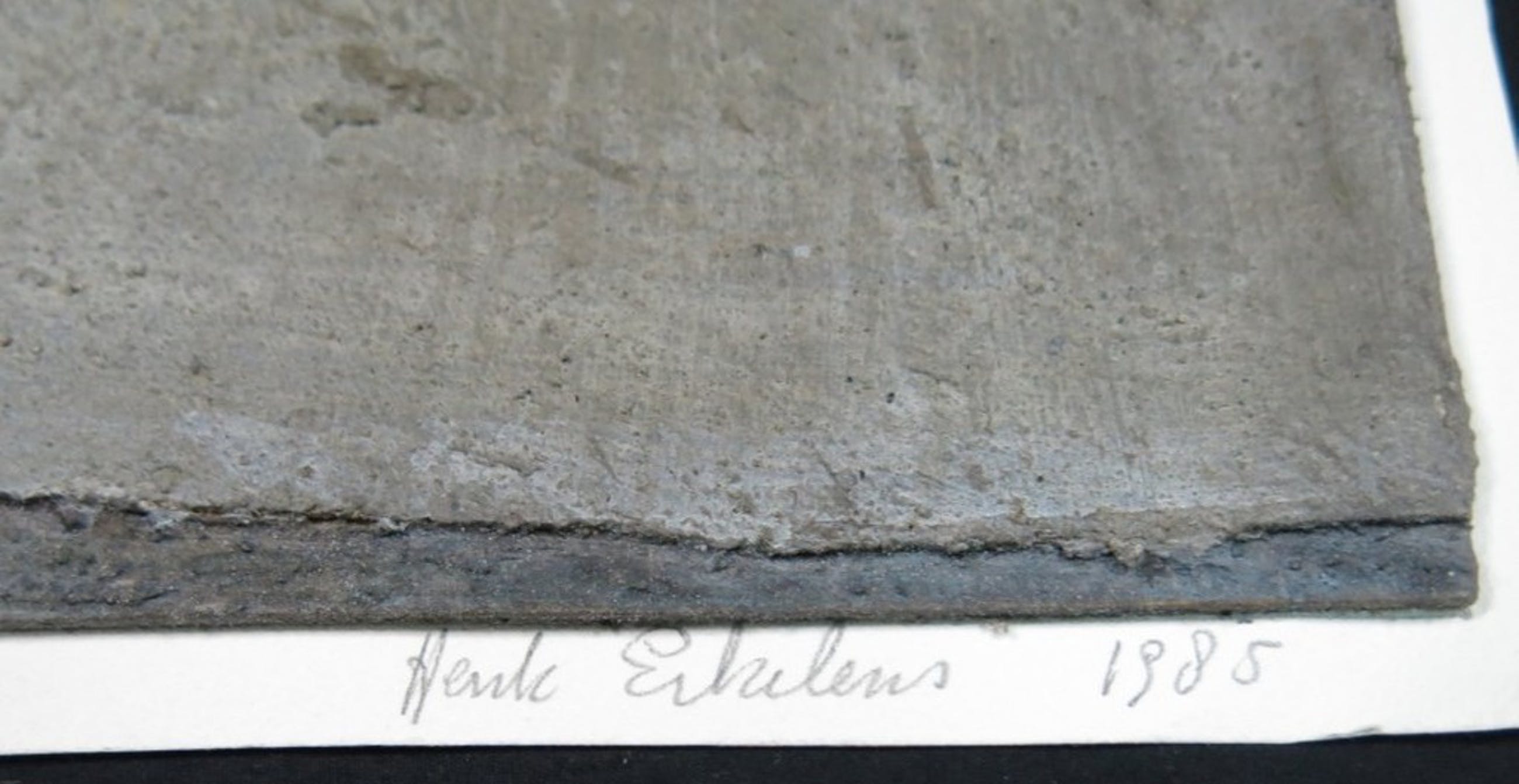 Materiaal: Gemengde techniek (o.a. Acryl, cement) op paneel, bevestigd op onderblad