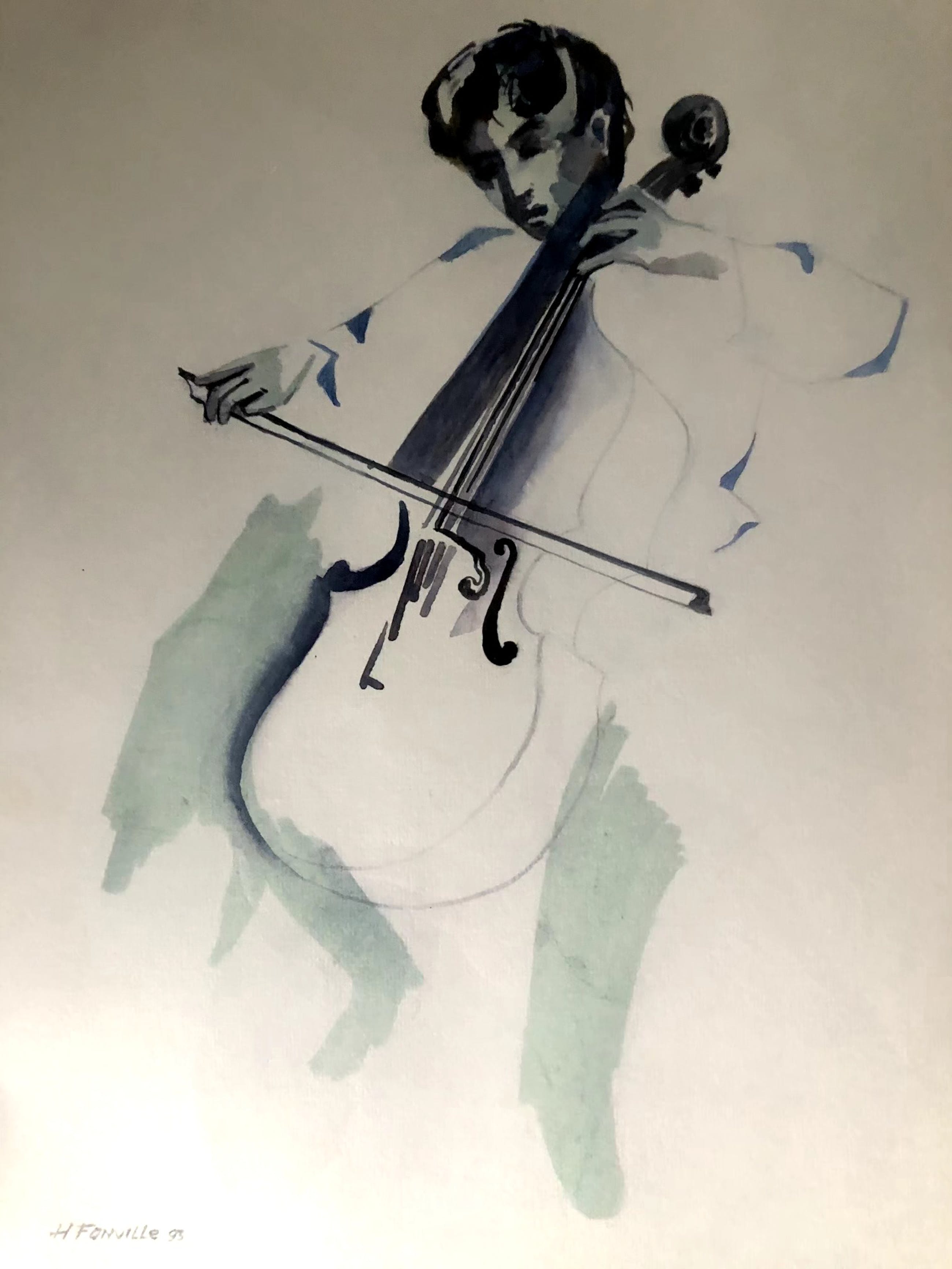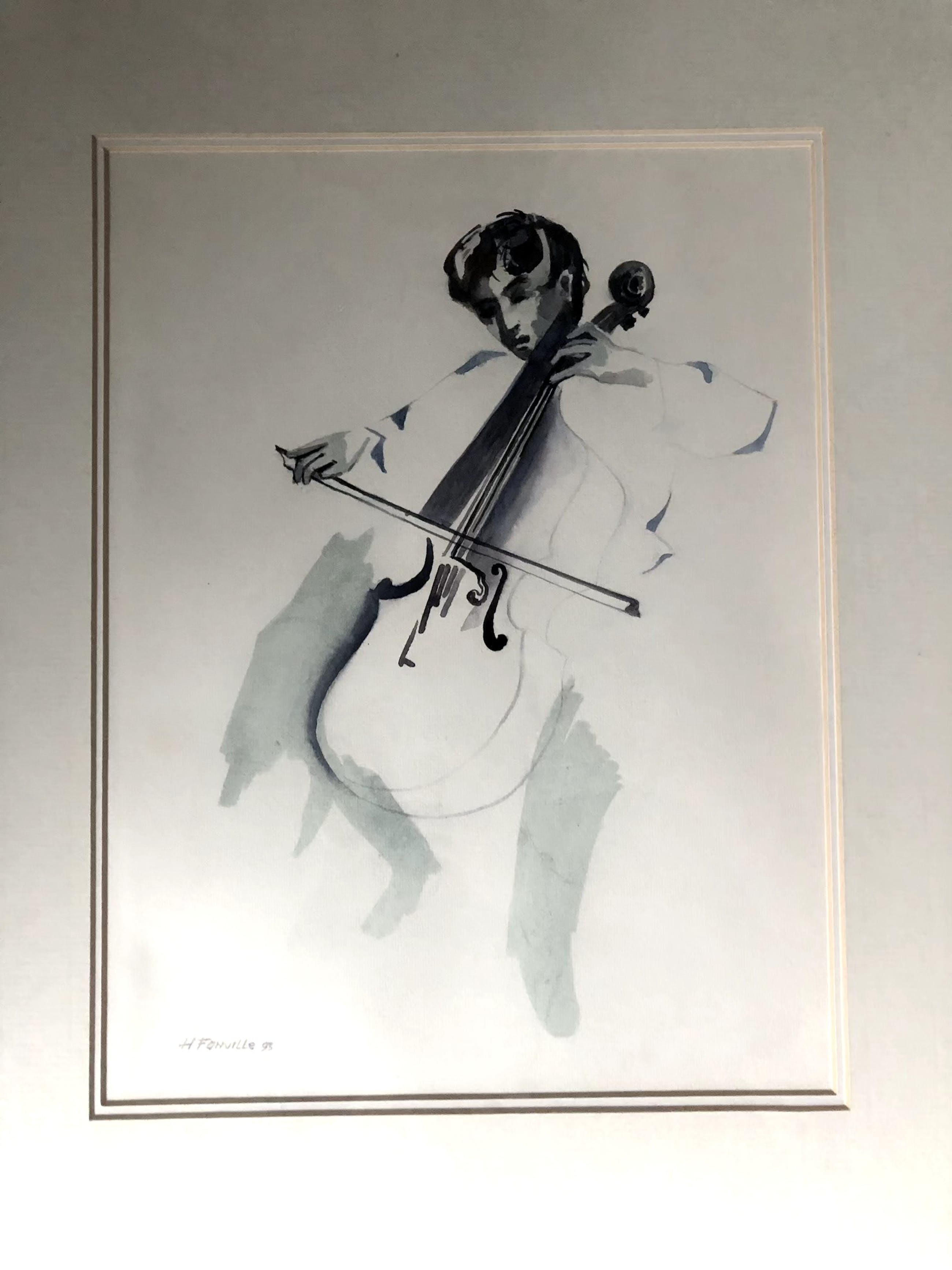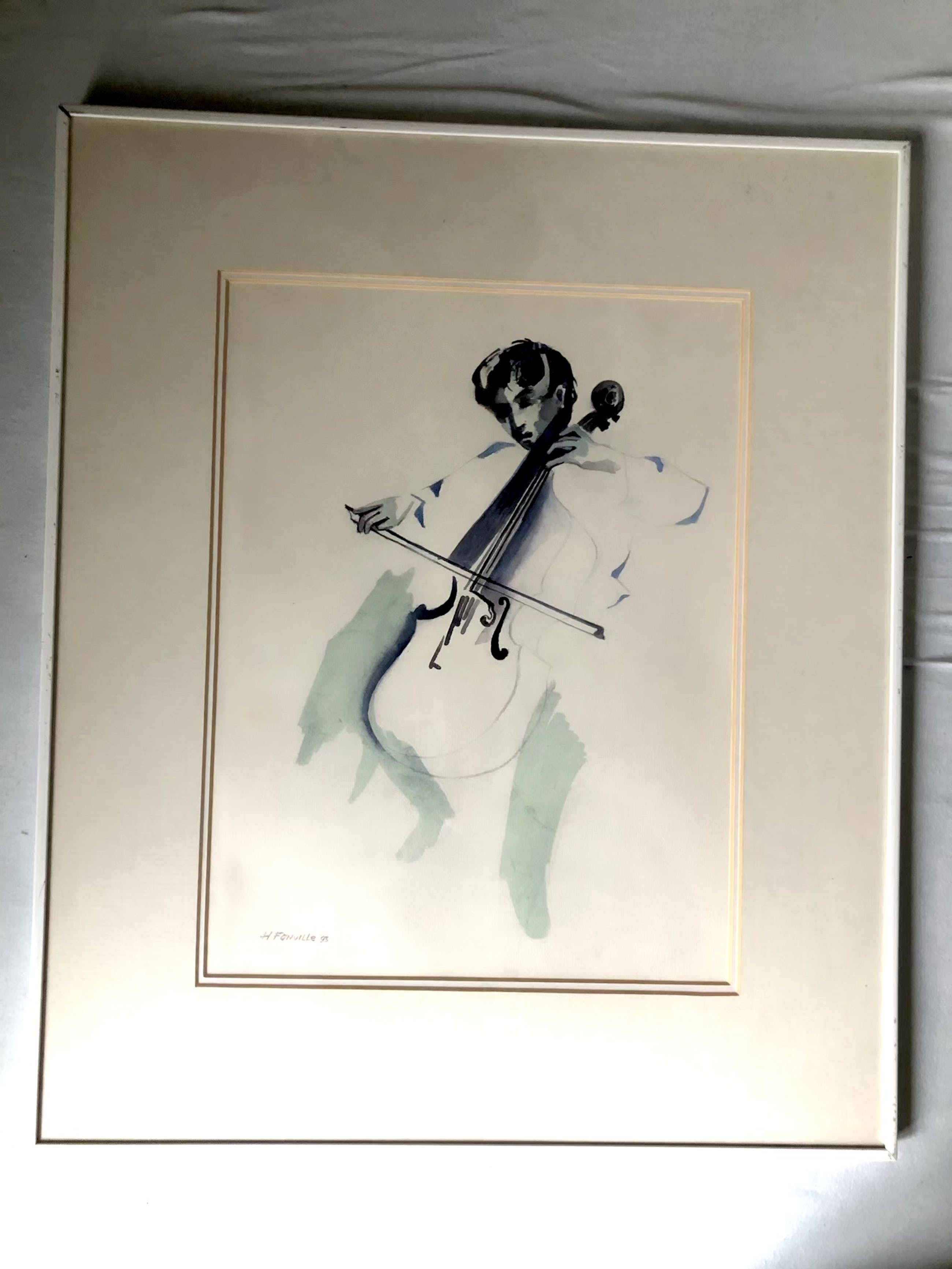 JC 619 K Henk Fonville Bassist Aquarel 1993 40 x 30 cm 60 x 50 cm Herkomst: Peter van den Braken Centrum te Sterksel
