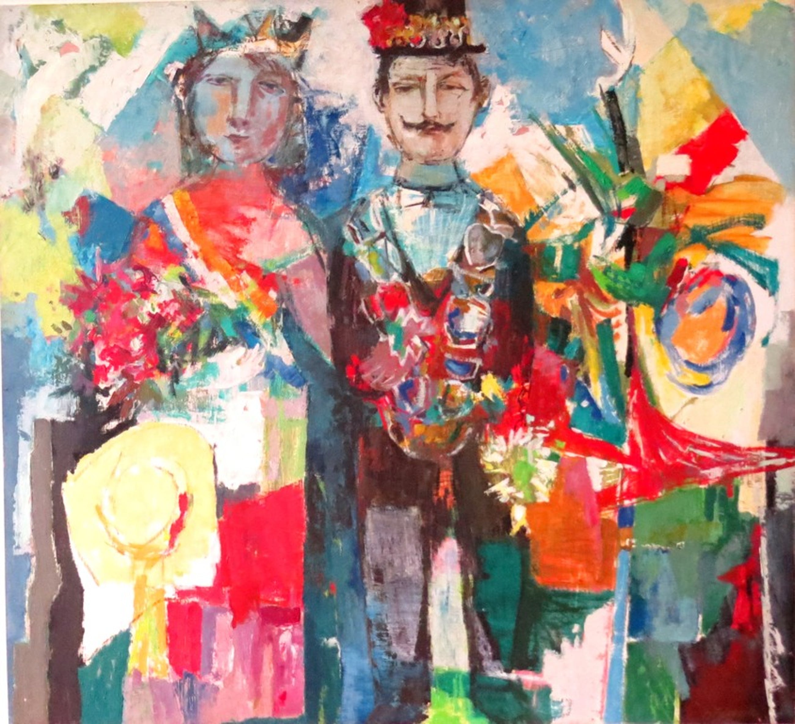 Het zijn vooral mensen met hun kleine hebbelijkheden die Fonville inspireerden.Zo ook deze verbeelding van een Limburgse traditie:de Schutterij.